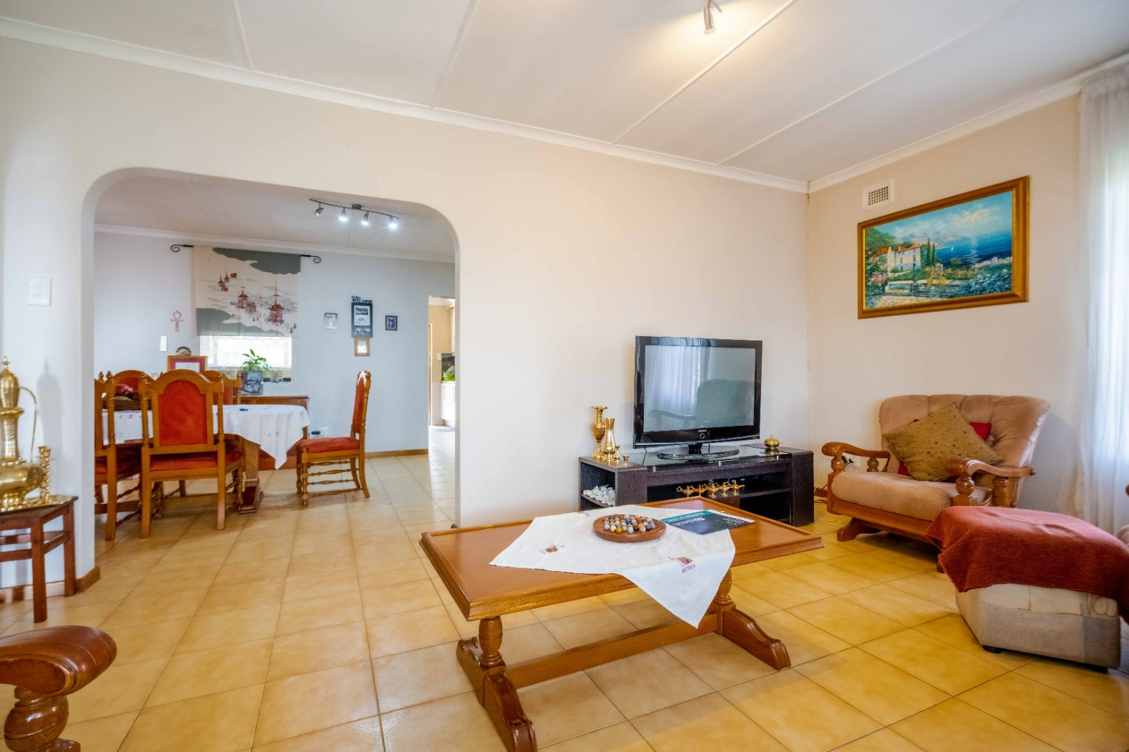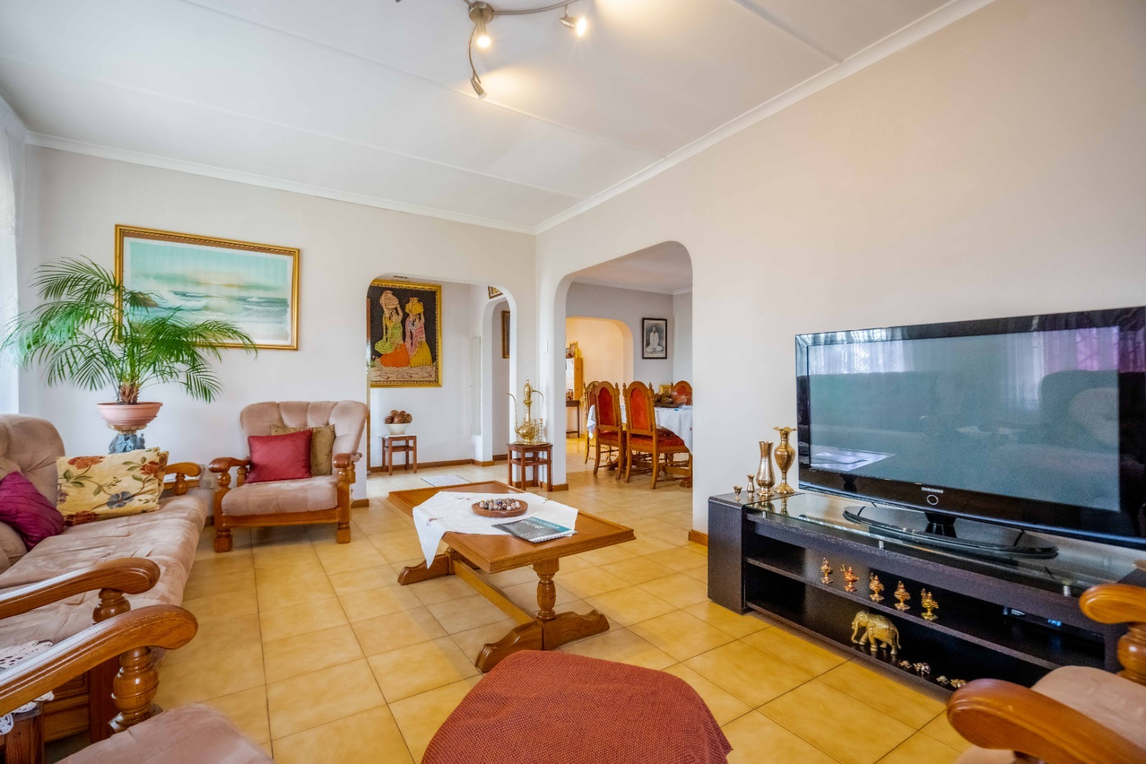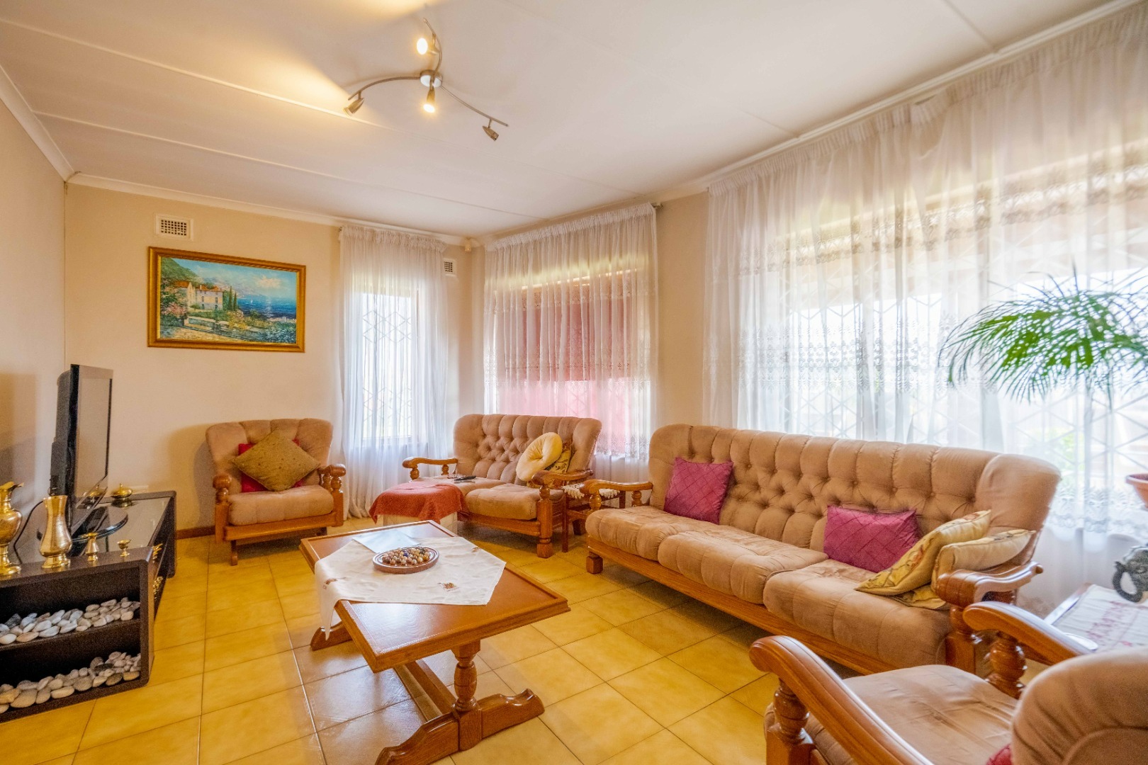 This brick finished home boasts tiled flooring throughout and is meticulously maintained. The expansive yard space is ideal for entertaining guests, and the property is secured with remote-controlled access gates. Conveniently located near all amenities in the area, this home offers a perfect blend of comfort and functionality.