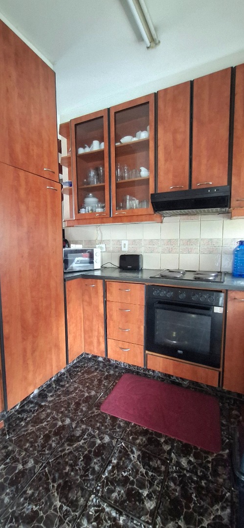 Step inside to a functional layout designed for easy living. The kitchen is ready for your culinary adventures with warm-toned wooden cabinetry, a built-in oven, hob, and extractor fan, plus a tiled backsplash. The lounge is a great space to unwind with natural light streaming in, it also offers 2 bedrooms, each with extensive built-in wardrobes and a cool staircase that leads to a loft bedroom. The bathroom is fully equipped with a bathtub, toilet, and basin, all tiled for practicality.