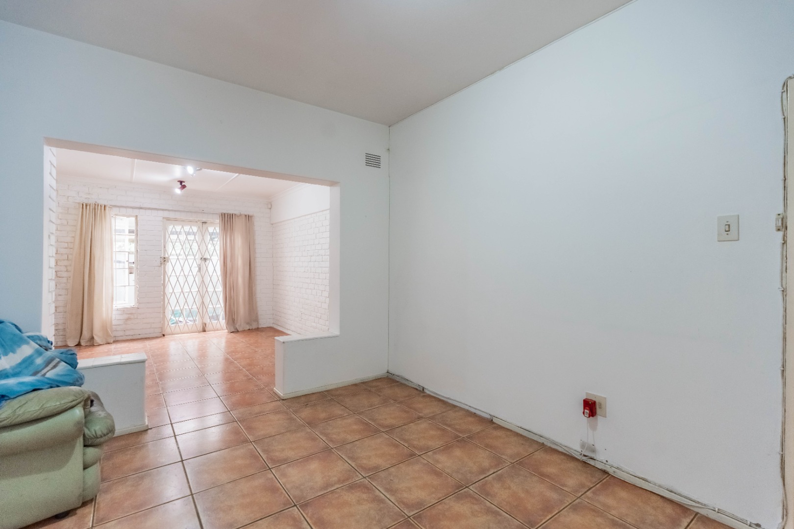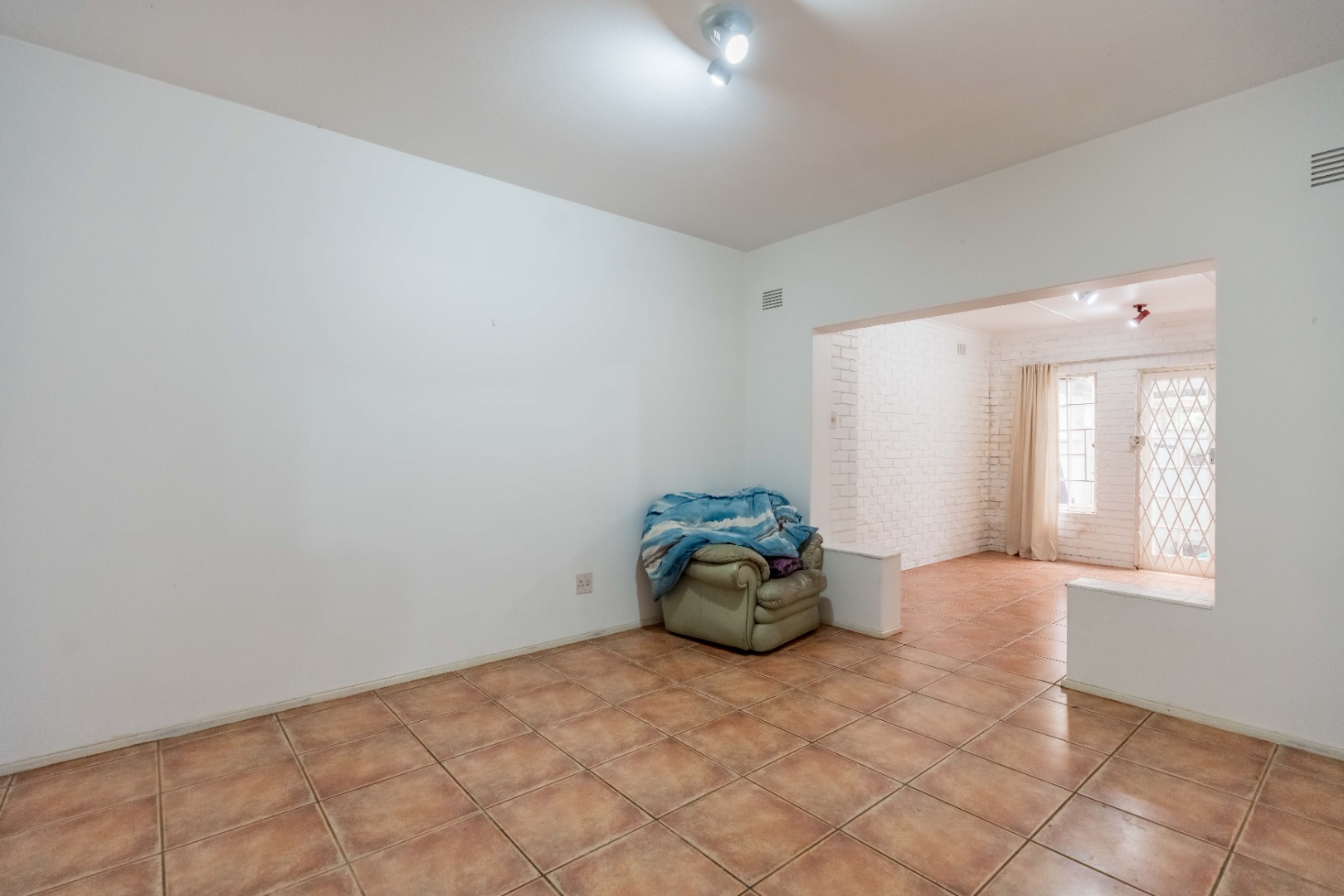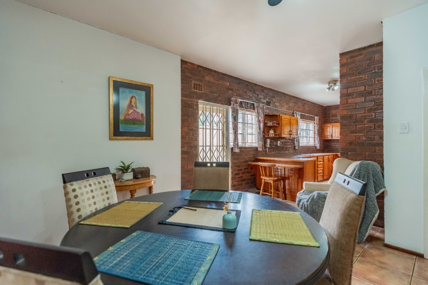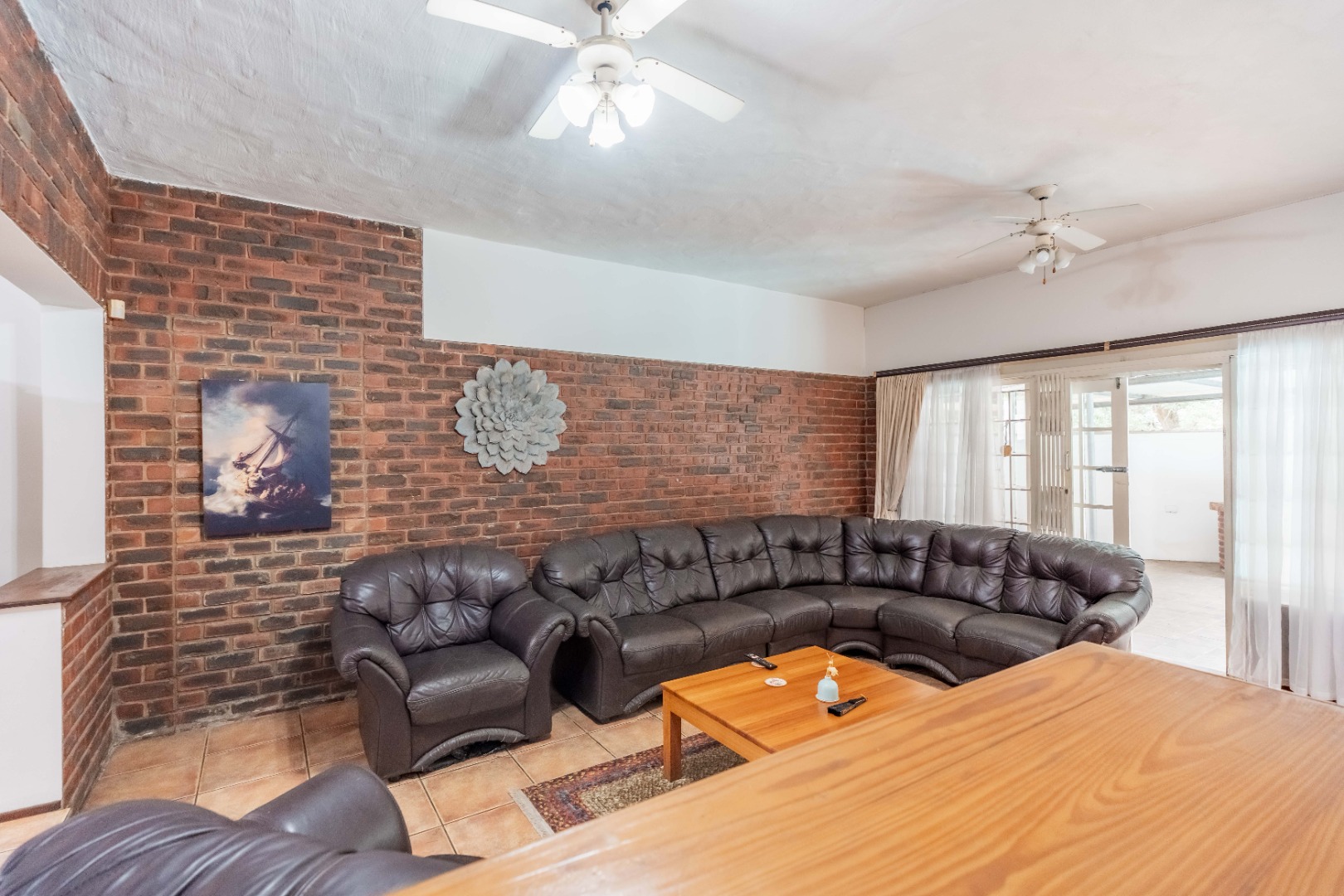 The open-plan dining room and kitchen form the heart of the home. The kitchen offers a gas hob, ample cupboard space, and a round-the-corner scullery that keeps the main kitchen neat and practical for everyday living. The main lounge, fully set up for DSTV, flows through sliding doors to the outdoor entertainment area. A spacious entertainment room or relaxed family area provides additional flexible living space for gatherings, movie nights, or a children’s retreat.