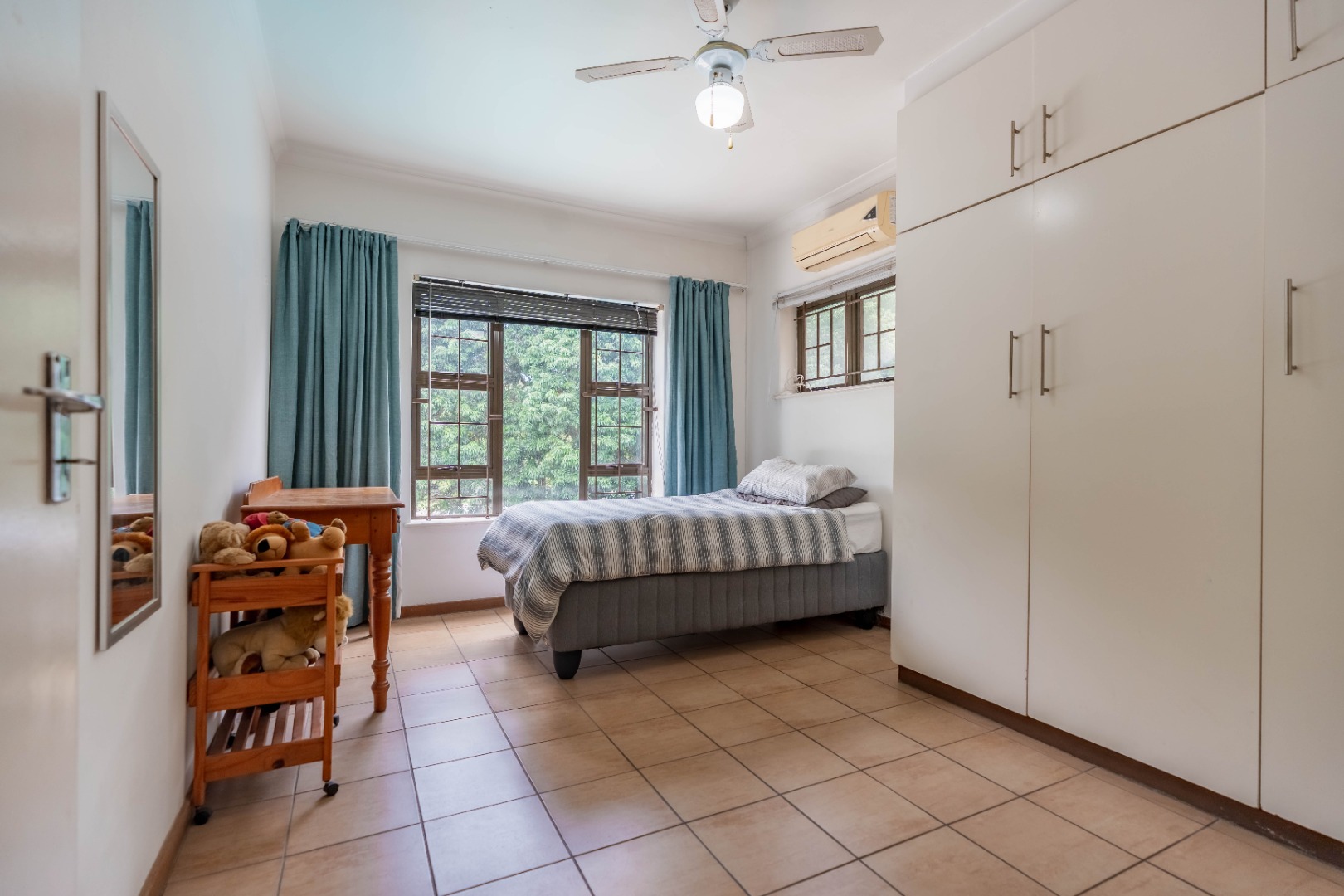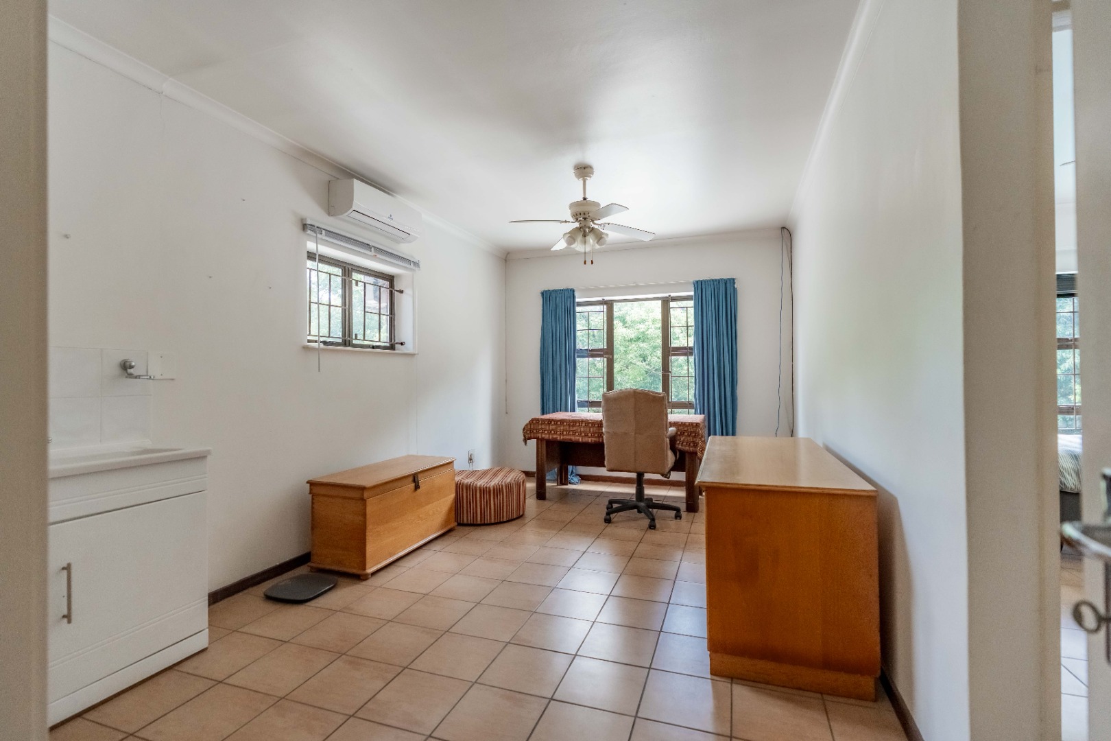 This split-level home features 5 spacious air-conditioned bedrooms and 3 bathrooms, including two en-suites, as well as a family bathroom and separate guest toilet. One of the bedrooms includes an adjoining room and private en-suite, making it perfect for guests, extended family, or even a private work-from-home setup.