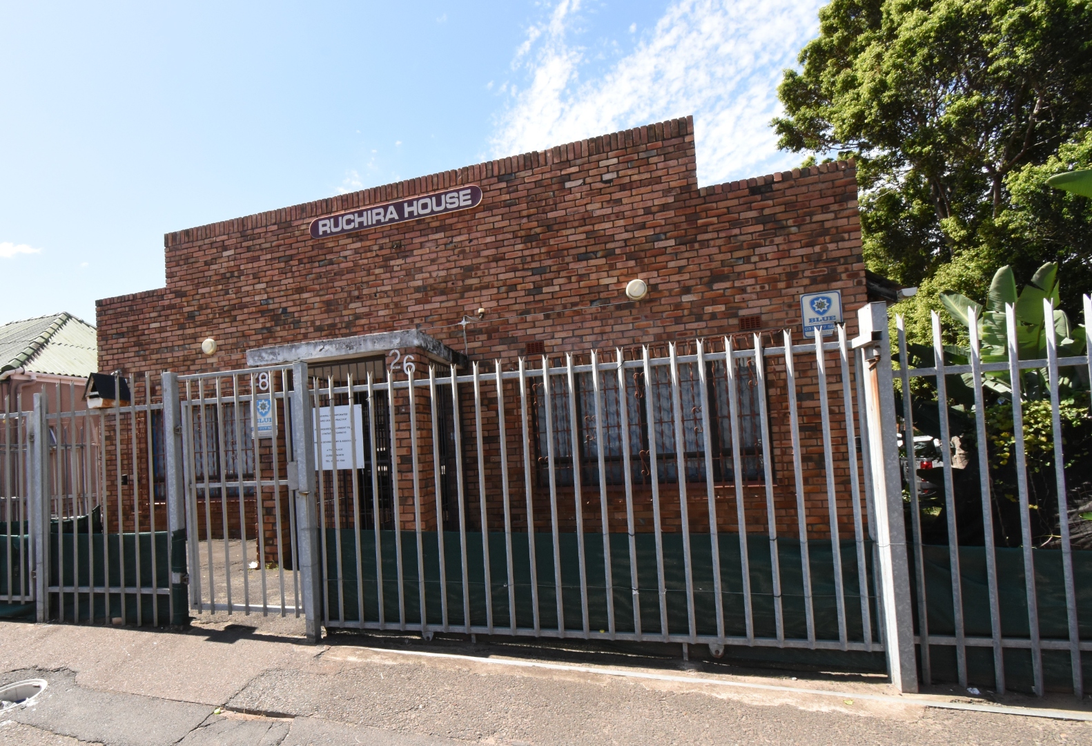 Discover a functional commercial property, known as "RUCHIRA HOUSE," ideally situated in the established Windermere area of Durban, South Africa. This single-story, brick-faced building offers a practical solution for businesses seeking a dedicated office space with essential amenities. The property features a welcoming reception area, complete with comfortable seating and a substantial desk.