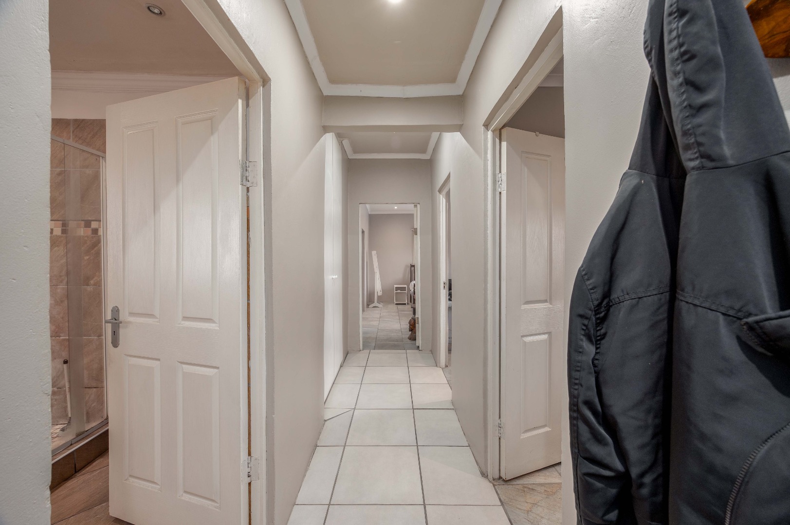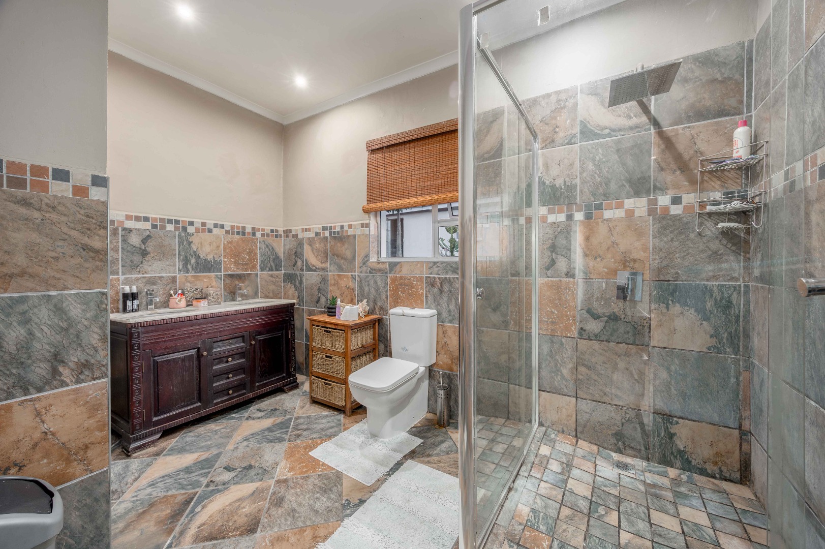 Tucked away at the end of a private panhandle, this property offers a privacy feel—secluded, peaceful, and perfectly positioned for the modern family. Whether you are looking for a multi-generational property or a smart investment, this home is a rare find in a rapidly growing area. The main 3-bedroom home is designed for effortless living. An inviting open-plan lounge and dining area flows naturally onto an expansive veranda—the perfect spot for morning coffee or sunset braais. The kitchen has functional space featuring a gas hob (essential for stress-free living), generous storage, and a separate scullery to keep the chores out of sight. The Master bedroom has a walk-in closet, a "his-and-hers" ensuite, and sliding doors that open up to the sparkling pool. Two additional bedrooms share a charming bathroom featuring a classic high back soaker bath tub and a separate shower.