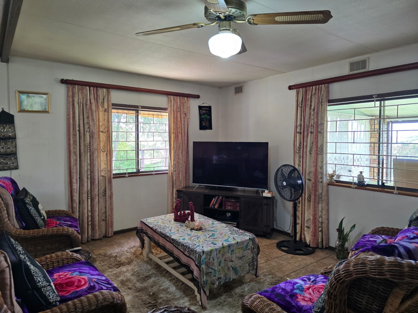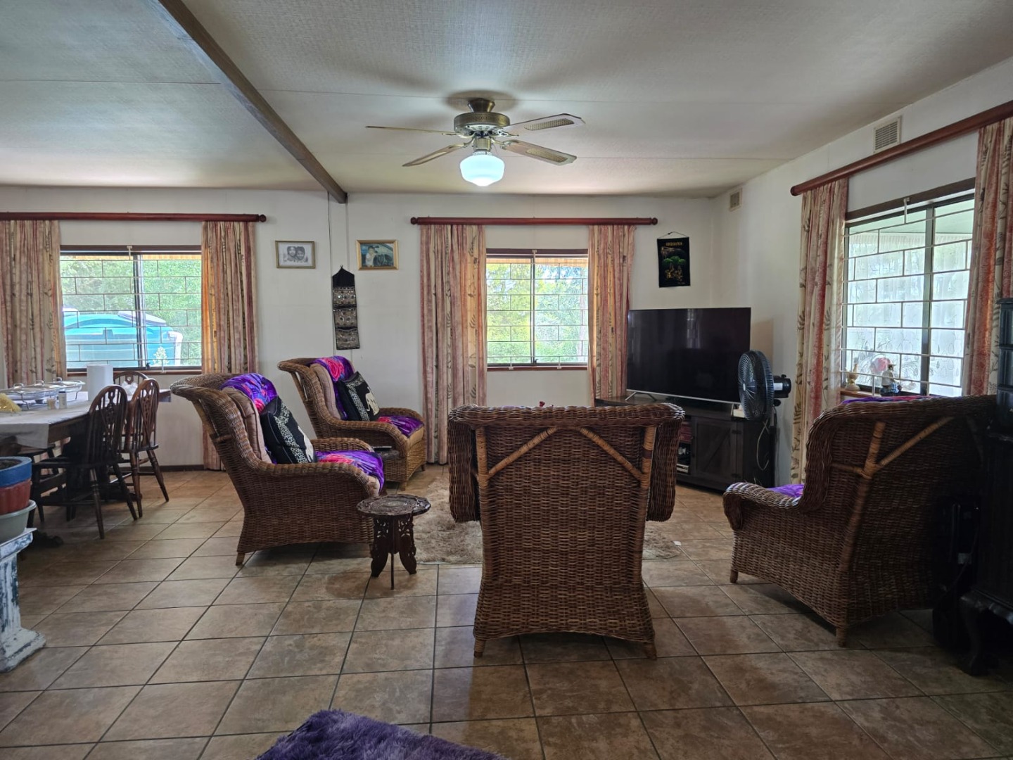 The home features two lounges, a dining room, and a kitchen, providing ample space. The one lounge overlooks the country garden with peaceful country views.
