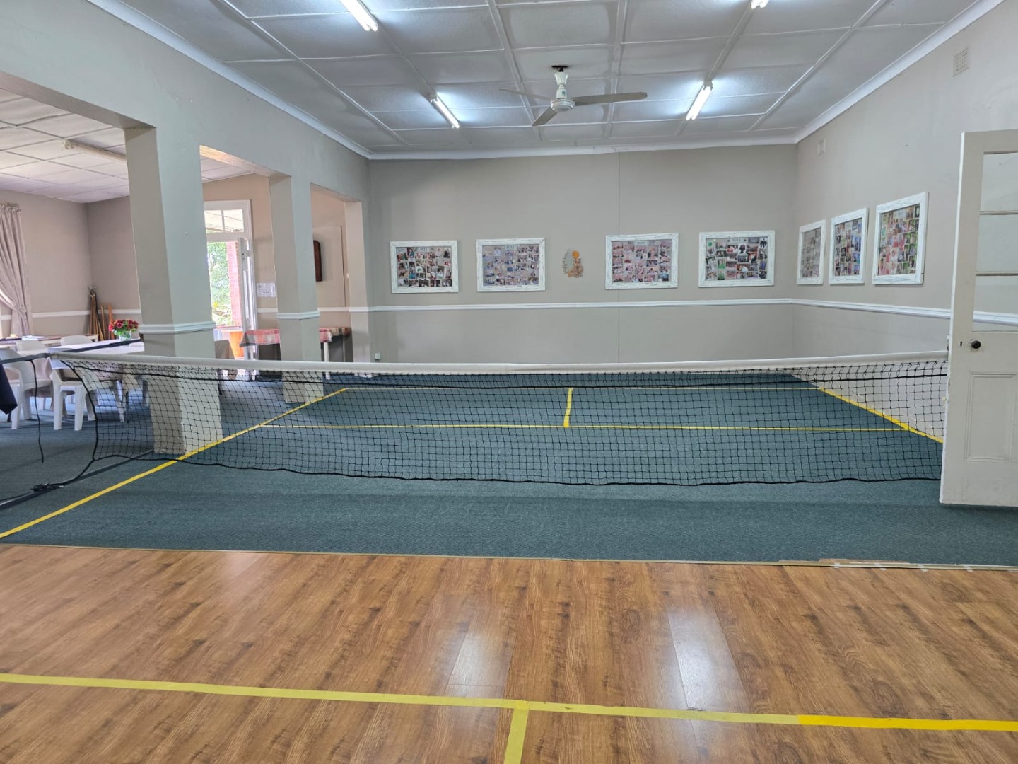 Residents benefit from access to a club house, a tennis court, and a communal braai area, bowling green, as well as an expansive multi-purpose room for recreation, currently set up for indoor sports like paddle ball, a pool table and piano.