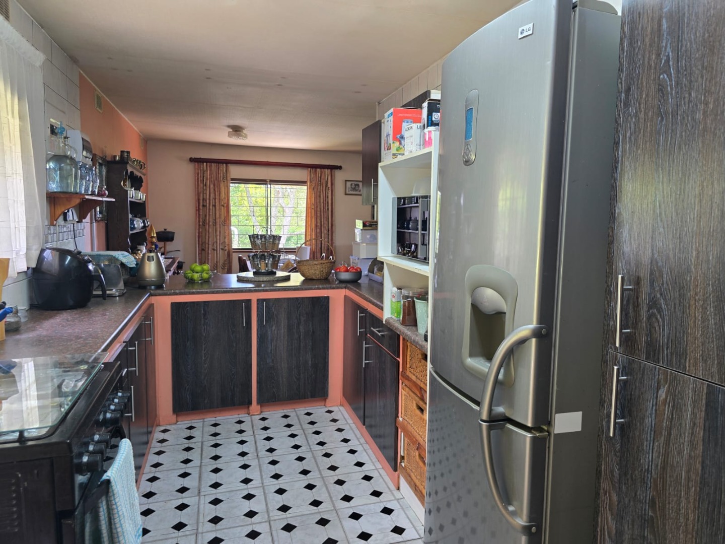The home features two lounges, a dining room, and a kitchen, providing ample space. The one lounge overlooks the country garden with peaceful country views.