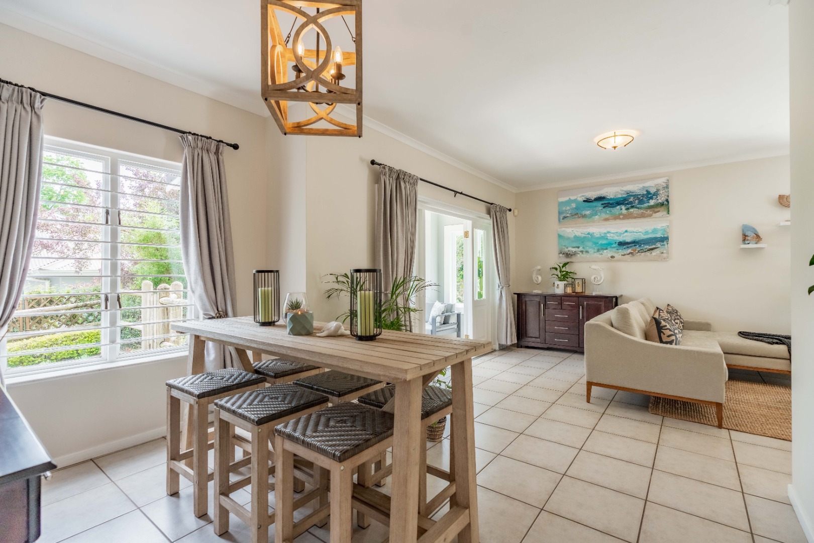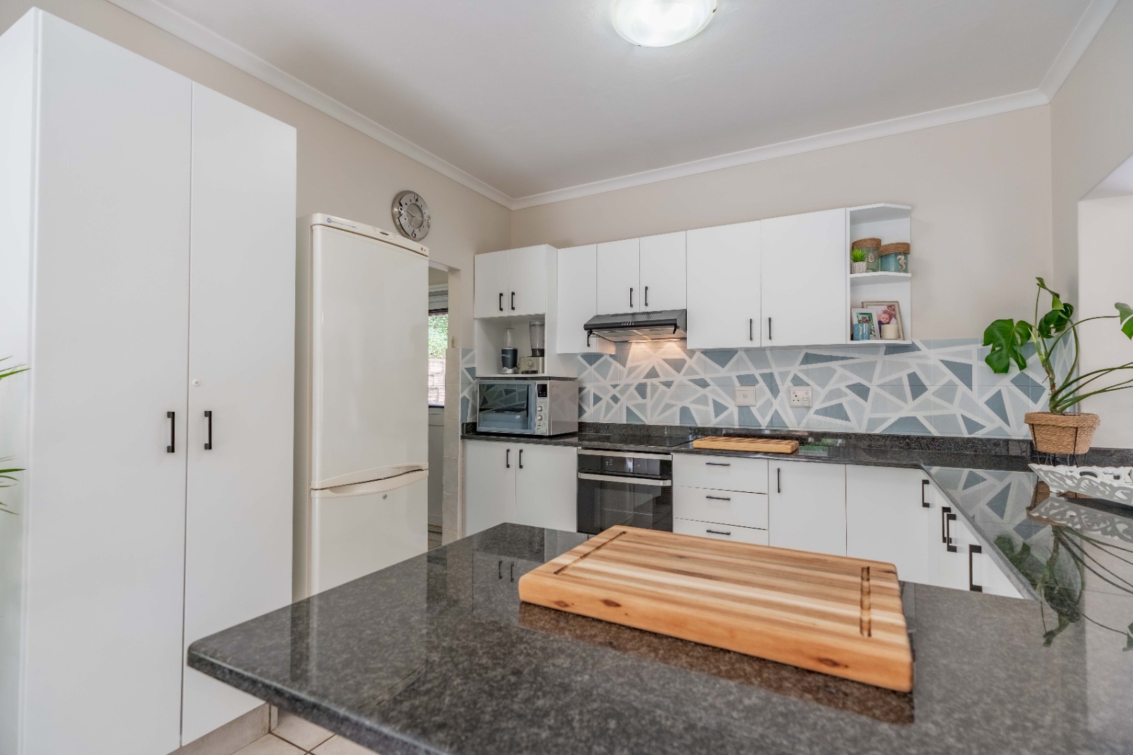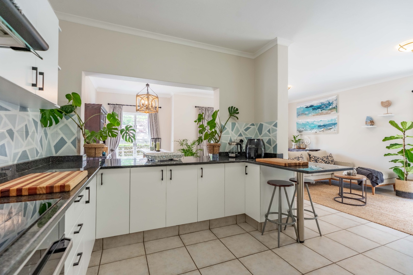 This unit offers seamless open-plan living and entertaining. The lower level features a generous living space that flows beautifully to your private, established garden and splash pool. The sleek, contemporary kitchen includes a separate scullery, keeping your main area tidy and ready for guests. A very convenient guest loo under the stairs completes the downstairs amenities.