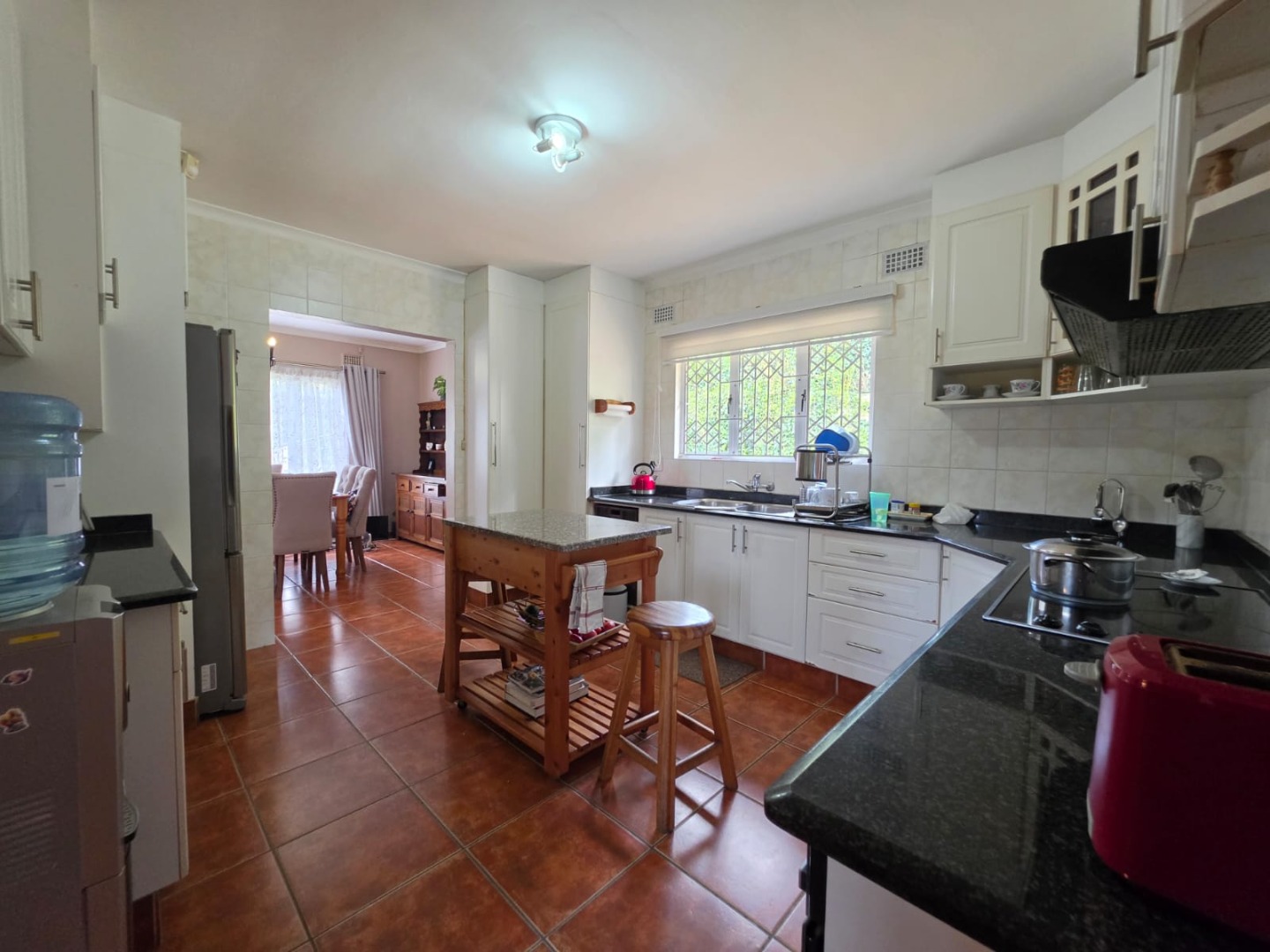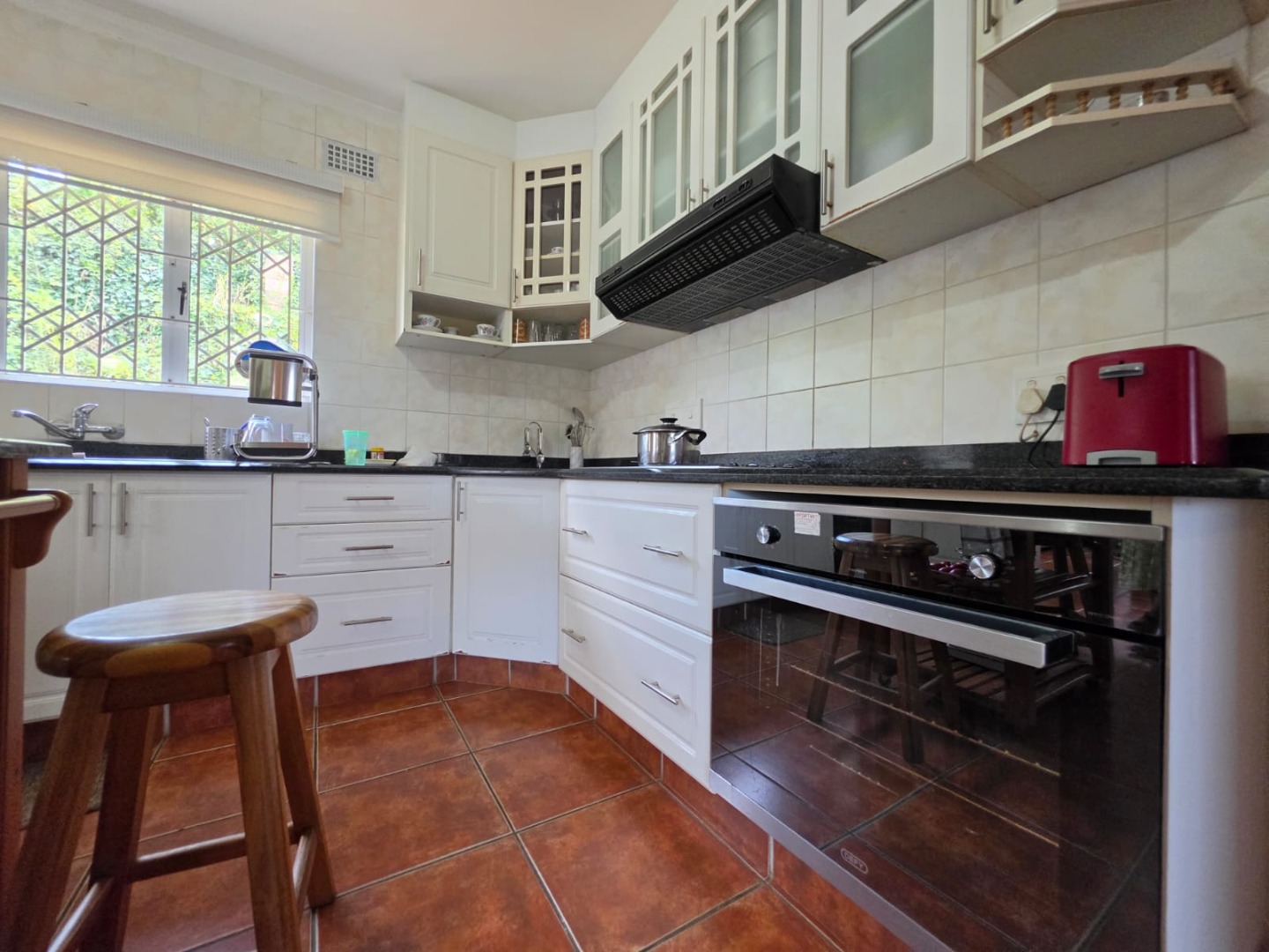 The spacious kitchen is fitted with granite countertops, an undercounter oven, and a sleek glass-top stove—perfect for everyday cooking and entertaining. Flowing seamlessly from the kitchen, you’ll find a welcoming dining room and a cozy lounge area ideal for family time.