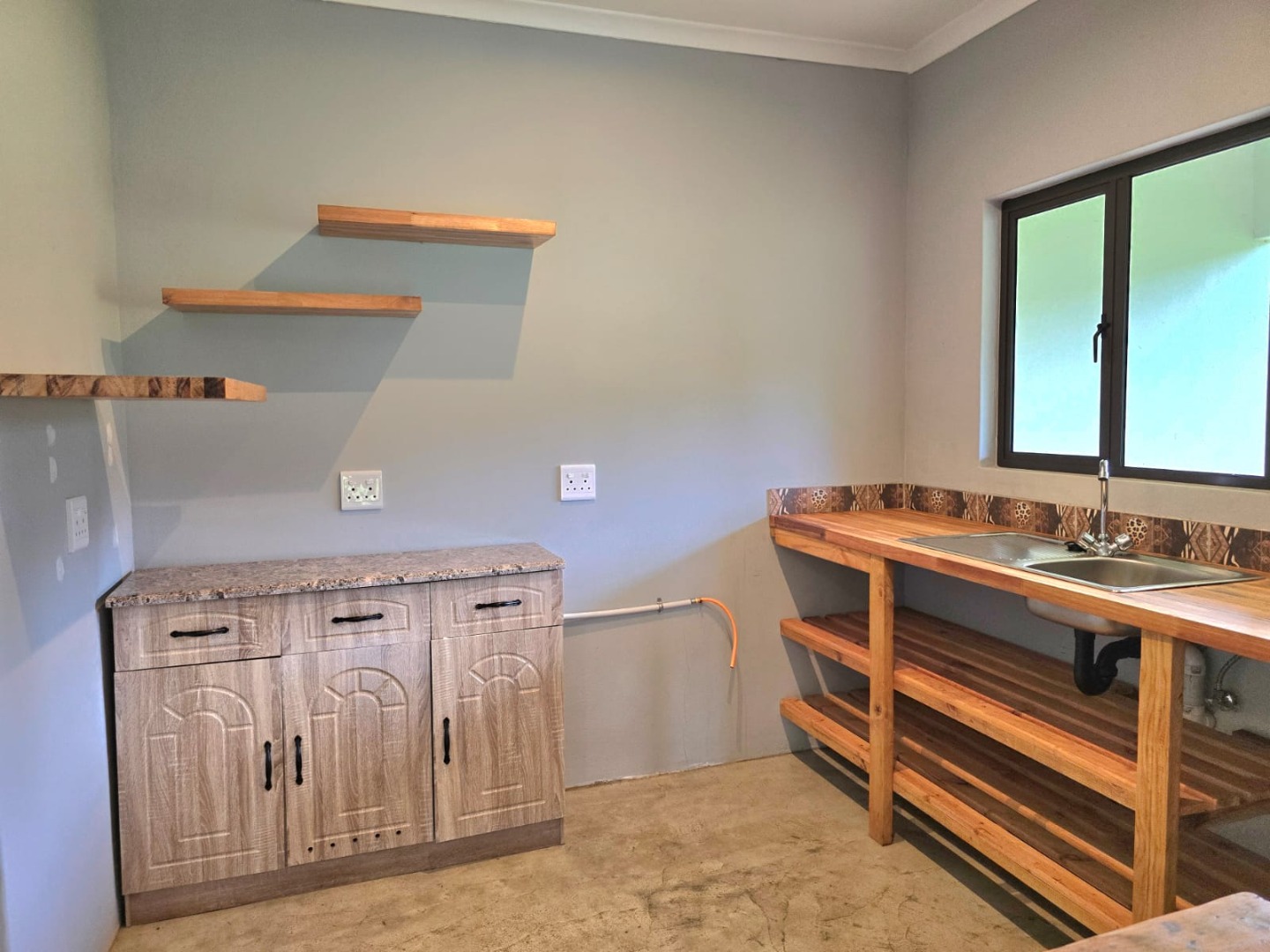 Step inside to a light and bright open-plan layout, with screeded flooring throughout and light streaming through large windows and glass doors. Enjoy the comfort of the open plan lounge with access to the decked area. The kitchen, while presenting a rustic look, provides a functional space with ample natural light and a gas connection, ready for your personal touch.