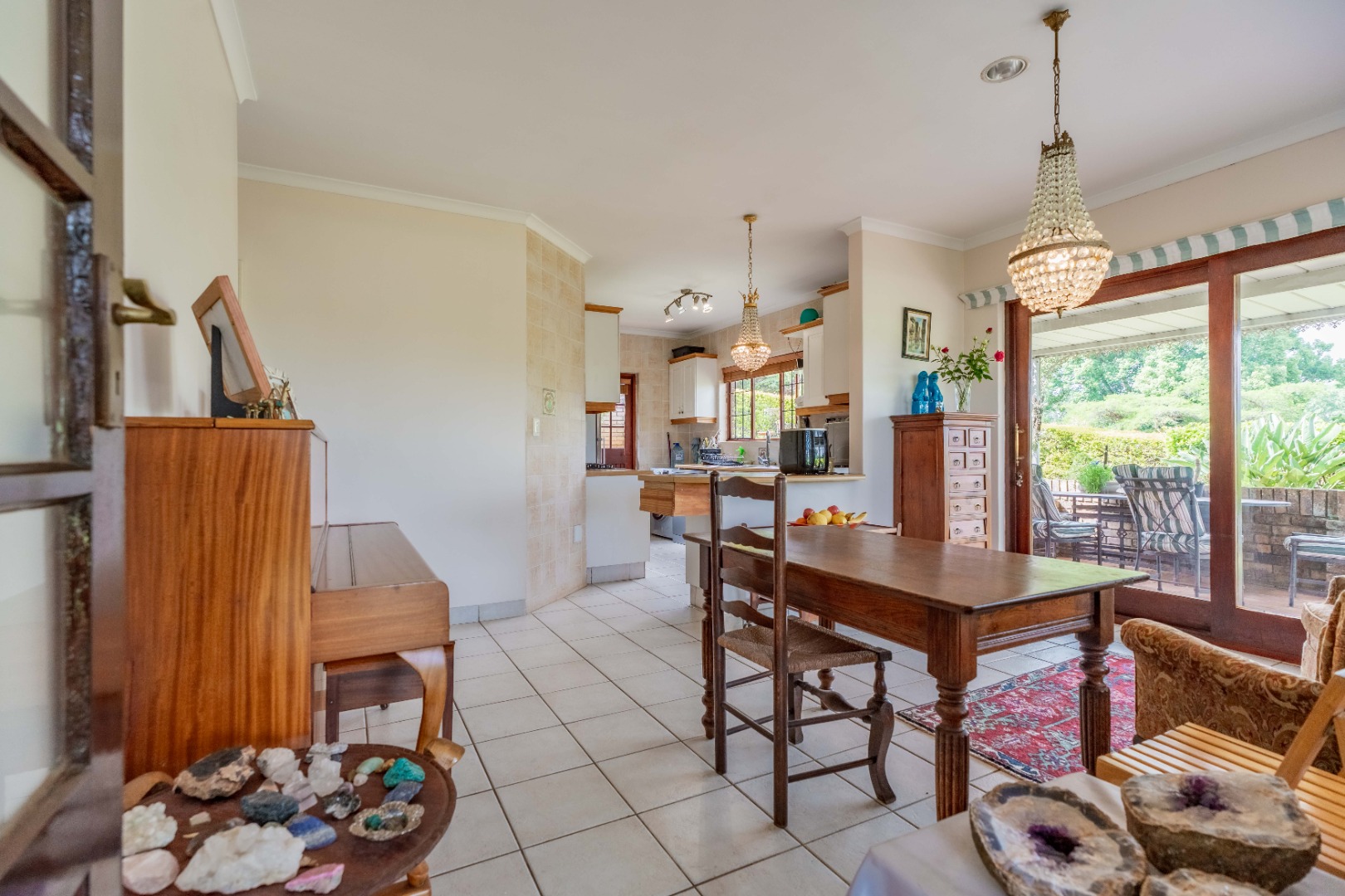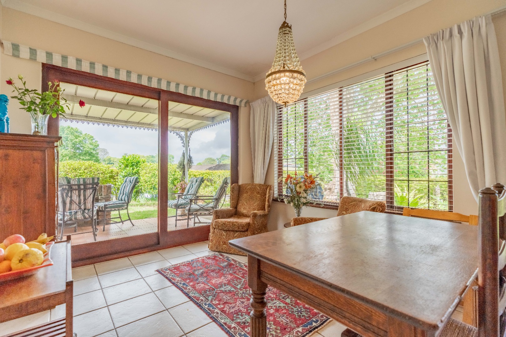 The home features 3 generously sized bedrooms and 2 well-appointed bathrooms. The lounge is bright and inviting, flowing seamlessly into a private garden, while the fully fitted kitchen connects to a spacious dining room that opens onto an undercover patio – ideal for entertaining. A private courtyard adds extra space and the property includes a double garage along with ample secure visitors' parking.