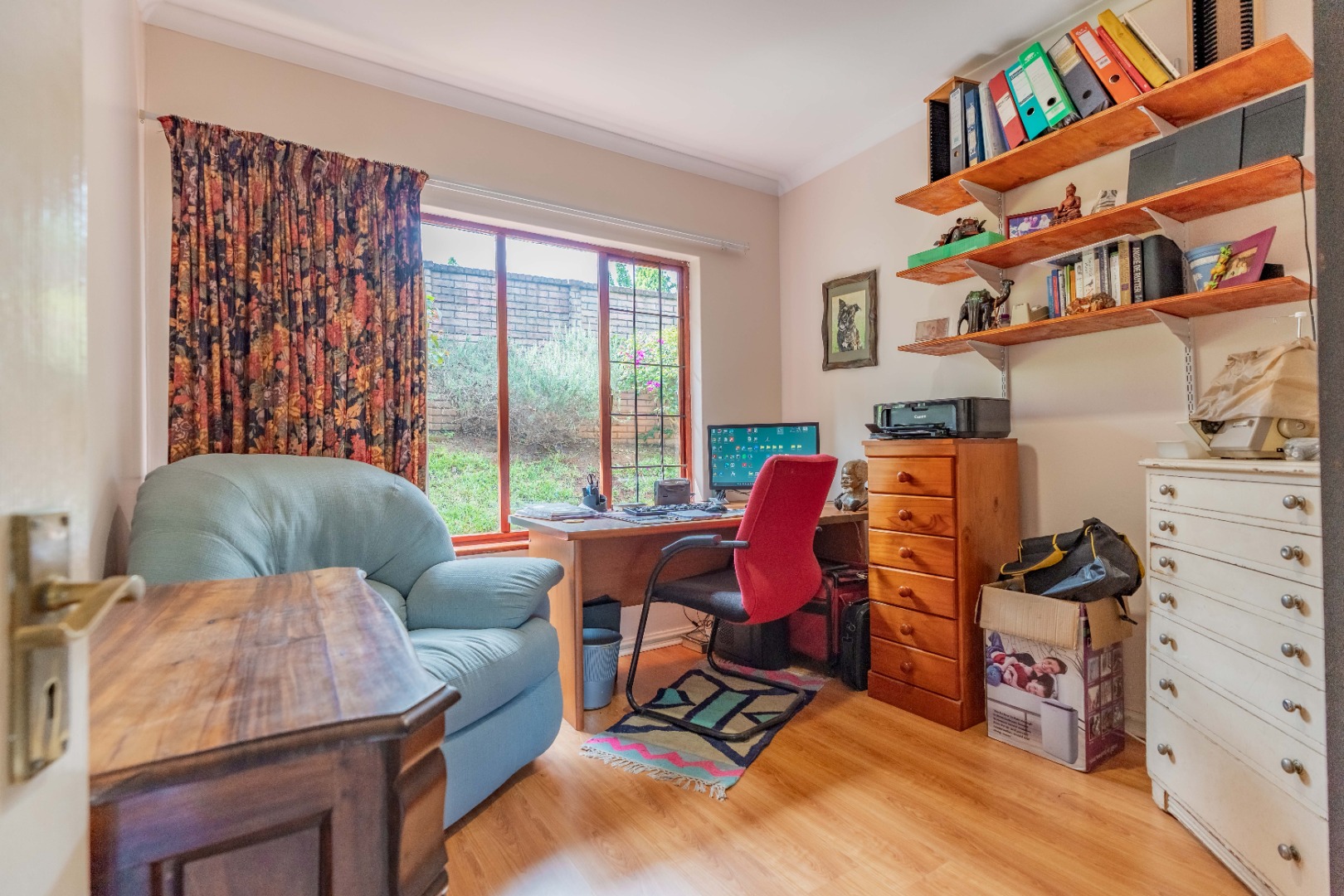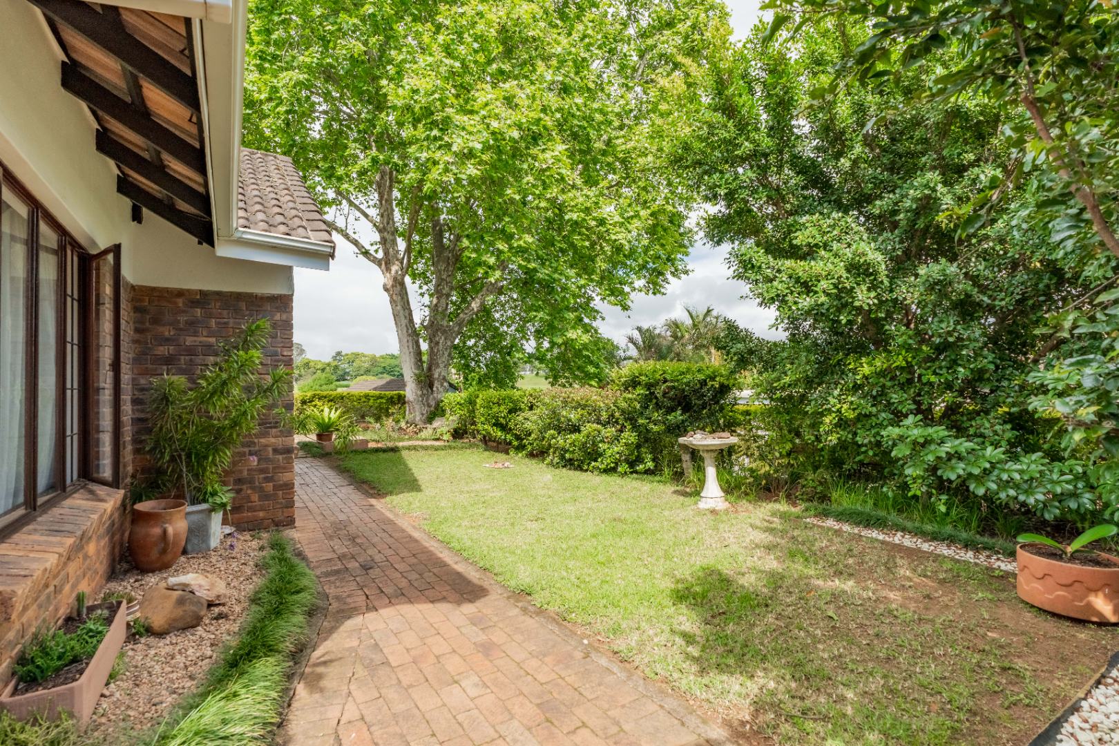 Pet lovers will appreciate that two dogs are allowed. The estate itself is beautifully maintained, featuring lush communal gardens and a tranquil pond that attracts an array of birdlife – a true nature lover’s paradise. Residents also enjoy access to a communal braai area with stunning views overlooking a pristine golf course.