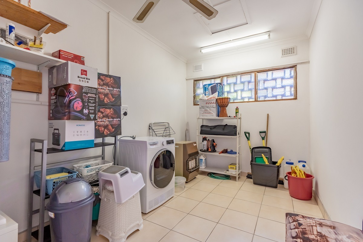 Modern Conveniences include tiled floors throughout apart from the main bedroom which is carpeted, blinds on every window, Trellidoor insect-proof safety doors, and insect/monkey screens in every room providing peace of mind and constant airflow. An inverter powers the lights, Wi-Fi, and two TVs during outages, while a dining room skylight offers natural light all day. A full alarm system and beams are installed for peace of mind. For your peace of mind, the roof underlay was entirely replace 3 years ago.