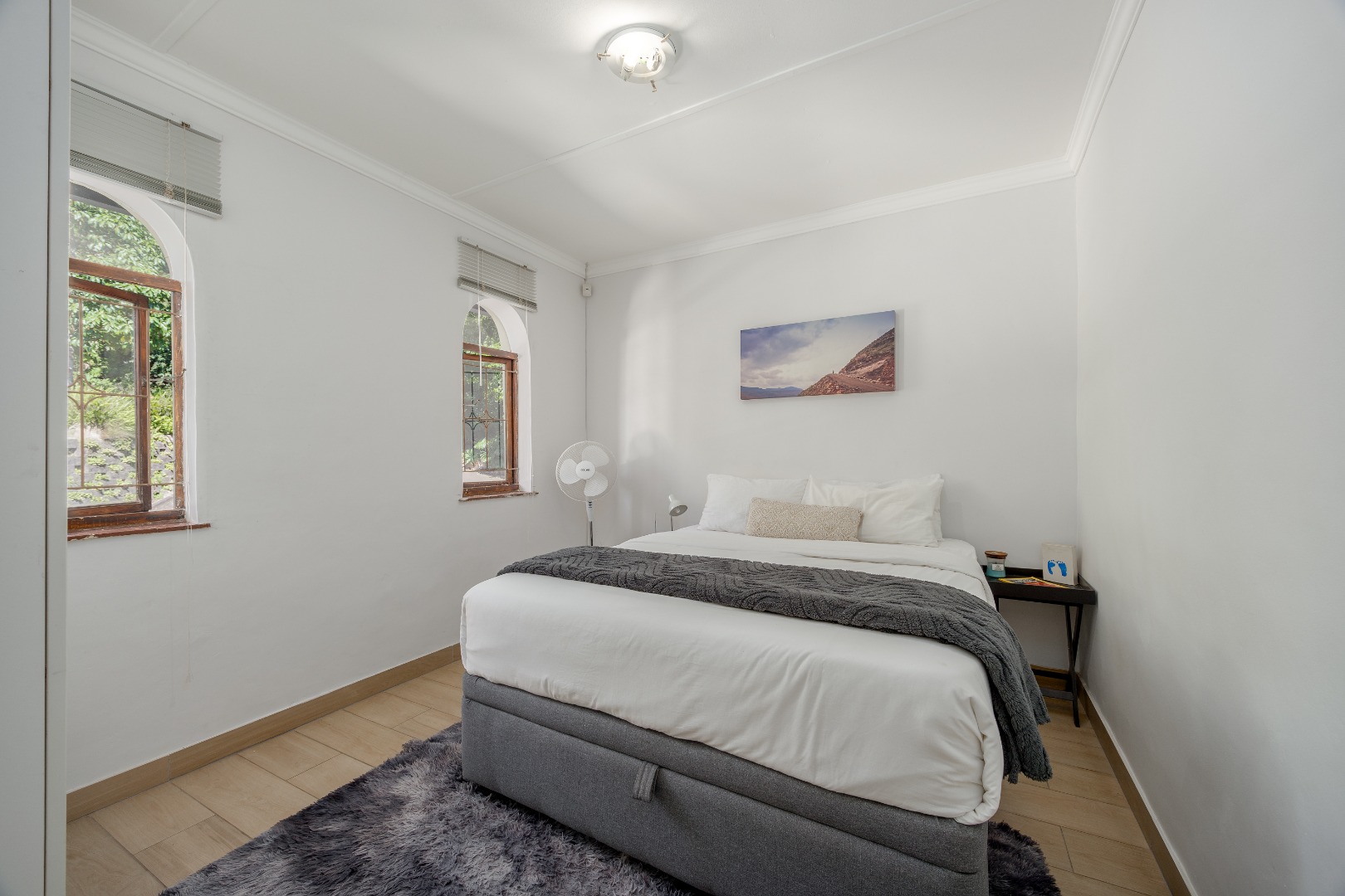 Upstairs, the home transitions into a peaceful retreat. The master suite is a true sanctuary, featuring integrated acoustic sound-blocking insulation for total tranquility. Wake up to elevated views of lush Hillcrest through elegant arched windows that lend a sophisticated Mediterranean feel to the space. The additional two bedrooms are bright and airy, ideal for a growing family or a quiet home office perfectly separated from the downstairs living areas.