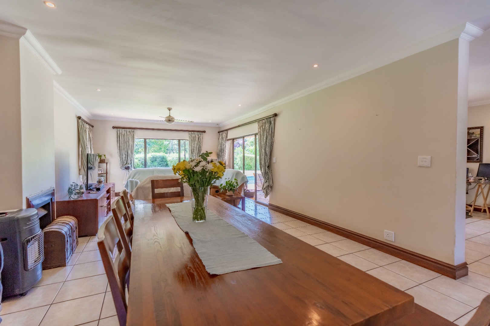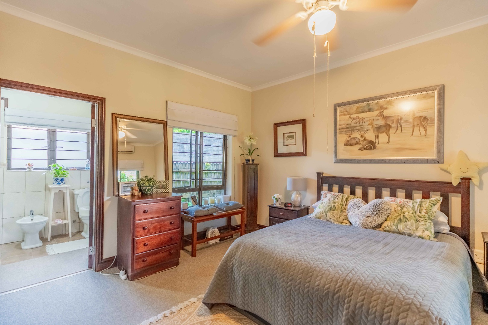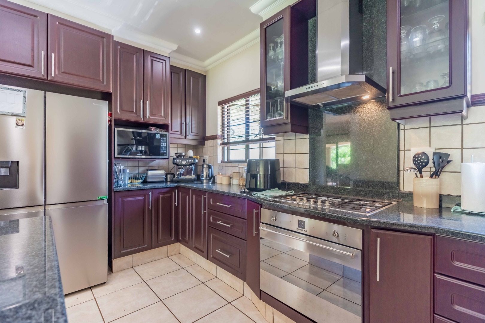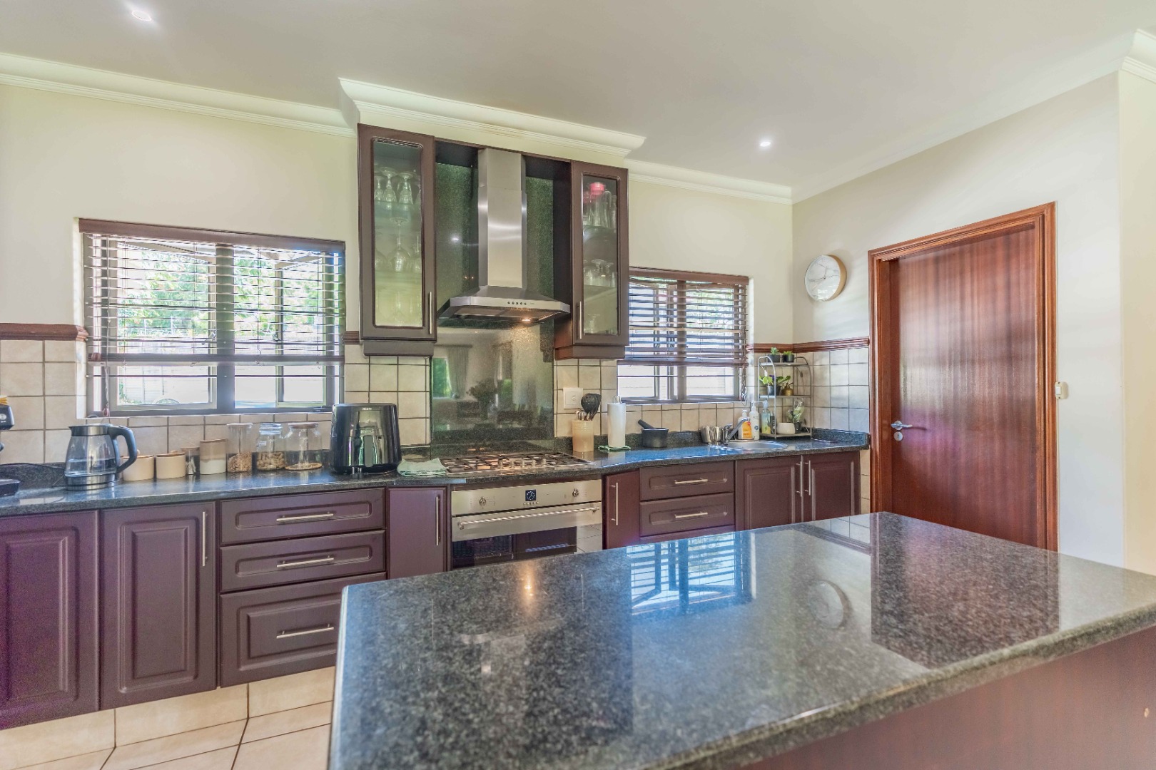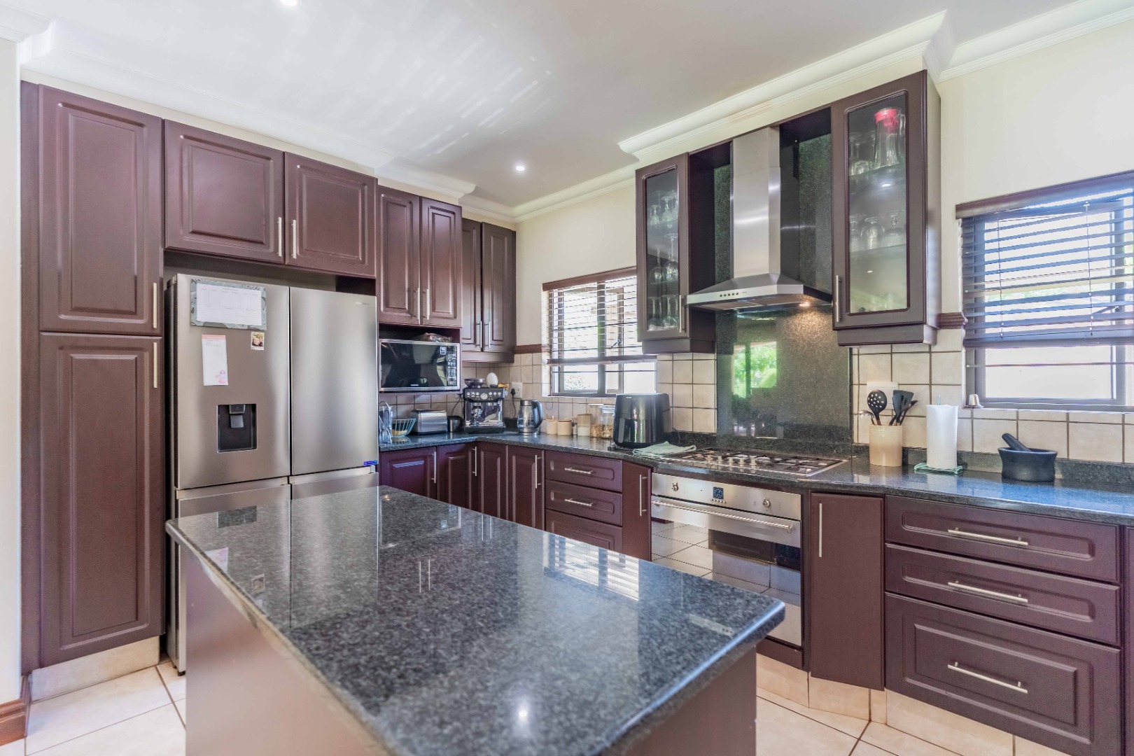 The heart of the home is the well-appointed kitchen, complete with some floor-to-ceiling cupboards, granite countertops, and a centre island that serves as both a practical workspace and welcoming gathering point. A gas hob and undercover oven make cooking a pleasure and space for a double-door fridge. Leading off the kitchen is a separate scullery with a double sink, fully plumbed for all appliances, keeping the main kitchen area neat and uncluttered.