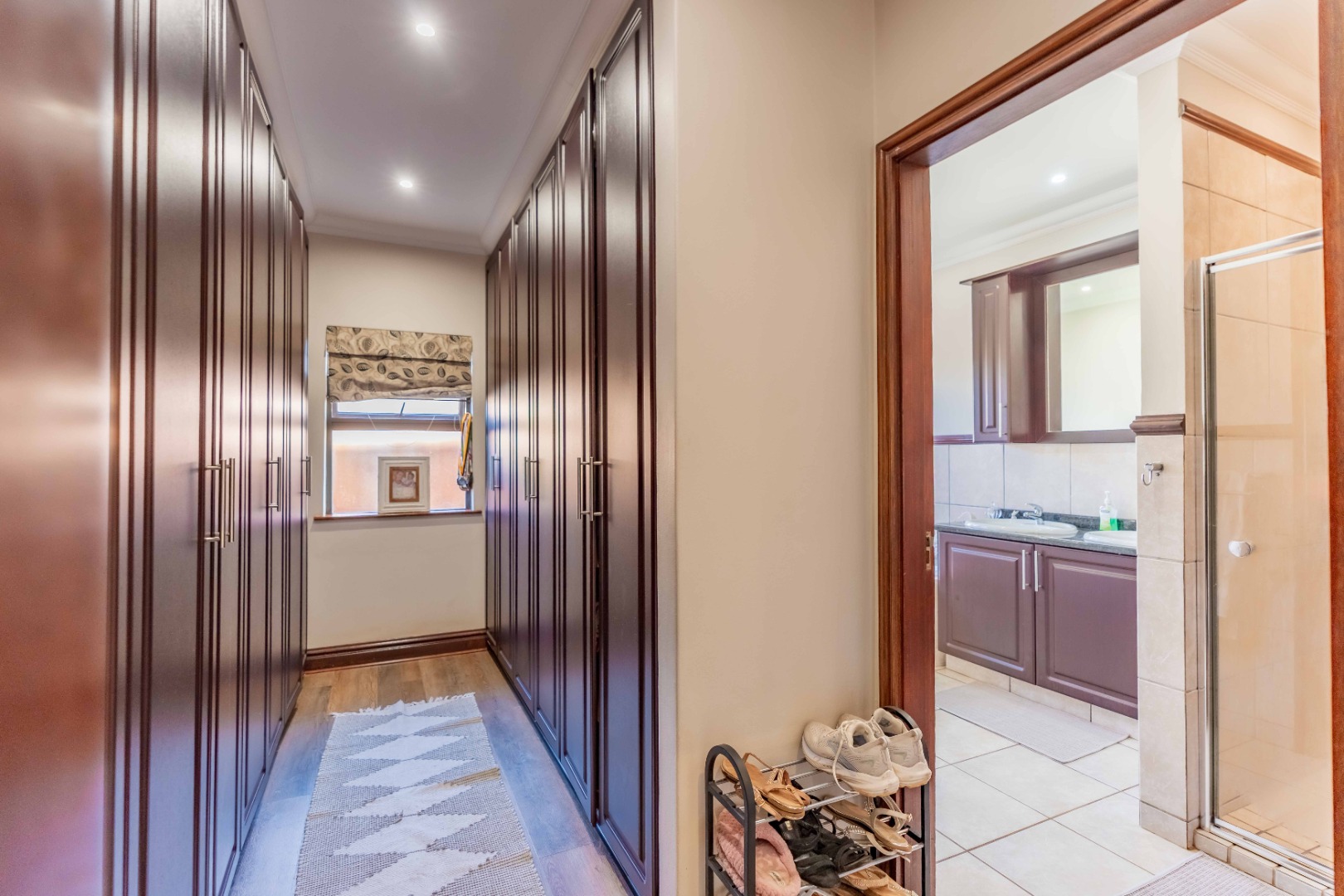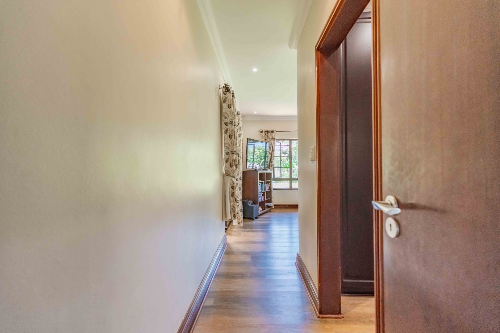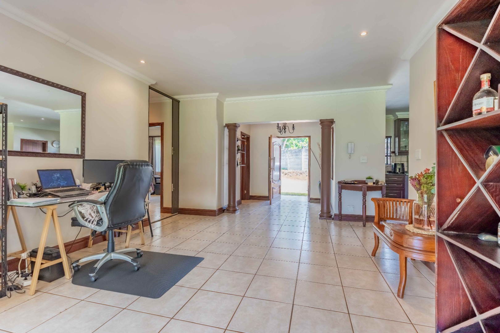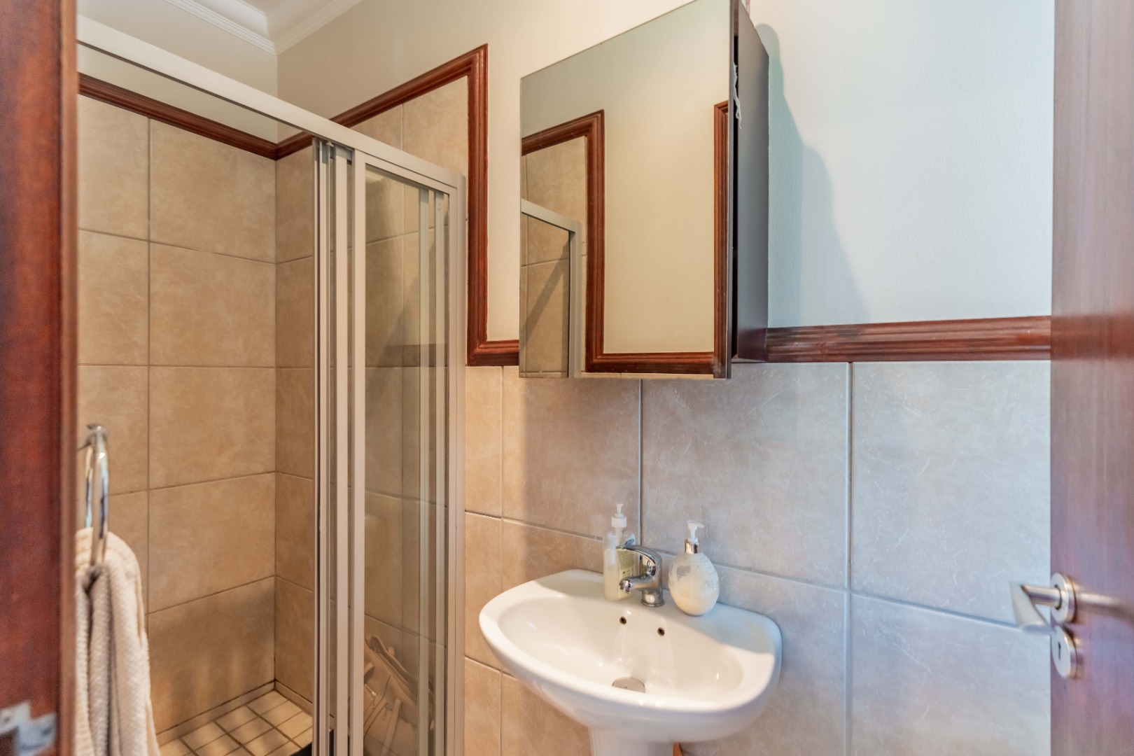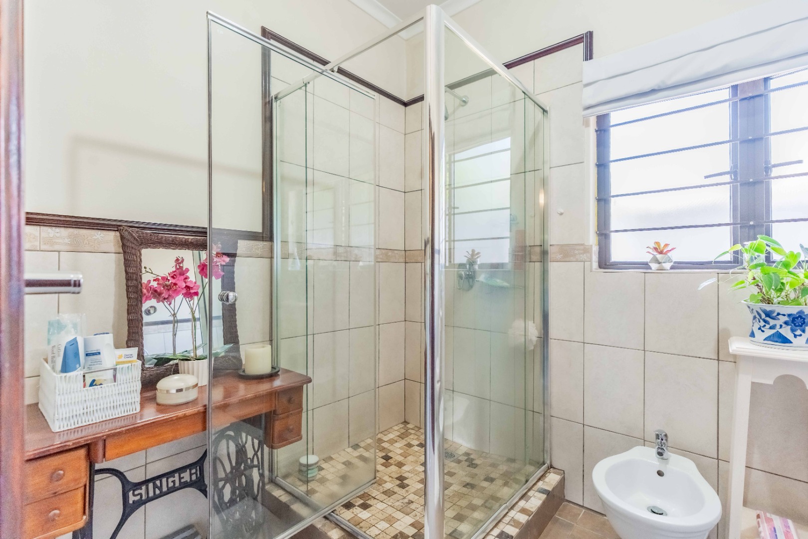 The heart of the home is the well-appointed kitchen, complete with some floor-to-ceiling cupboards, granite countertops, and a centre island that serves as both a practical workspace and welcoming gathering point. A gas hob and undercover oven make cooking a pleasure and space for a double-door fridge. Leading off the kitchen is a separate scullery with a double sink, fully plumbed for all appliances, keeping the main kitchen area neat and uncluttered.