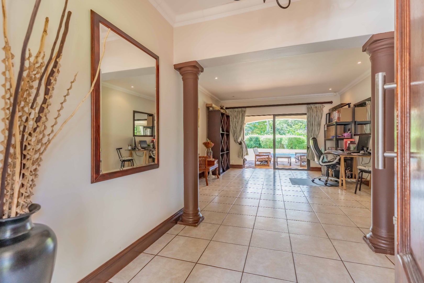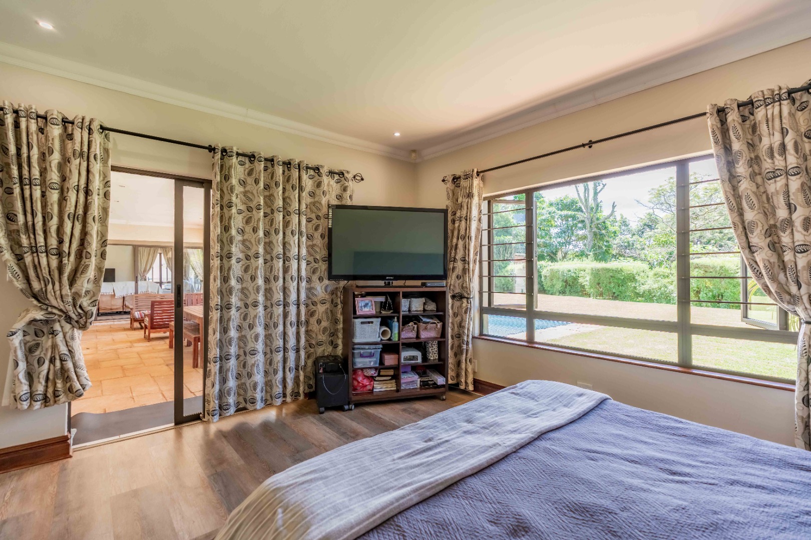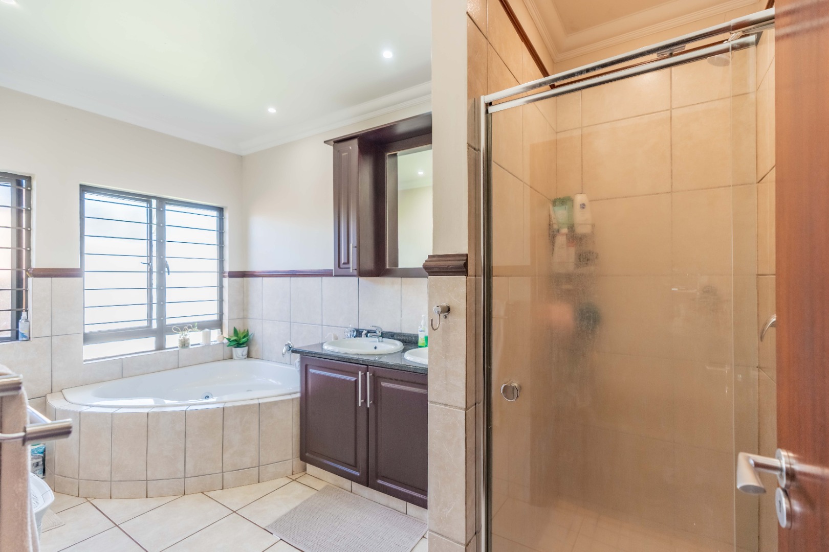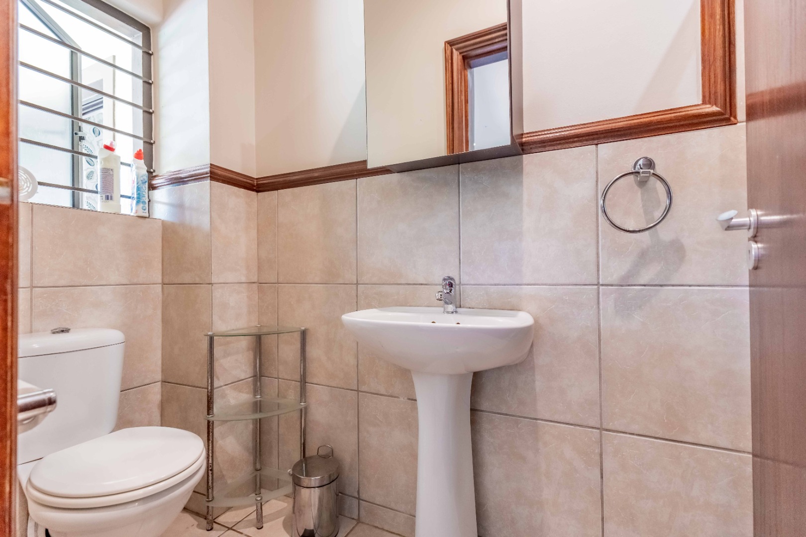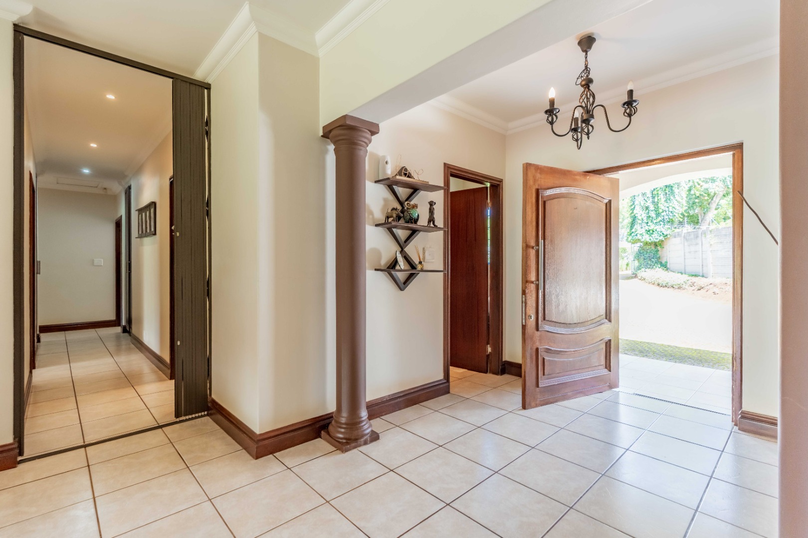 The heart of the home is the well-appointed kitchen, complete with some floor-to-ceiling cupboards, granite countertops, and a centre island that serves as both a practical workspace and welcoming gathering point. A gas hob and undercover oven make cooking a pleasure and space for a double-door fridge. Leading off the kitchen is a separate scullery with a double sink, fully plumbed for all appliances, keeping the main kitchen area neat and uncluttered.