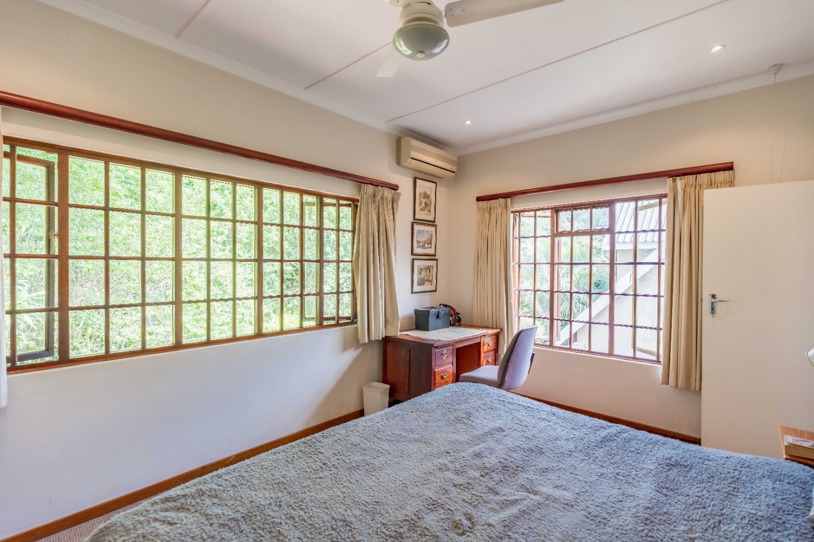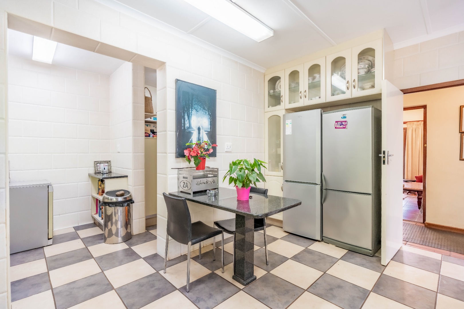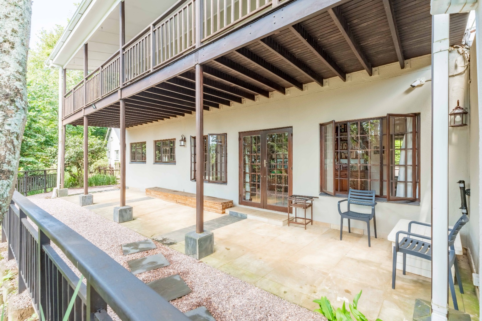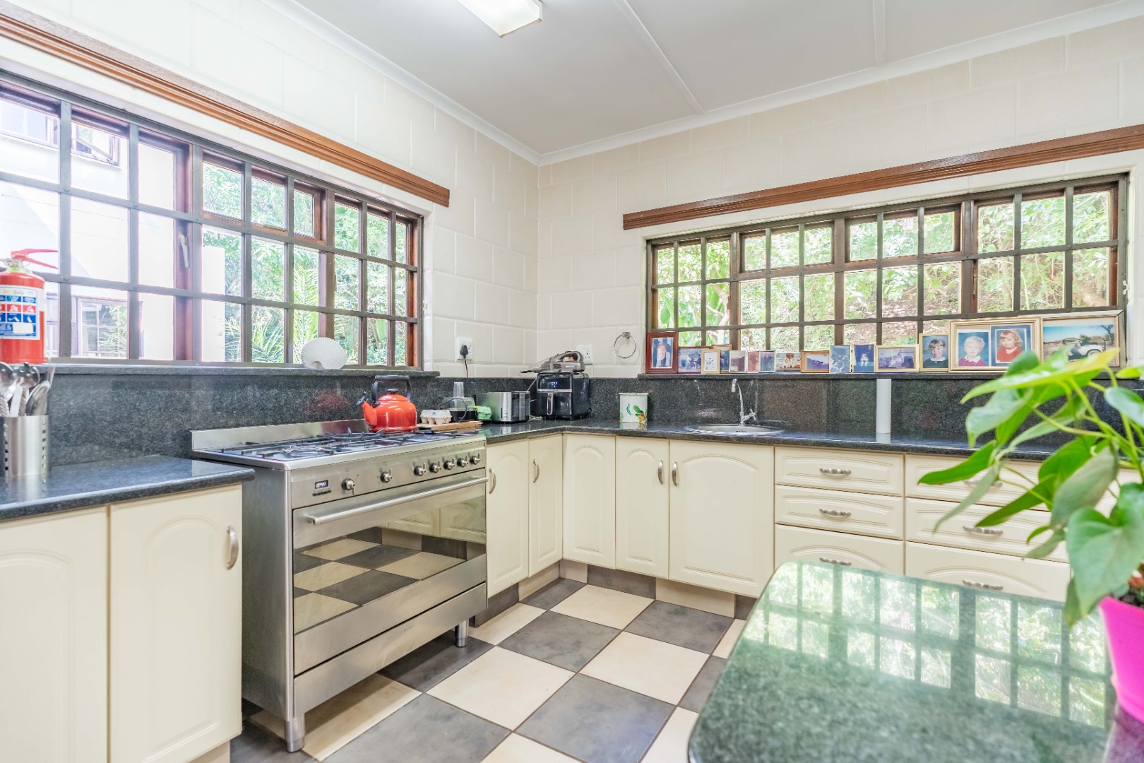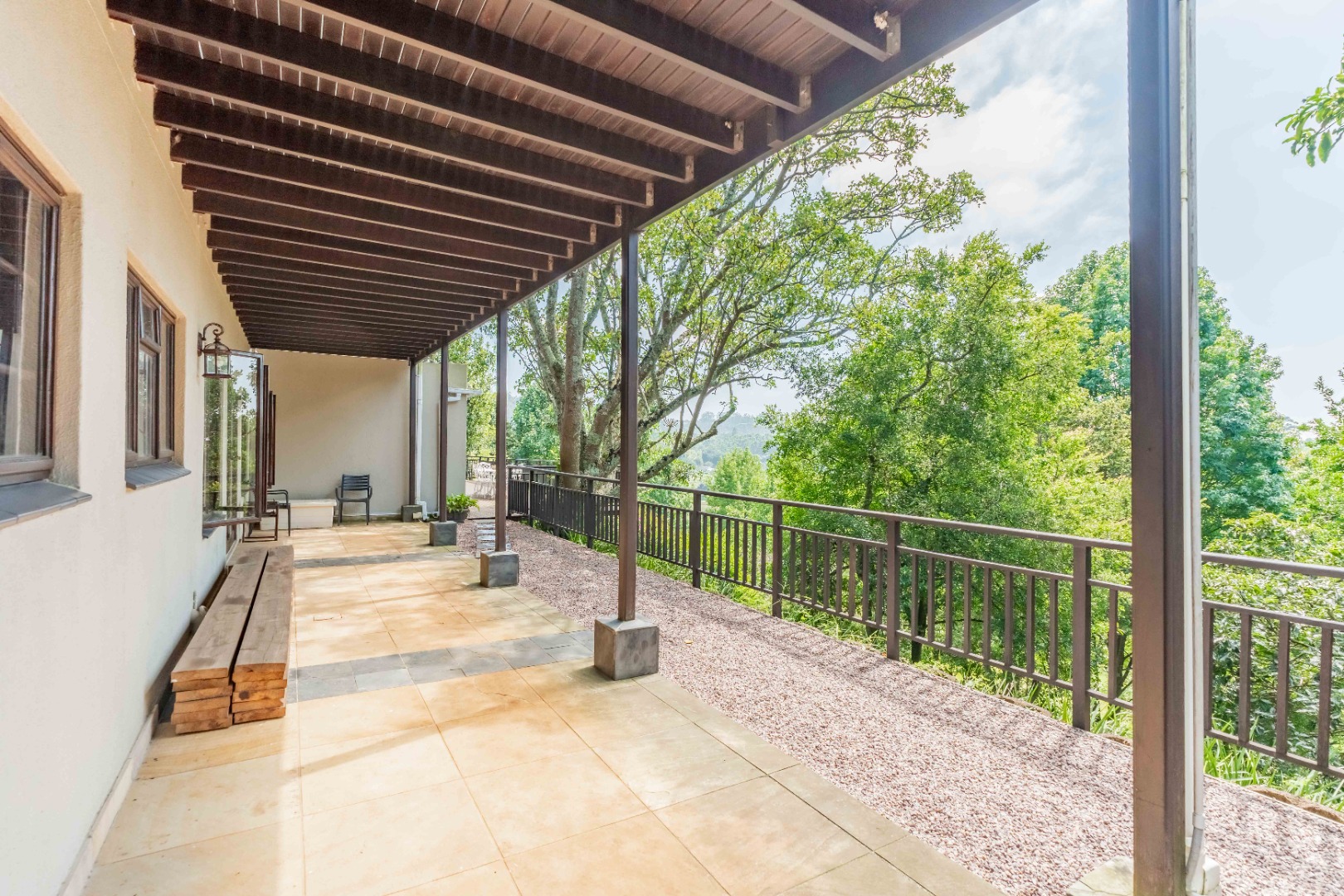 The entire property is fenced off with electric fencing on concrete foundation, 16 cctv cameras, roboguard beams, stainless steel burglar guards and trellidors. PLUS there is an inverter for general home appliances.