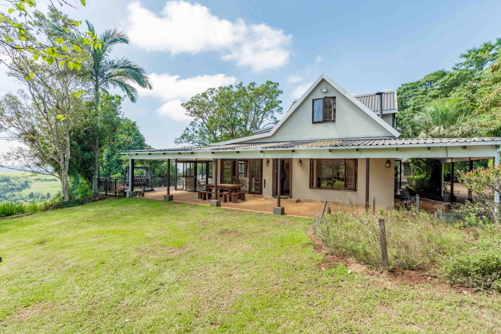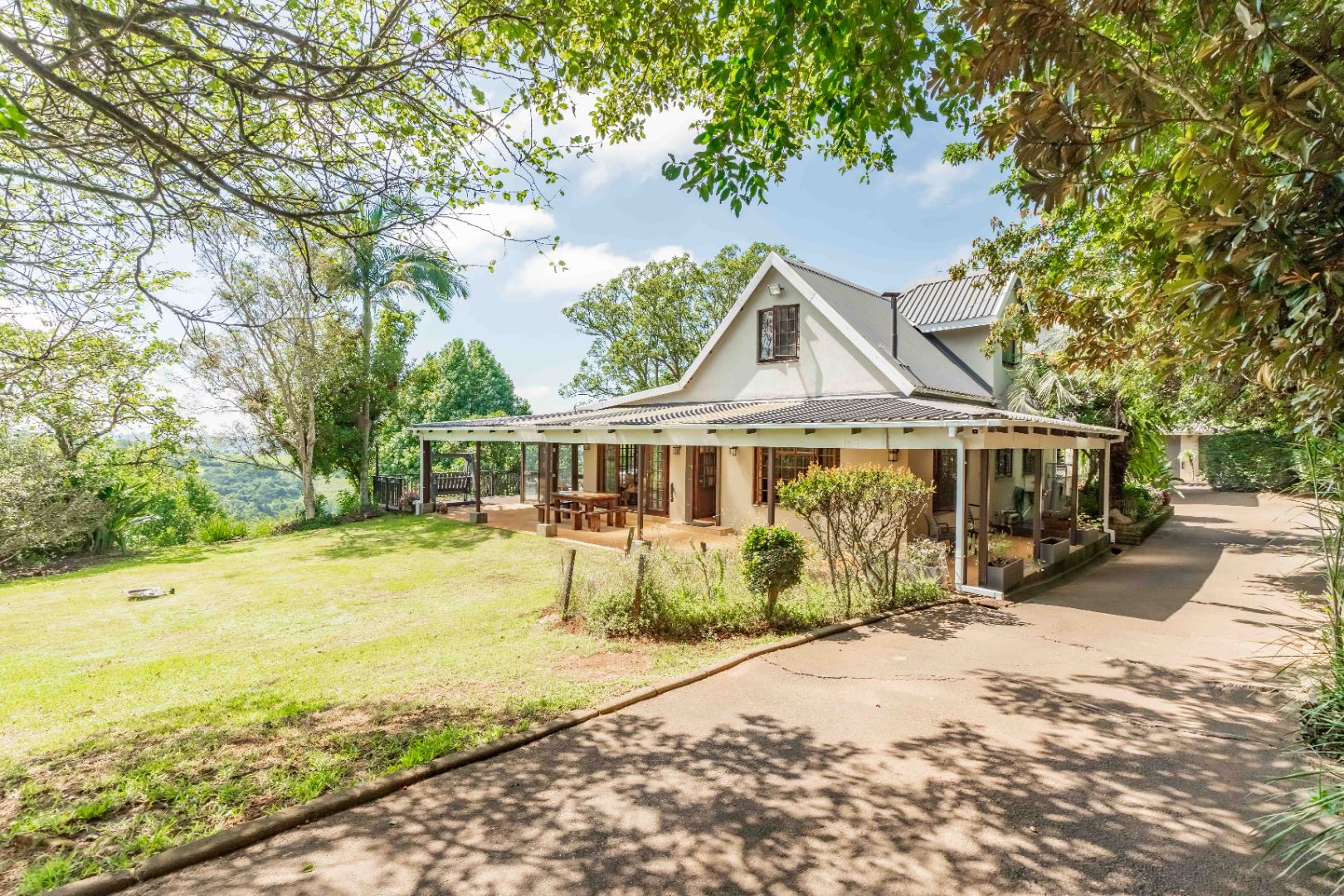 This beautiful farm-style home is situated on 29 000m2 of land with magnificent views and options to build another home or stables on the ready cut platform with a separate entrance.