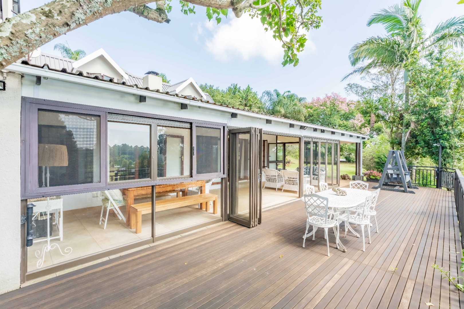 A large family home with living spaces on the ground floor opening onto an enclosed patio and a large deck with views that will leave you breathless.