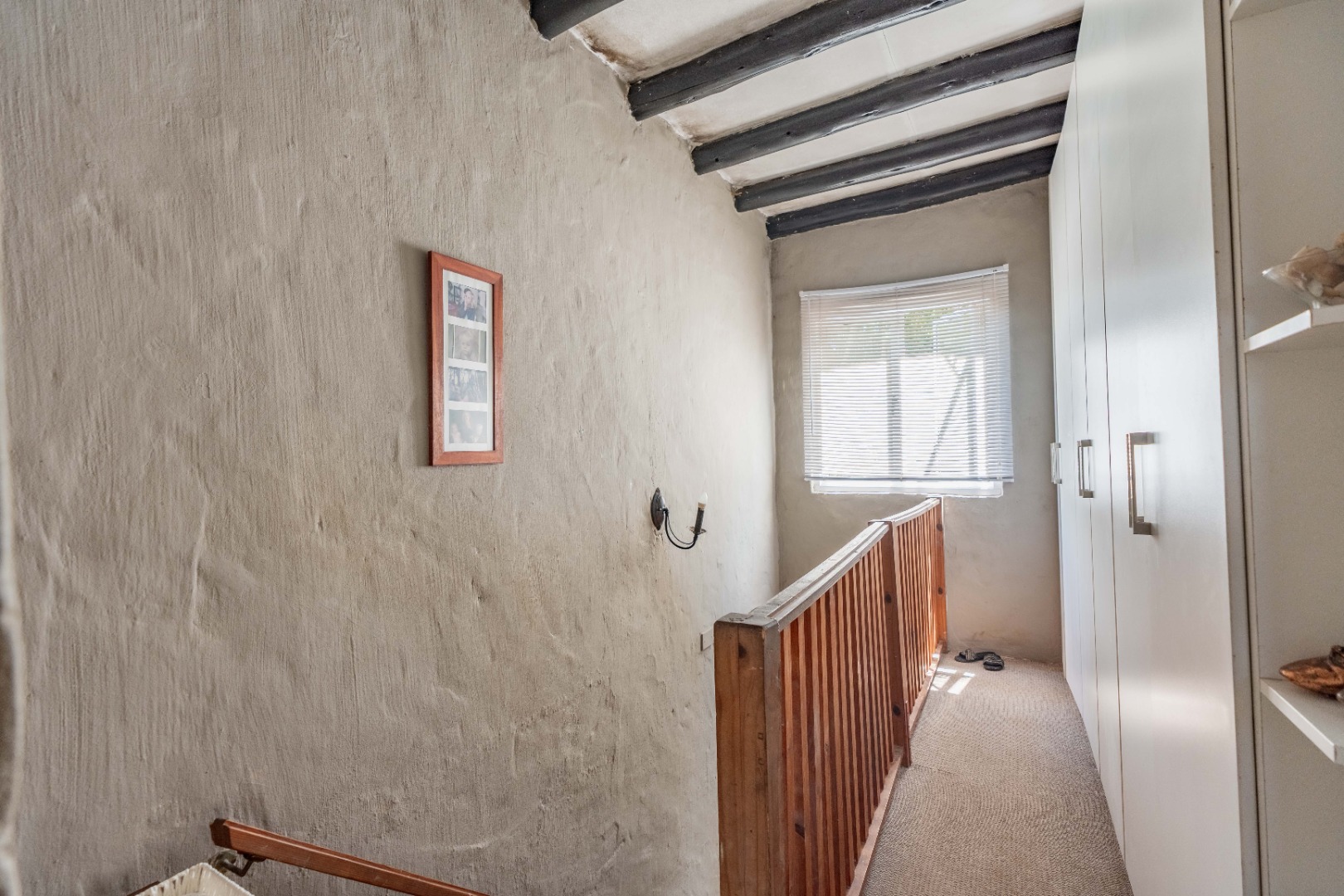 A beautifully crafted staircase leads you upstairs to two well-sized bedrooms, including a spacious main suite with a full en-suite bathroom, offering privacy and comfort.