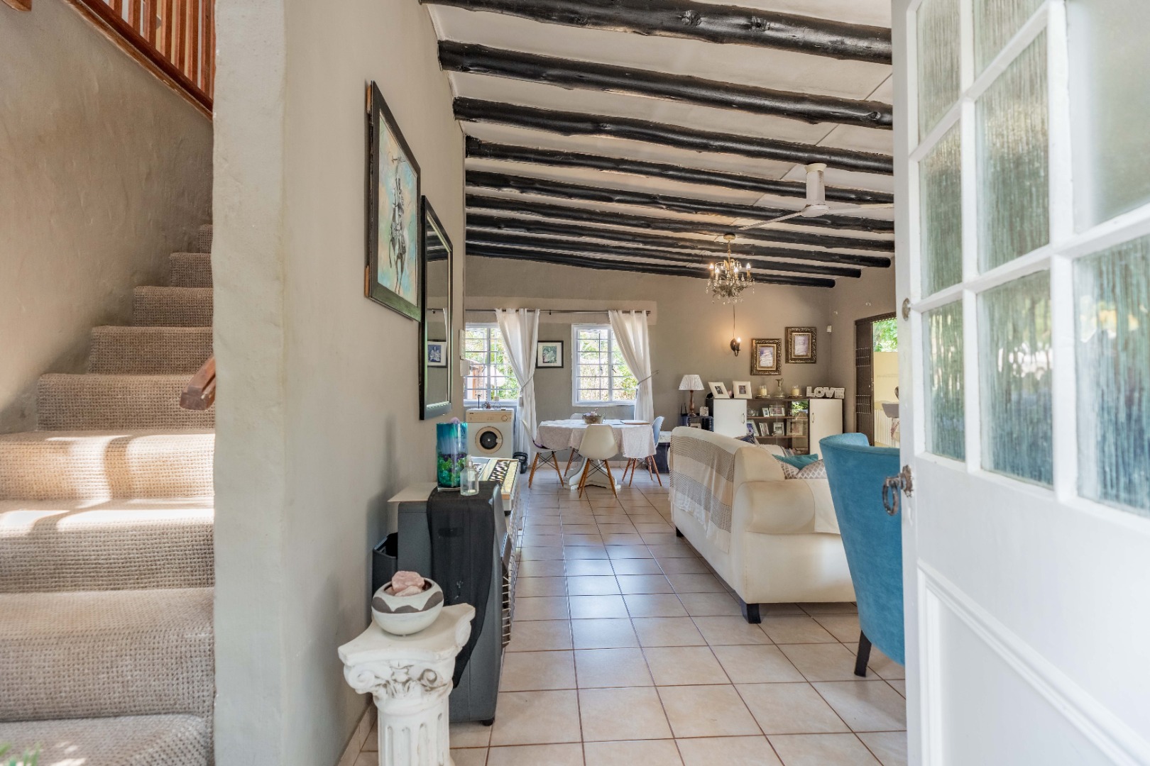 The heart of the home is the open-plan kitchen and lounge, designed for easy living and seamless connection. This space flows onto a welcoming outdoor entertainment area fitted with a built-in braai and sheltered under a stylish awning — ideal for family gatherings, hosting friends, or relaxing in any weather.