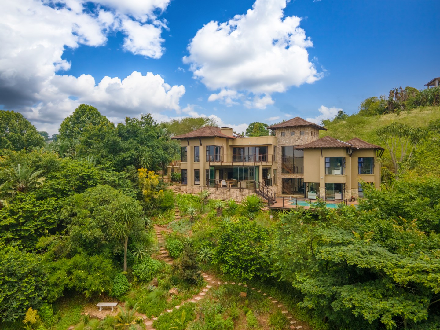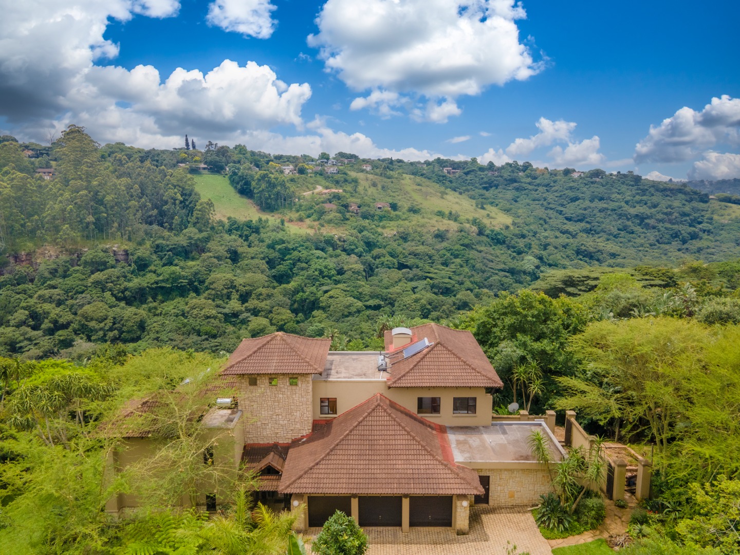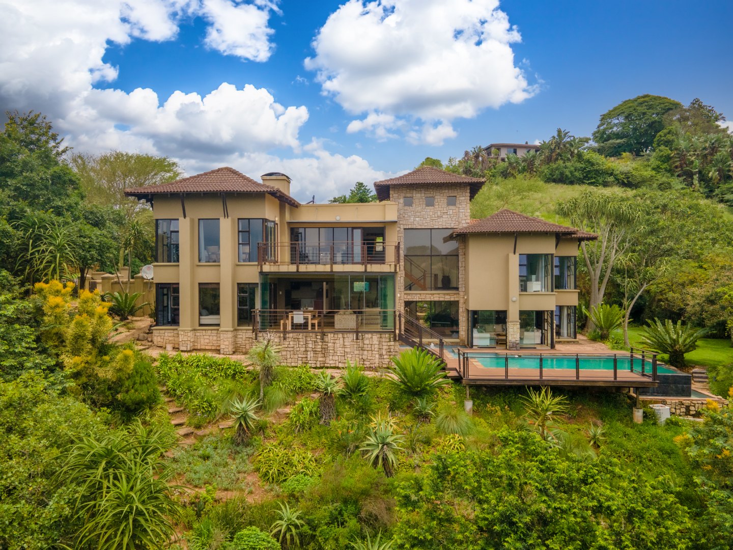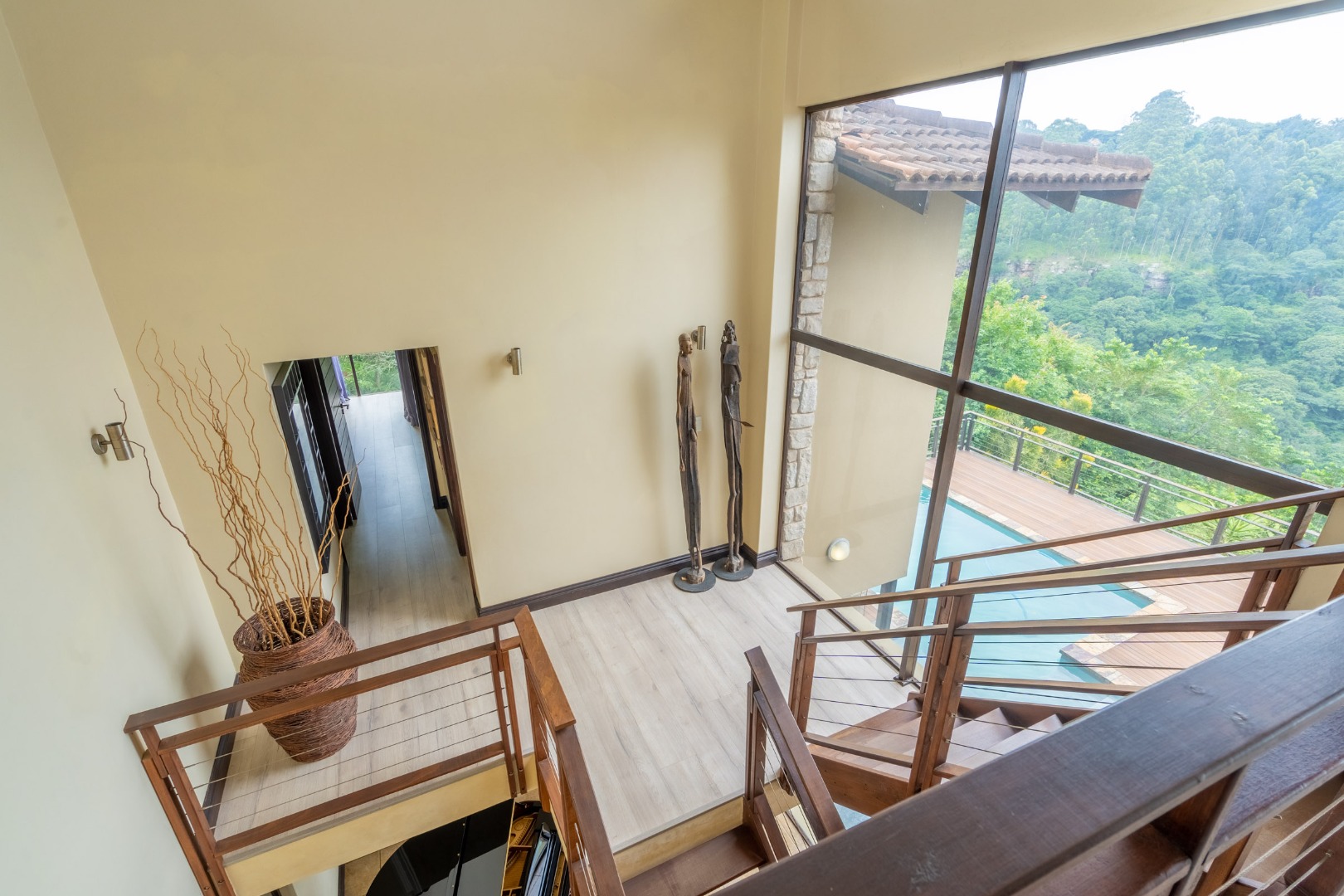 With elevated sweeping views into the Kloof gorge, the master en-suite bedroom is on the top level with private dressing room. Furthermore you will find 2 more bedrooms on the same level sharing a bathroom, plus a study.