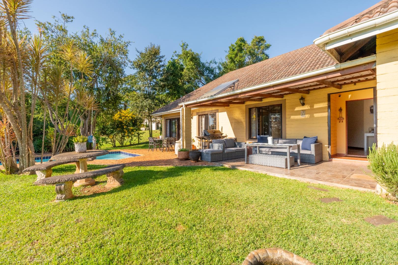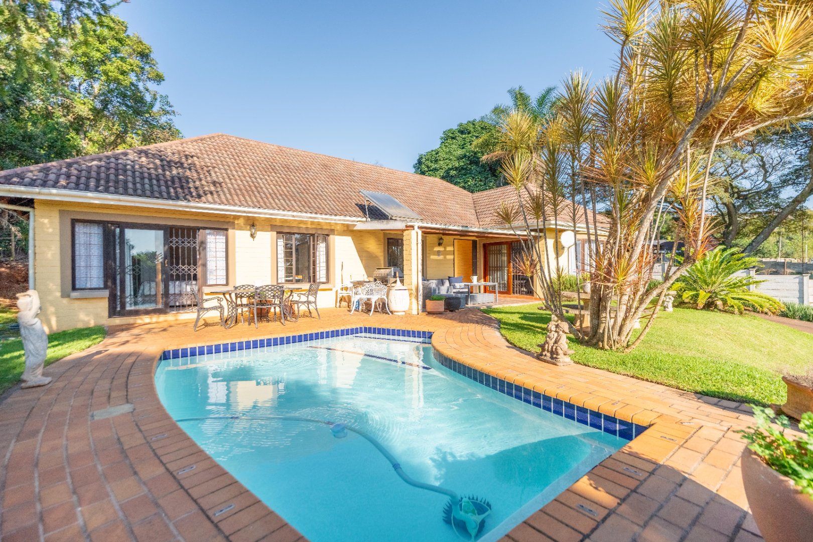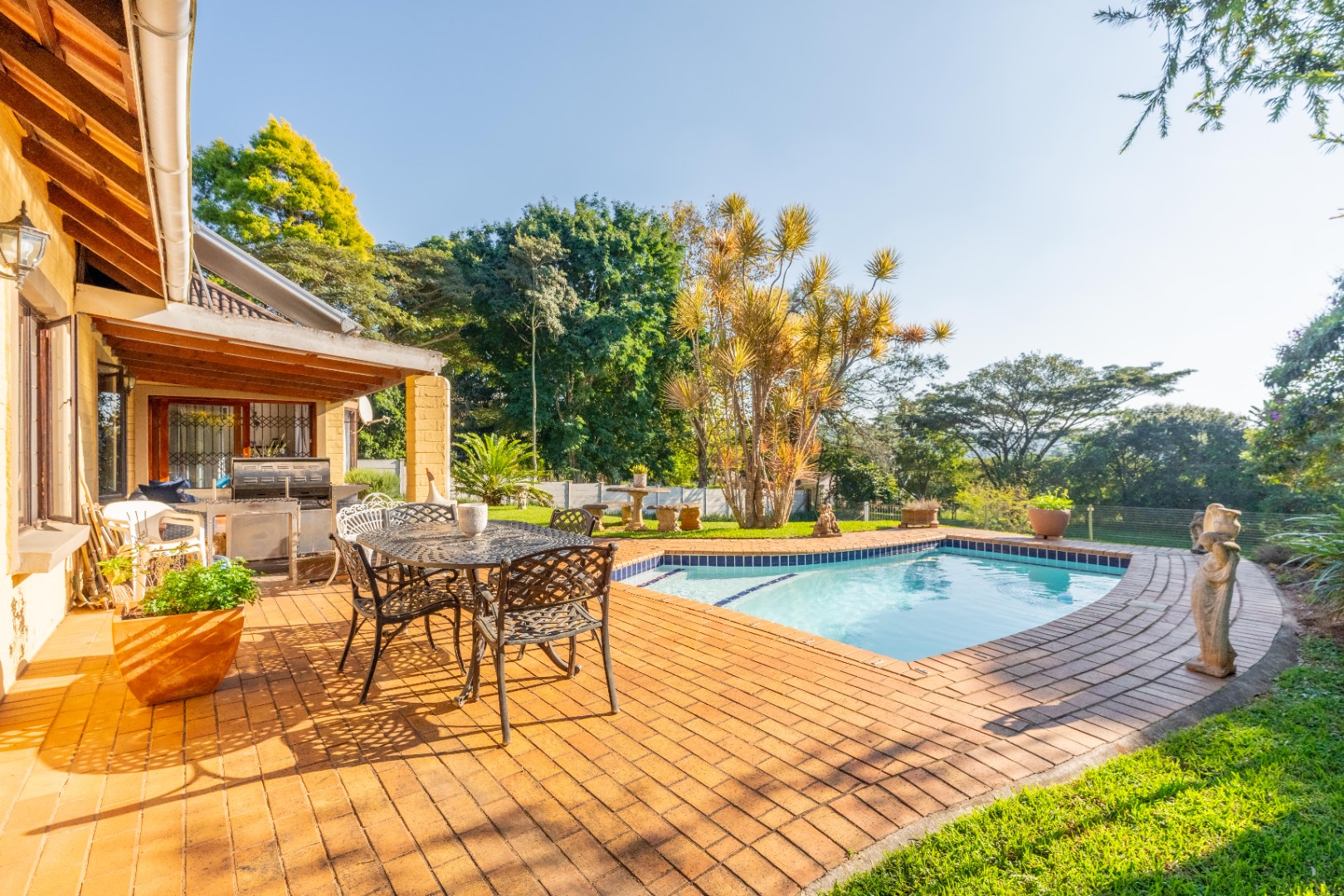 Spacious lounge with doors opening onto your undercover entertainment patio overlooking sparkling pool and tranquil well manicured garden.