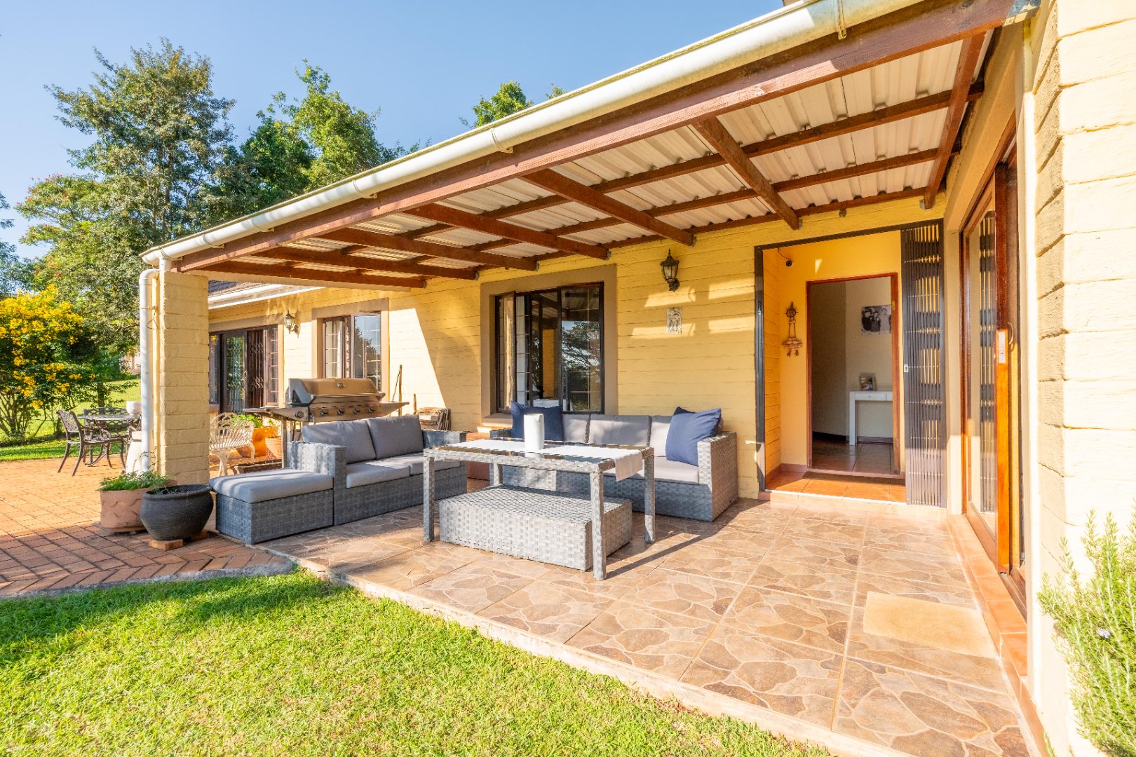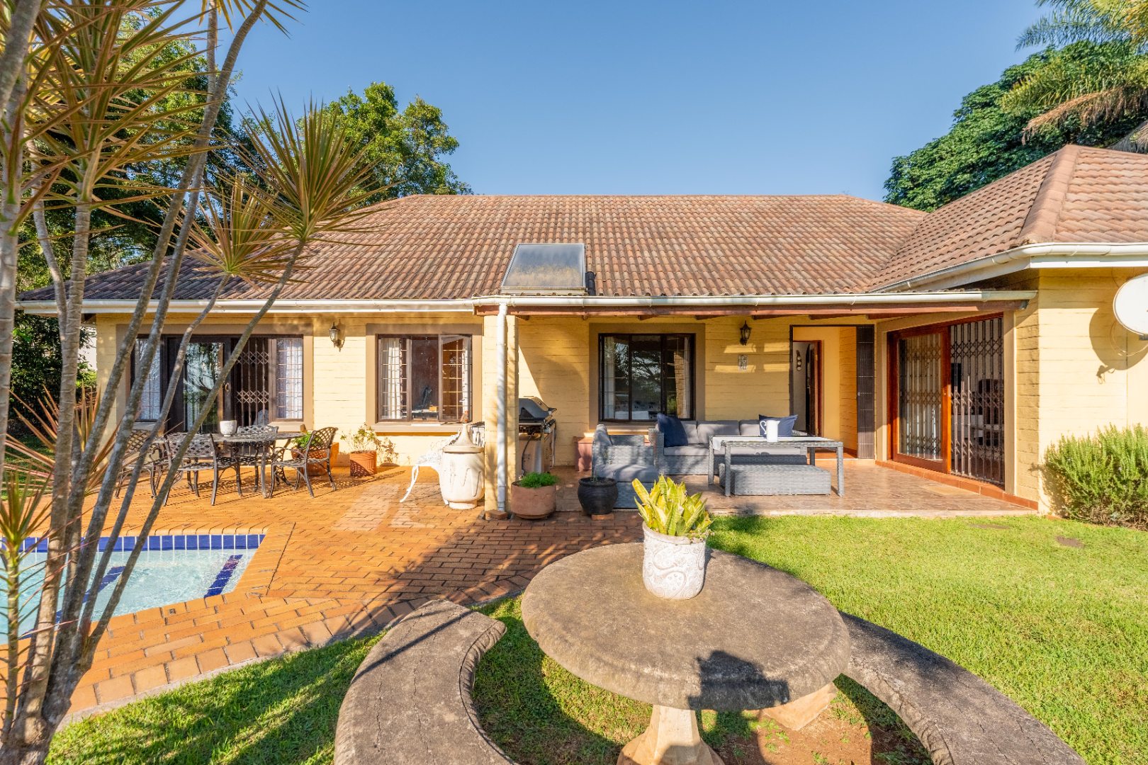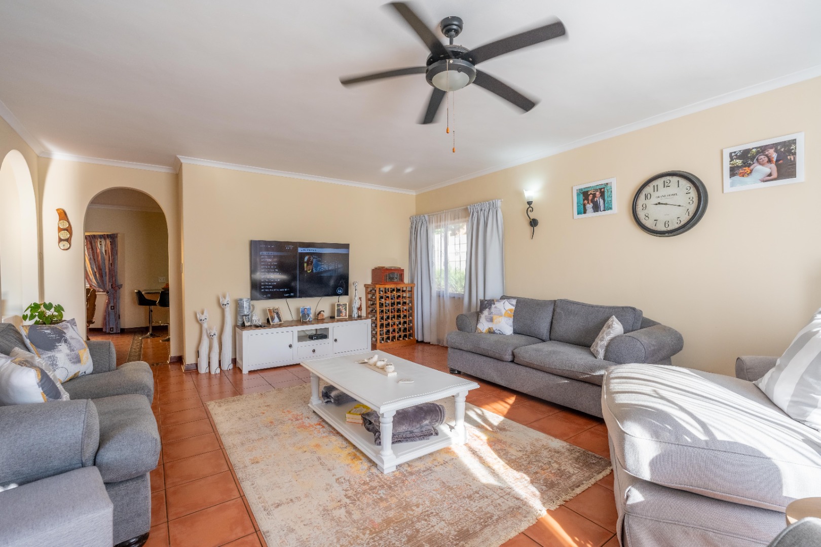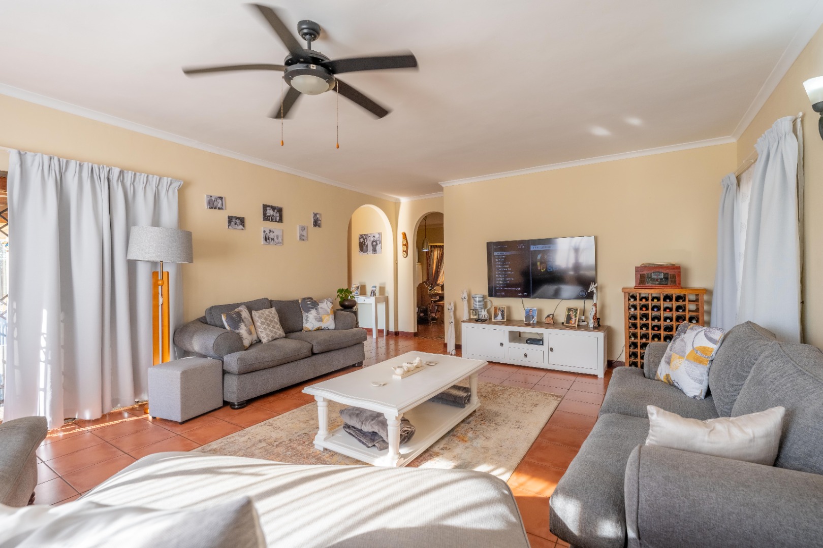 Spacious lounge with doors opening onto your undercover entertainment patio overlooking sparkling pool and tranquil well manicured garden.
