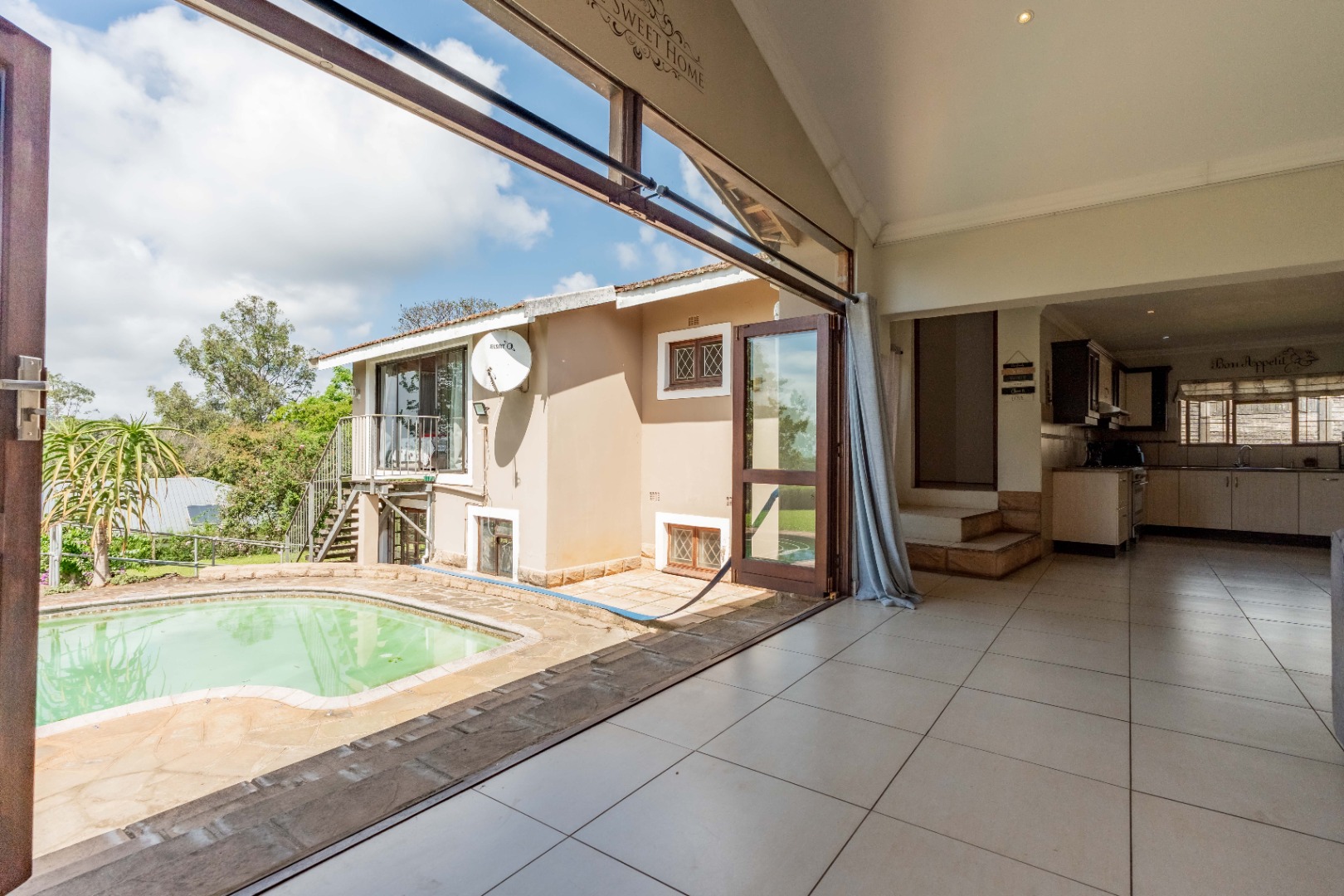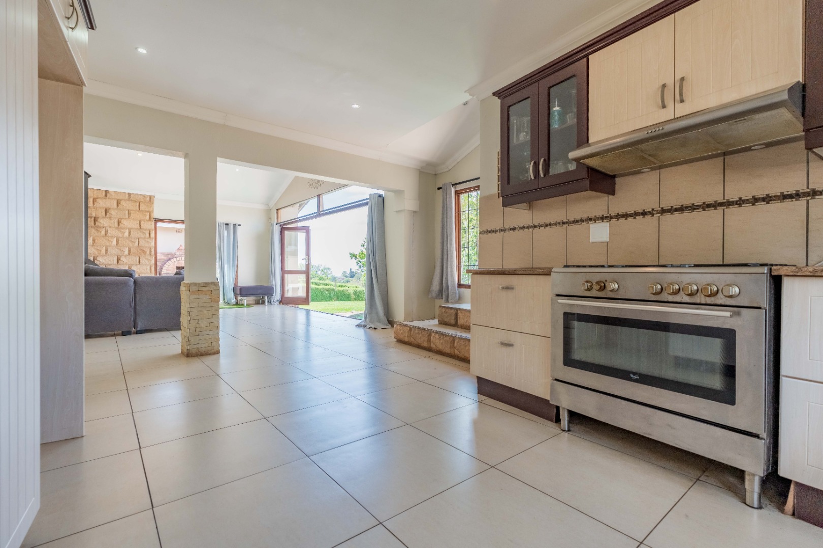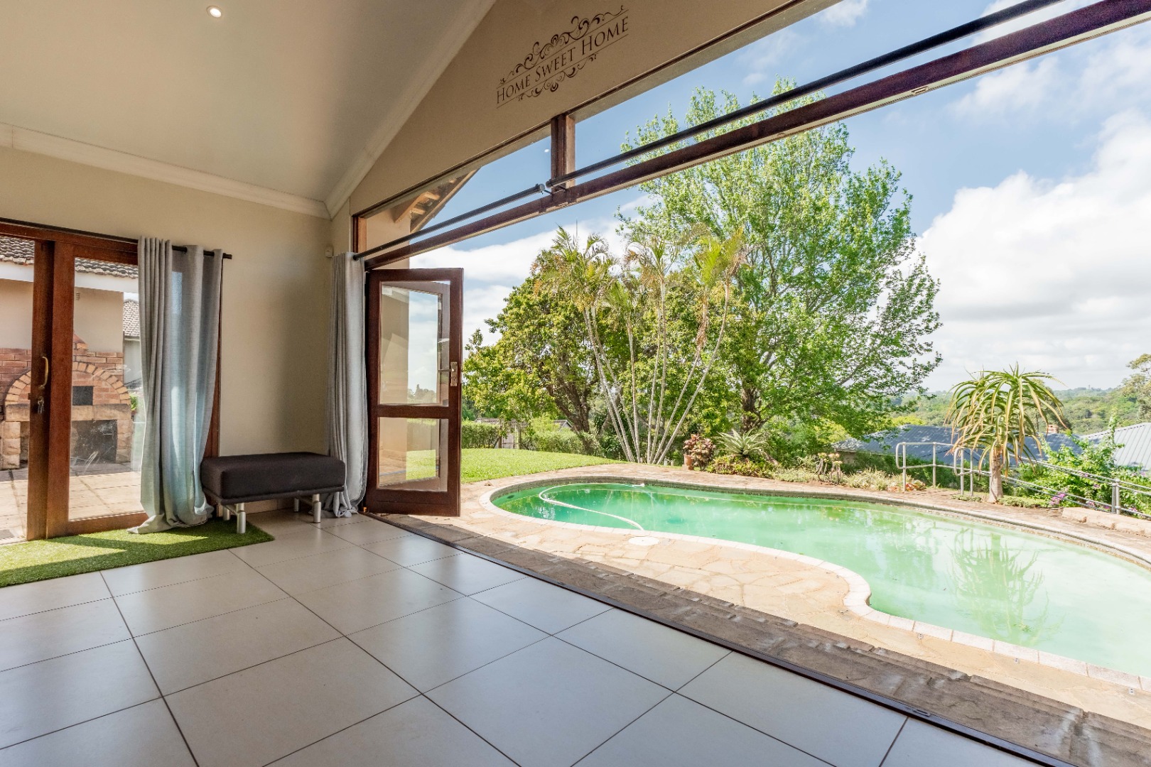 convenience. The heart of the home is an inviting open-plan kitchen, dining area, and lounge, where stacking doors open seamlessly to a sparkling pool, entertainment patio, and built-in braai - the perfect setting for weekend gatherings or relaxed family evenings.