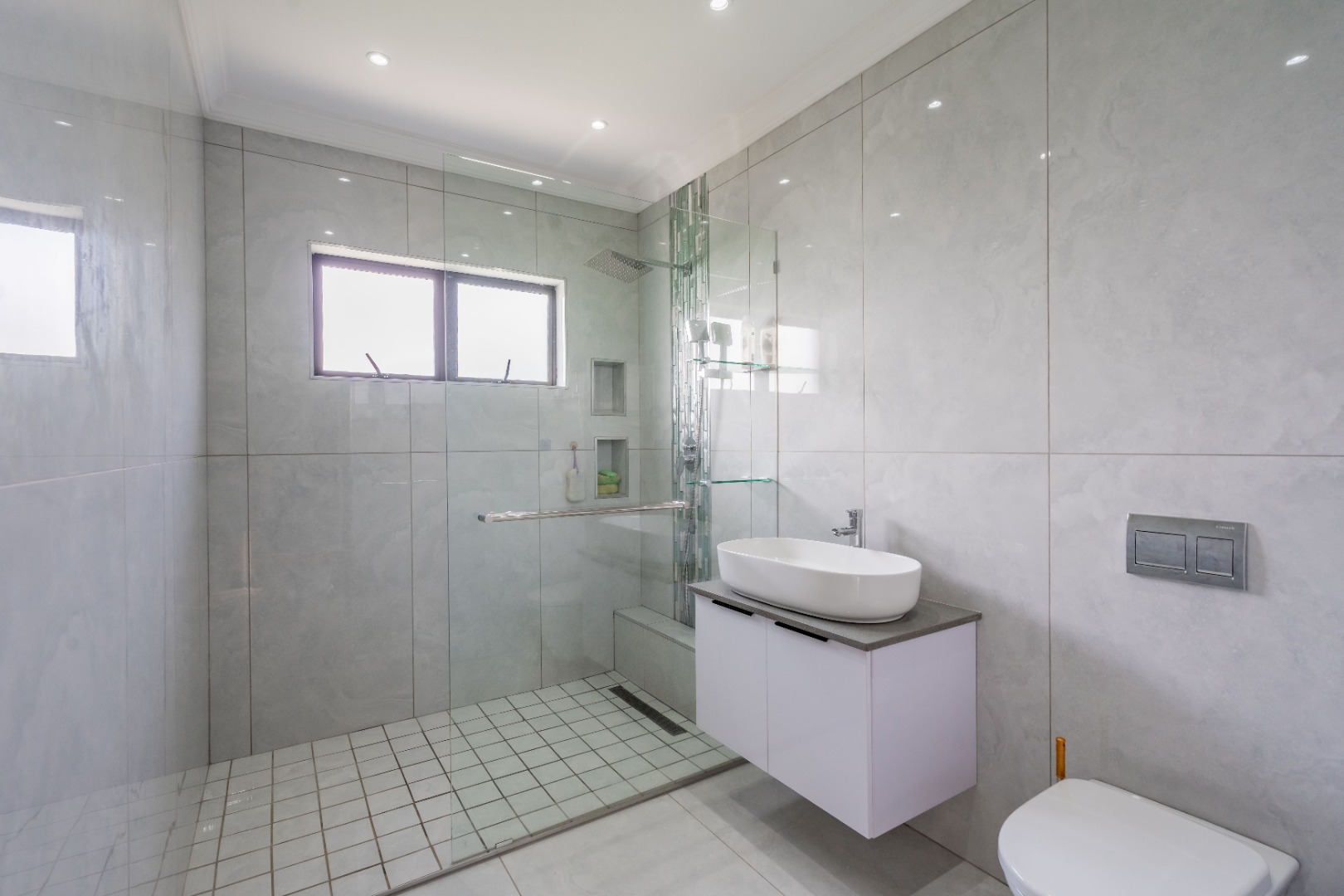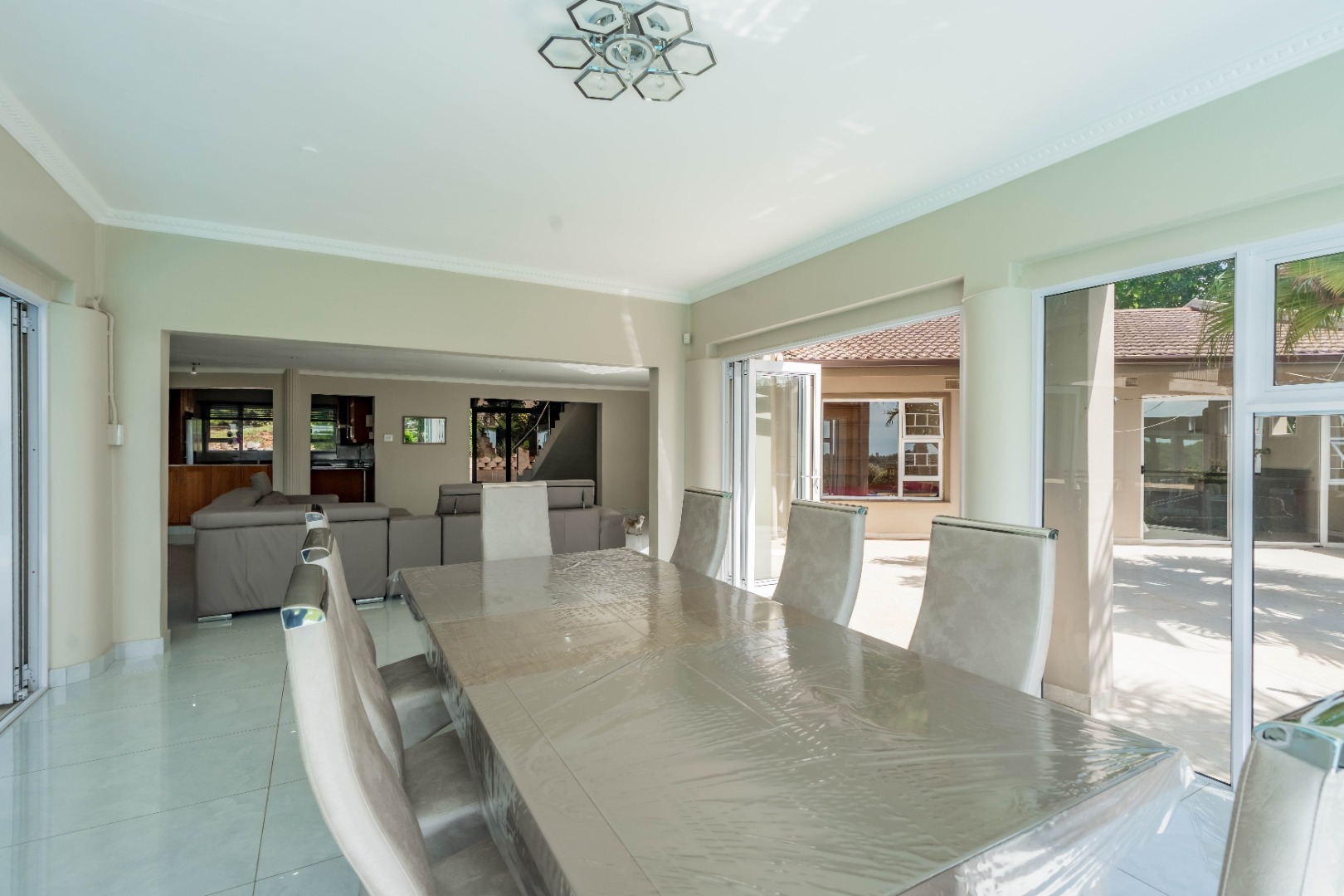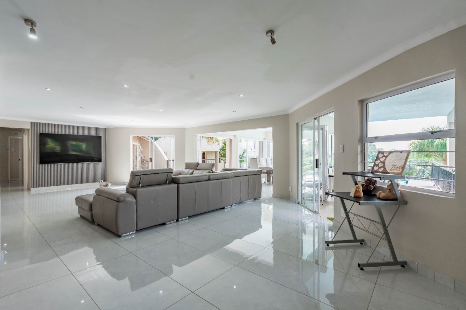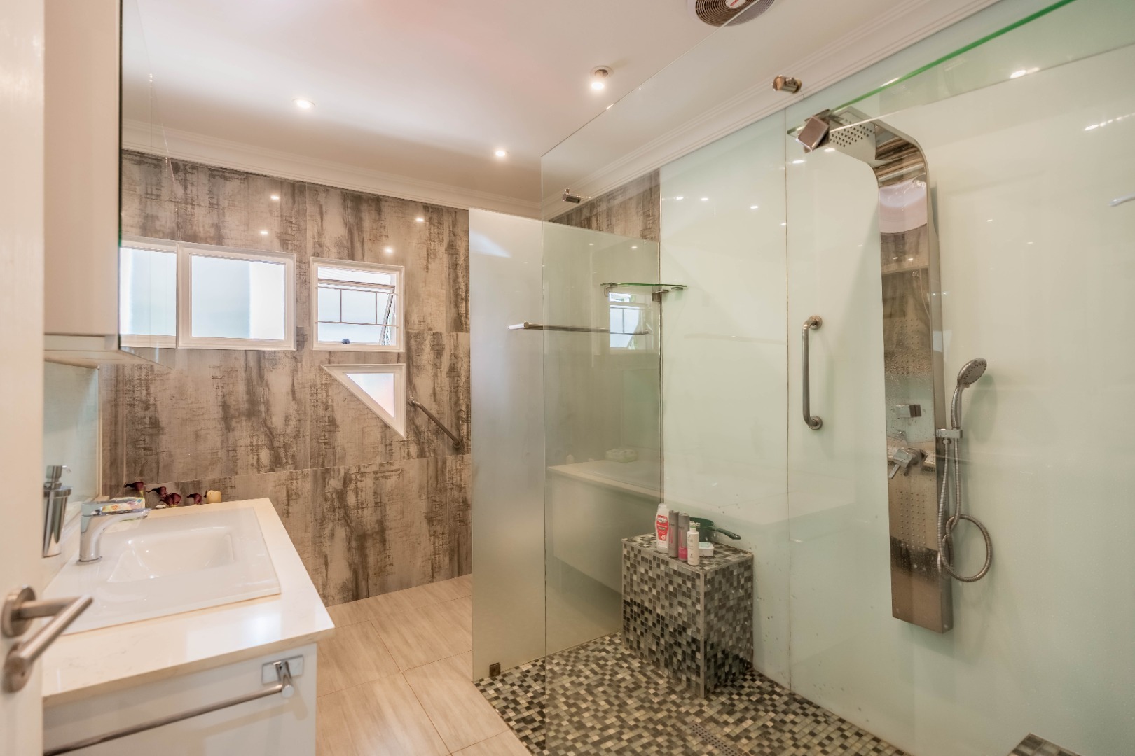 As you enter the home, you are welcomed by a stunning chandelier and impressive double-volume ceilings, creating a grand first impression. The main lounge and dining area flow seamlessly out onto a beautiful rim-flow pool, overlooking the lush garden and offering stunning nature views. The property also features a fantastic entertainment area, perfect for hosting family and friends.
