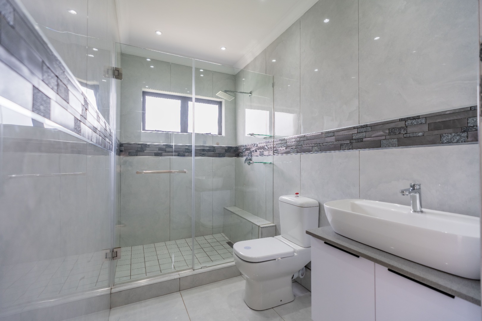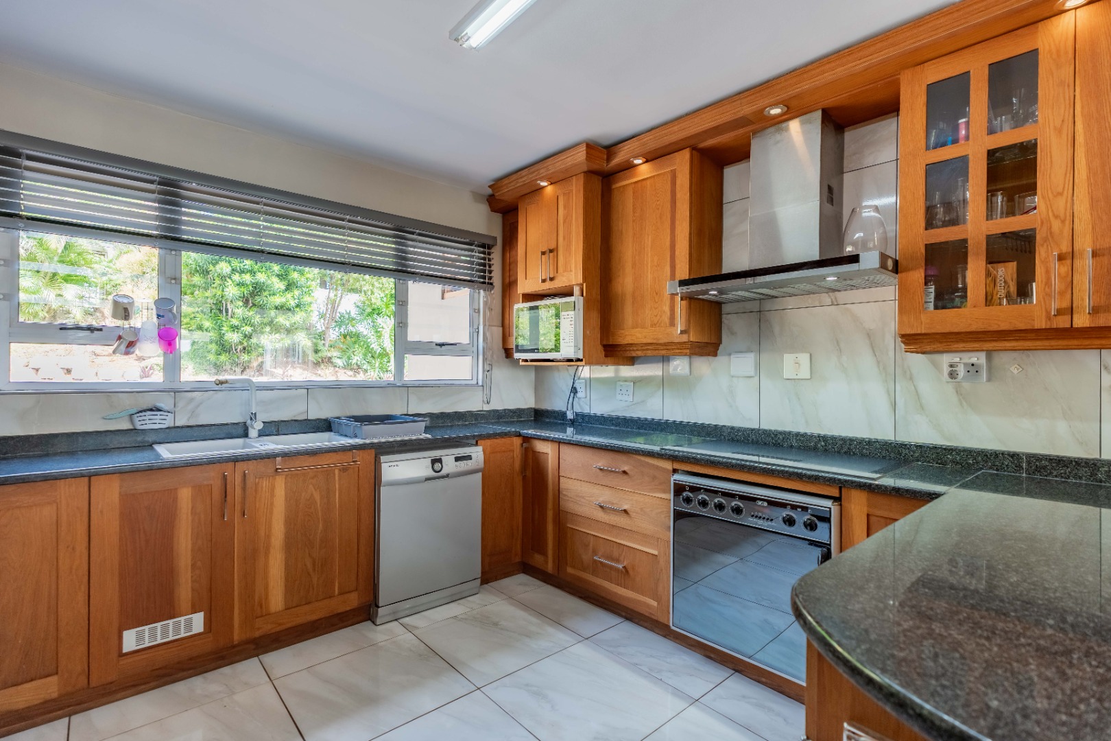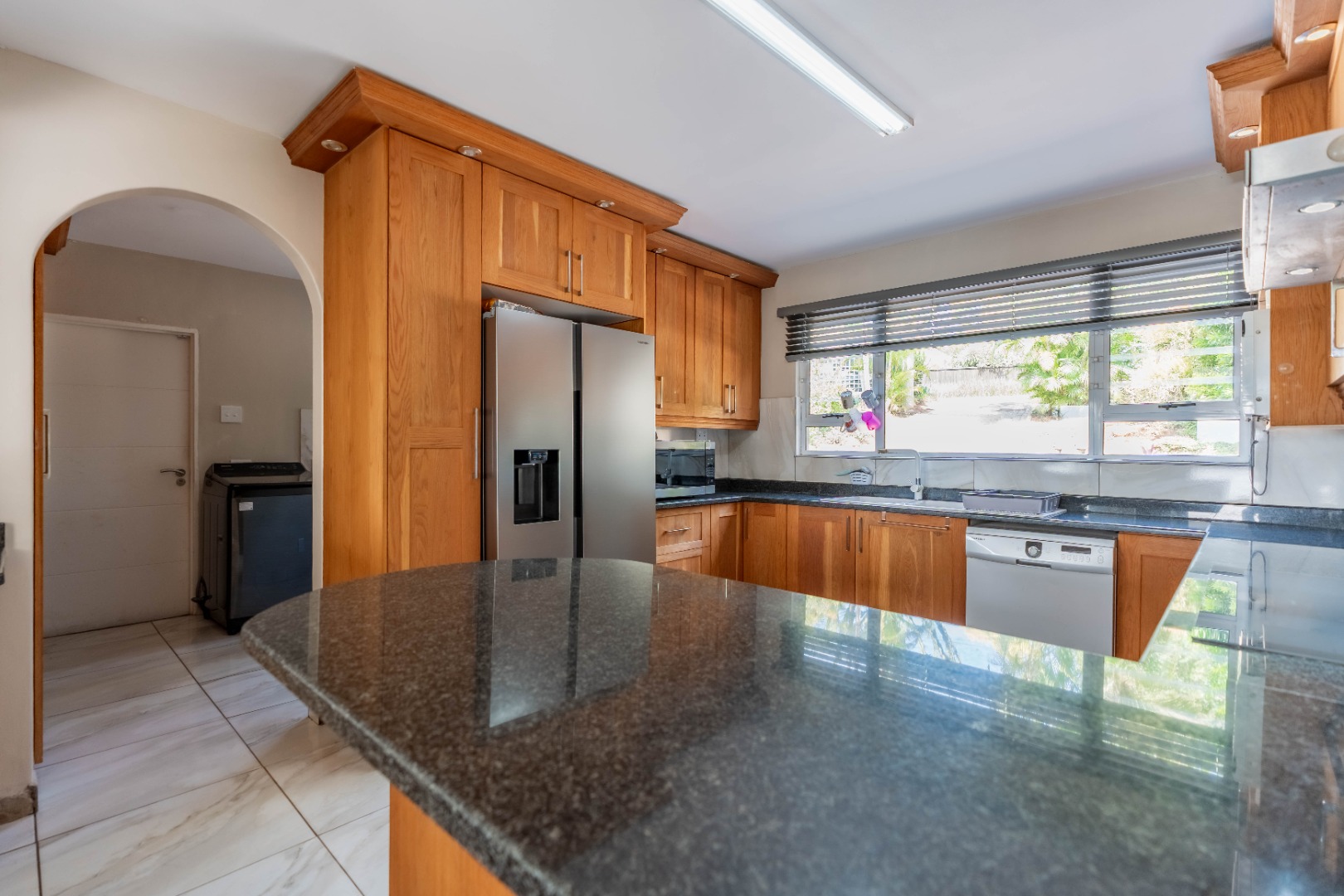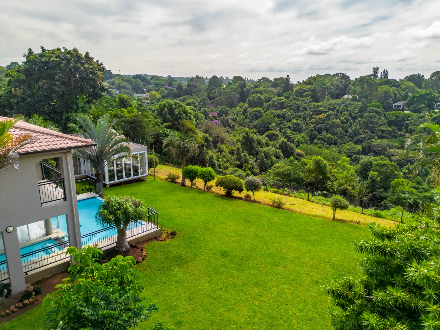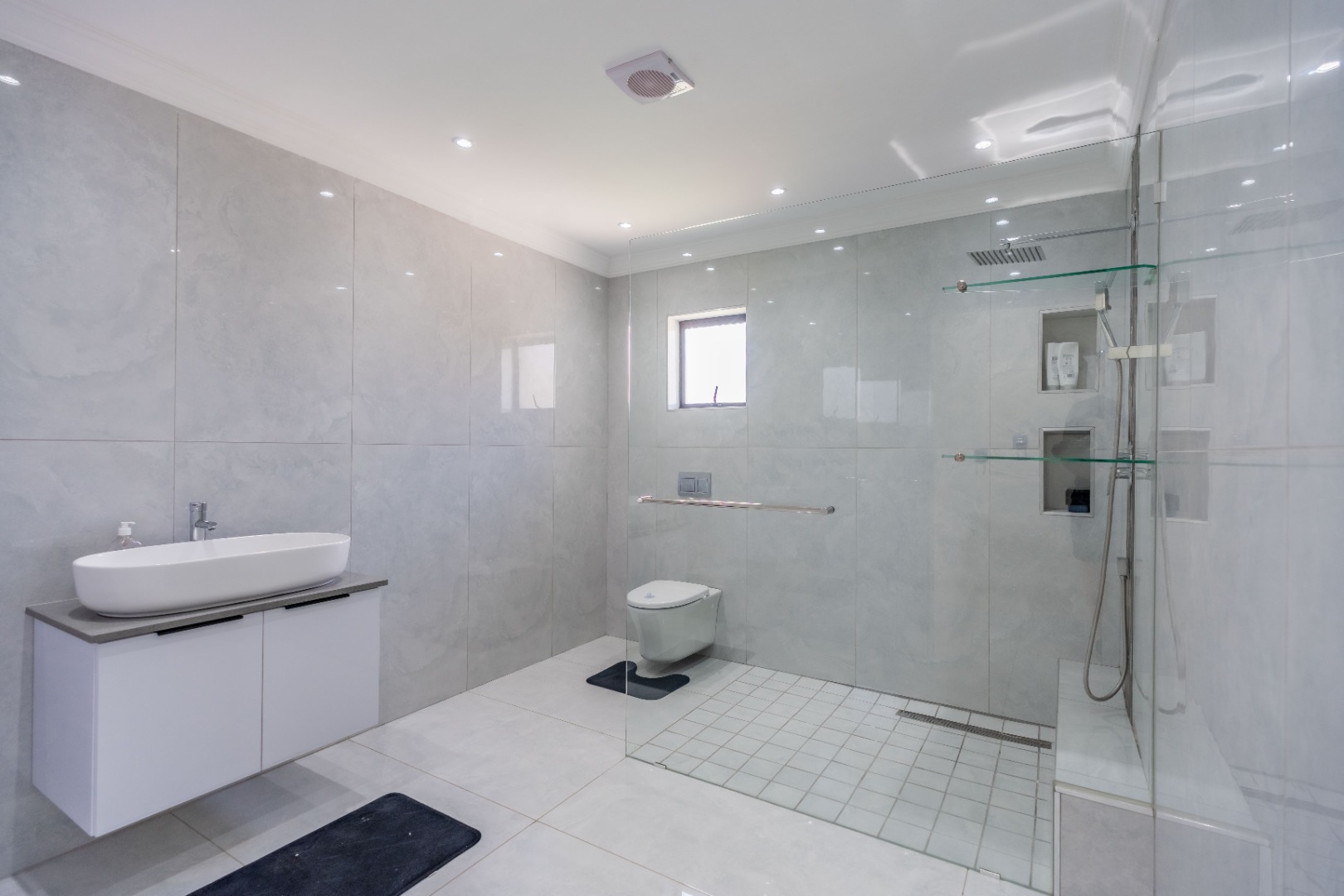 As you enter the home, you are welcomed by a stunning chandelier and impressive double-volume ceilings, creating a grand first impression. The main lounge and dining area flow seamlessly out onto a beautiful rim-flow pool, overlooking the lush garden and offering stunning nature views. The property also features a fantastic entertainment area, perfect for hosting family and friends.