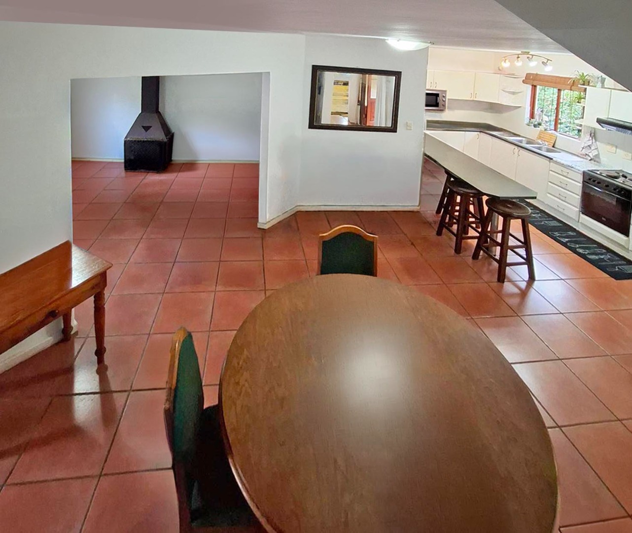 - Dining area with a versatile space for desk.