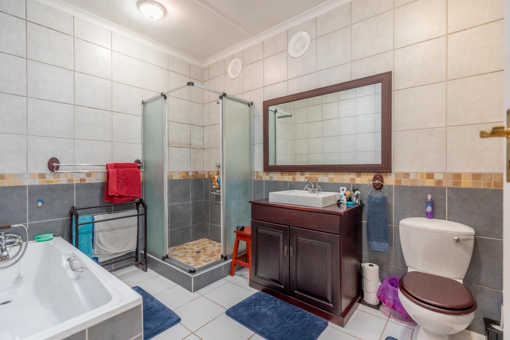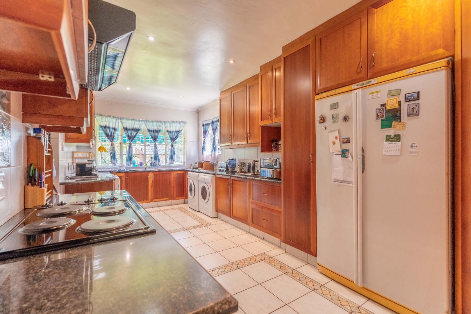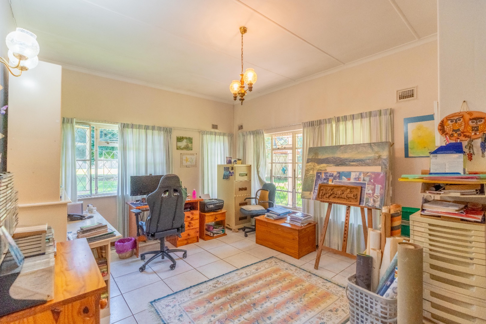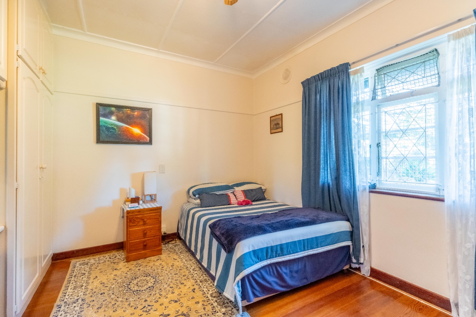 All bedrooms have built-in cupboards. The main bedroom includes an en-suite and an attached study or studio with its own entrance - ideal for a home office or private suite. A private entertainment area overlooks the swimming pool and mature garden with well established trees.