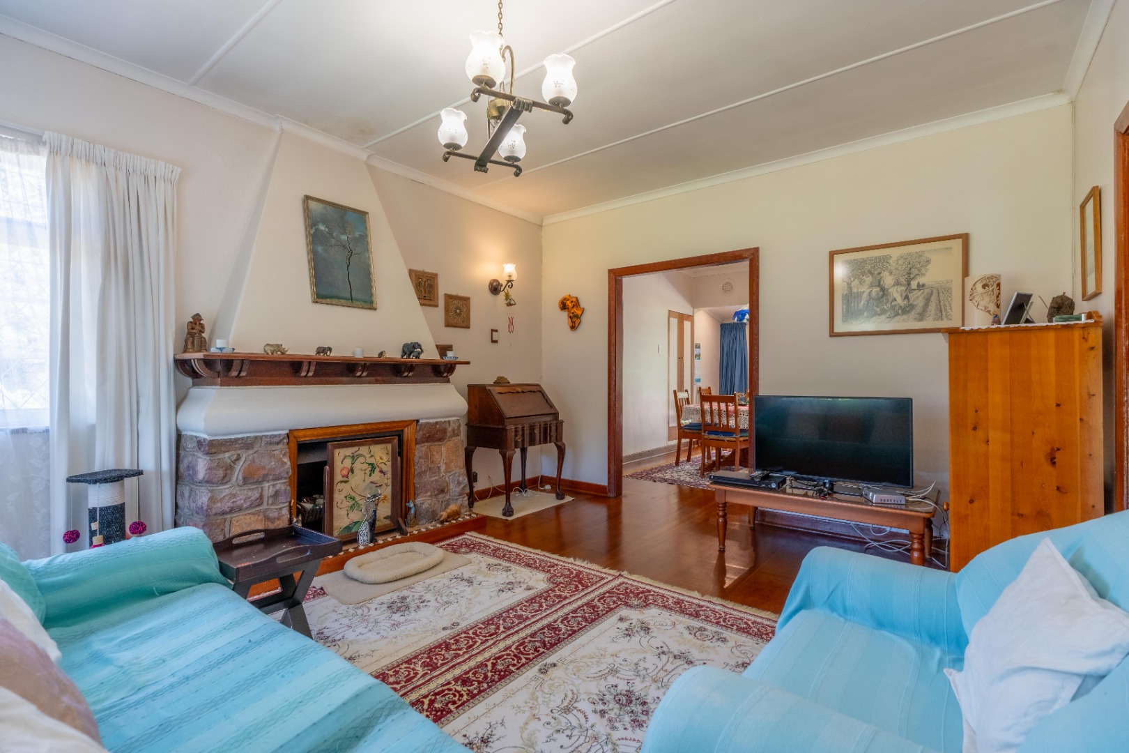 Featuring original Oregon pine floors, high ceilings, and a welcoming front patio, the home includes two lounges, one with a fireplace, flowing to the dining area and pool. A large, well-appointed kitchen with granite tops, pantry, and direct patio access makes entertaining effortless.