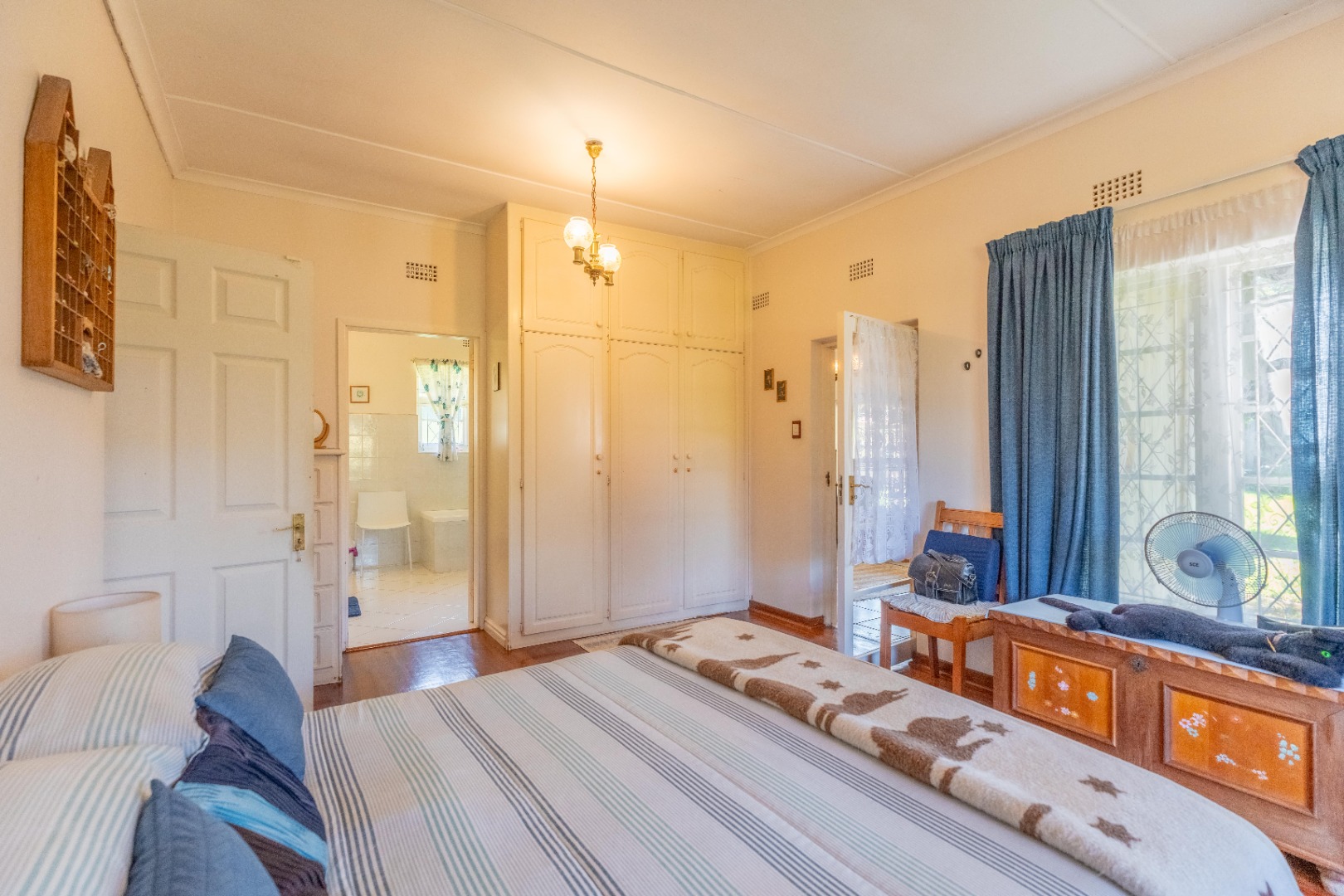 All bedrooms have built-in cupboards. The main bedroom includes an en-suite and an attached study or studio with its own entrance - ideal for a home office or private suite. A private entertainment area overlooks the swimming pool and mature garden with well established trees.