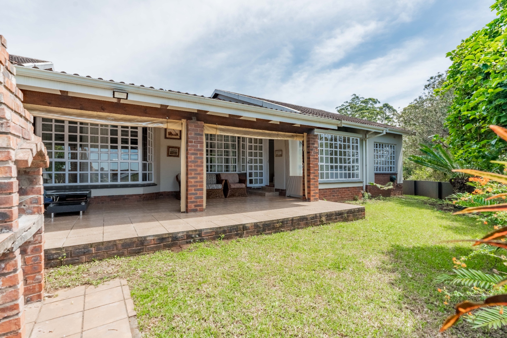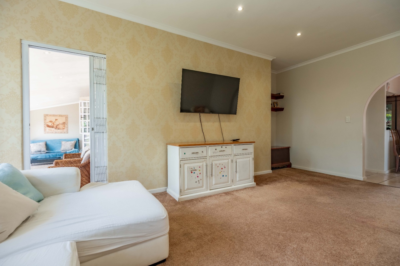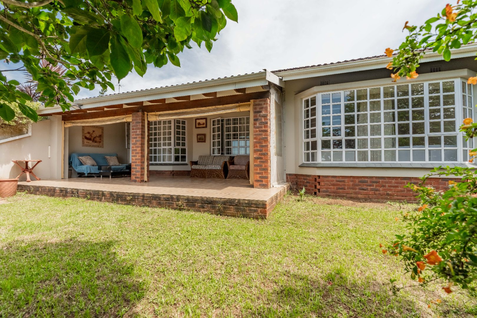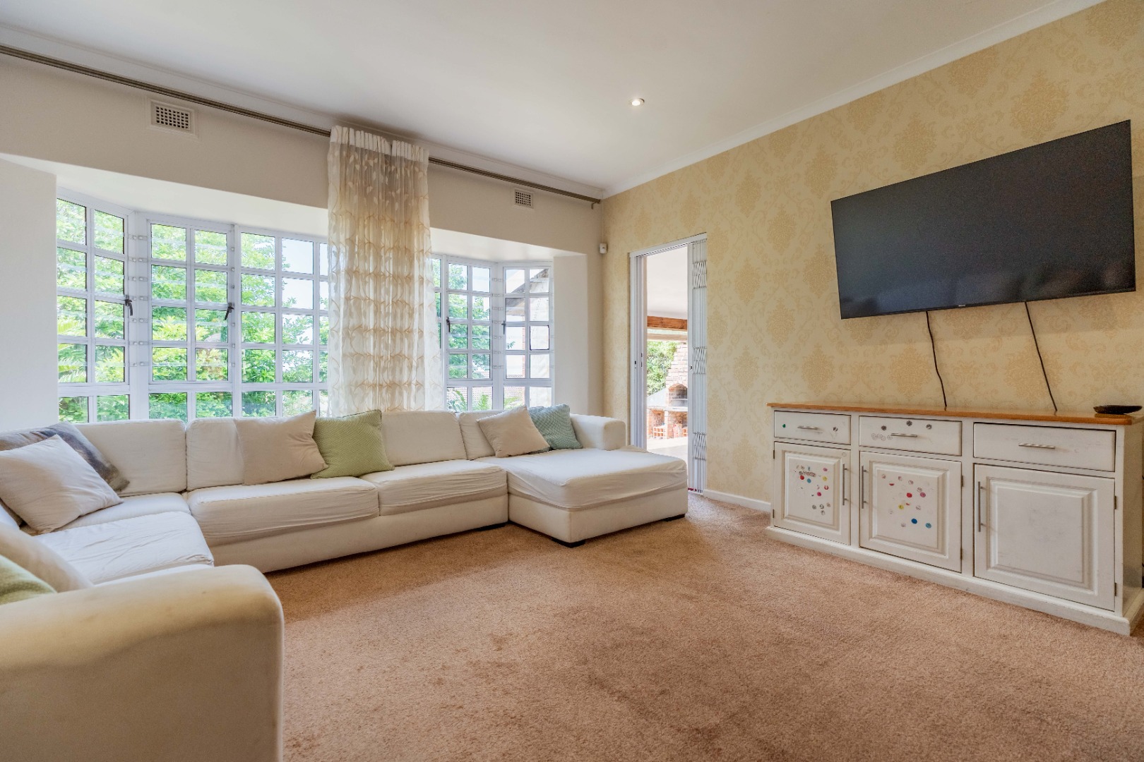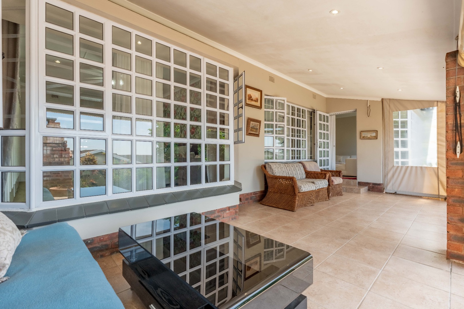 The living area opens onto a covered entertainment patio with a built-in braai and a private garden — perfect for relaxed family living. Down the passage are three generously sized bedrooms and two and a half bathrooms, including a main en-suite.