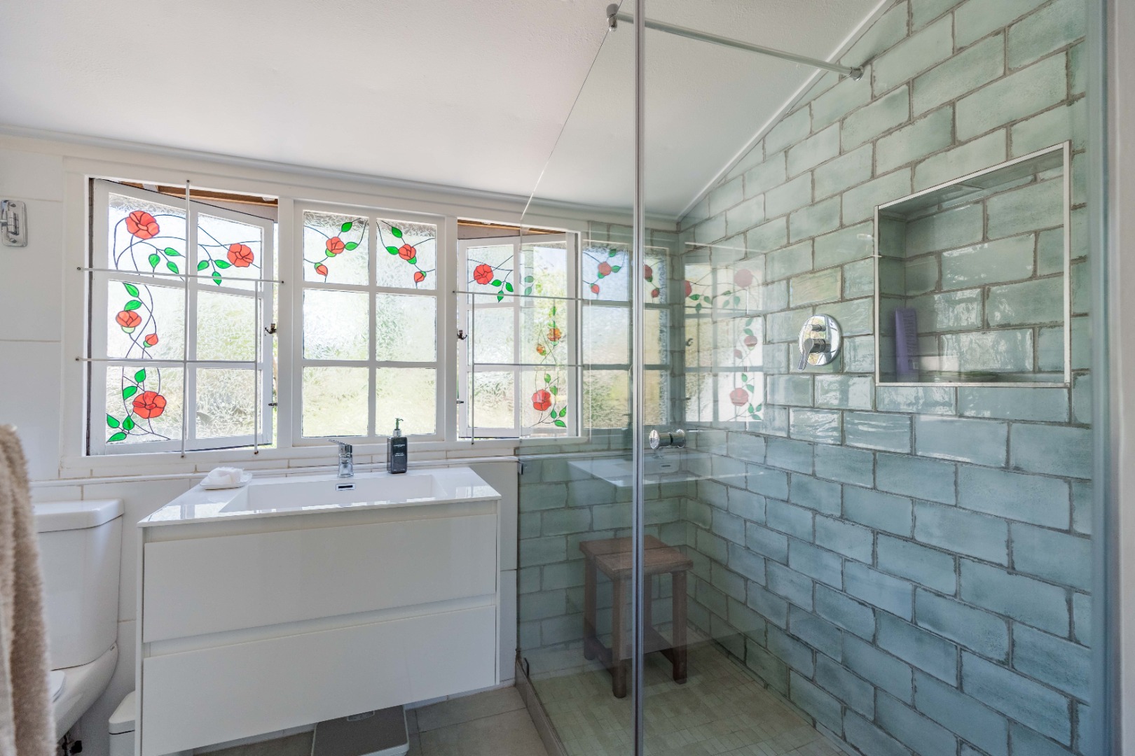 - Downstairs Retreat: Two spacious bedrooms share a beautifully appointed full bathroom, complemented by a separate guest shower for added convenience.