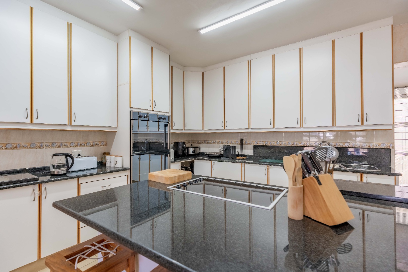 - Modern granite-top kitchen with island and scullery