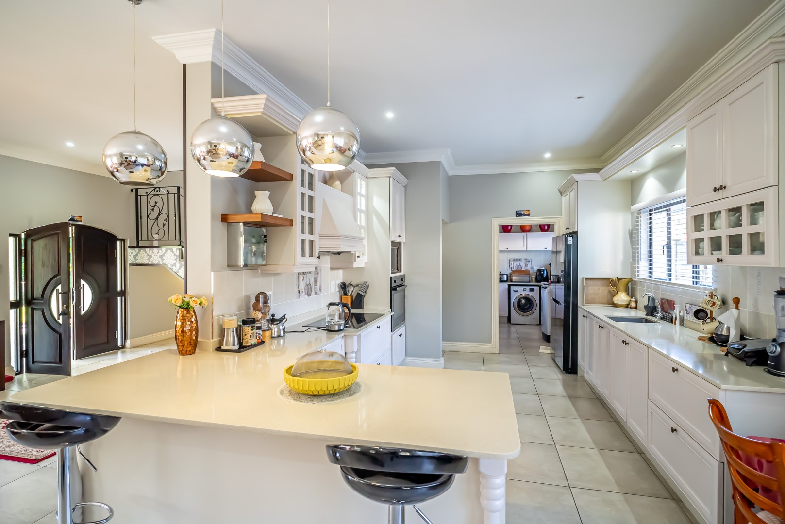 This immaculate home offers 4 good sized bedrooms, 3 with en-suites, 1 family bathroom and a guest loo. 3 lounges, a dining room and a stunning kitchen with Caesar stone counter tops, gas stove with electric oven and a large scullery to house all your appliances.