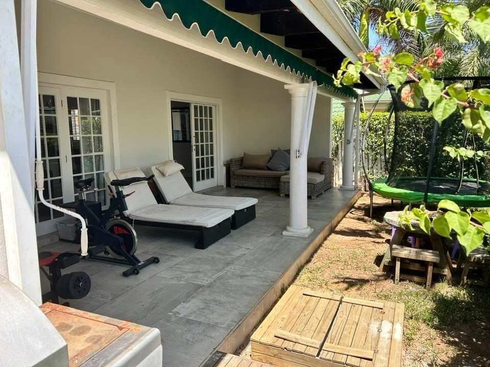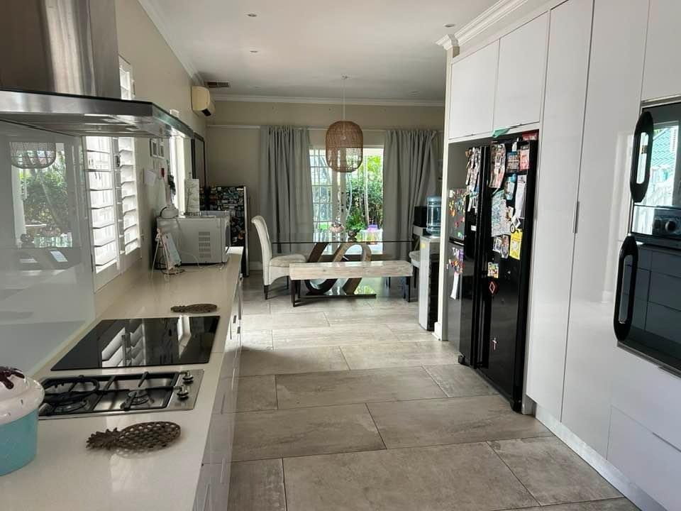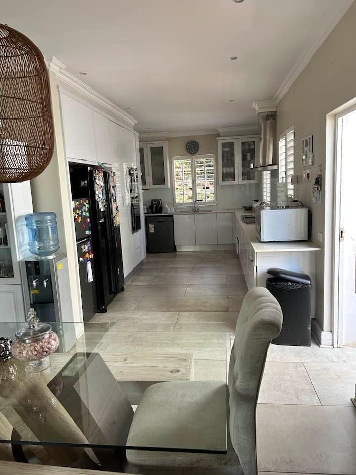 Nestled within the prestigious Mount Edgecombe Country Club Estate, this spacious residential property offers an exceptional lifestyle in a secure, suburban setting. The home features an inviting open-plan layout, seamlessly connecting the functional kitchen and dining area. The kitchen is equipped with a built-in oven, hob, extractor fan, double sink, and ample storage, complemented by natural light and air conditioning for comfort. The dining space benefits from a stable door with a security gate, enhancing both ventilation and safety.