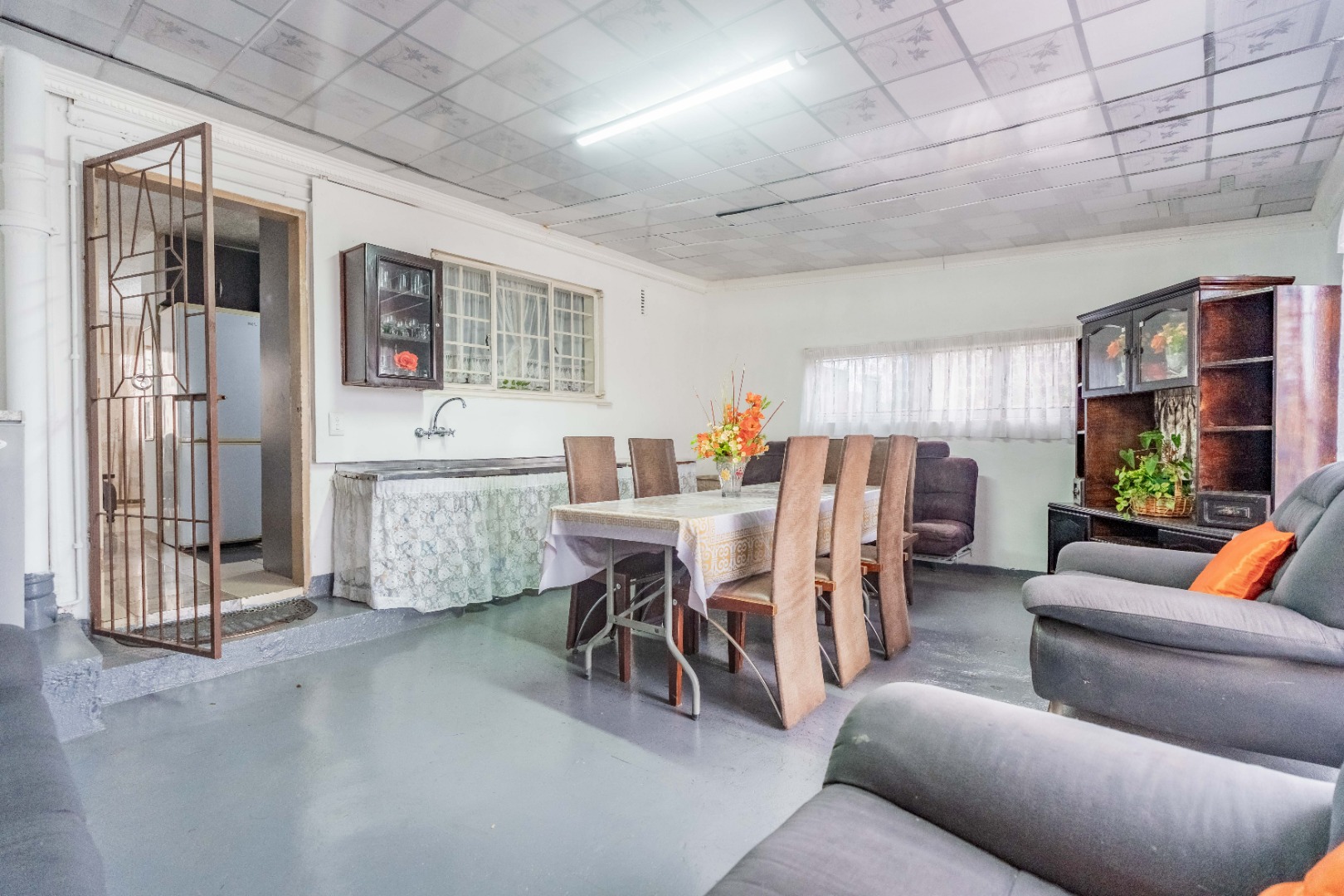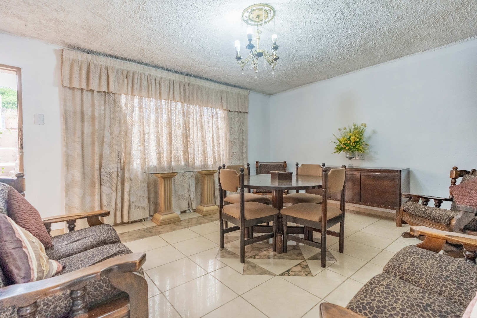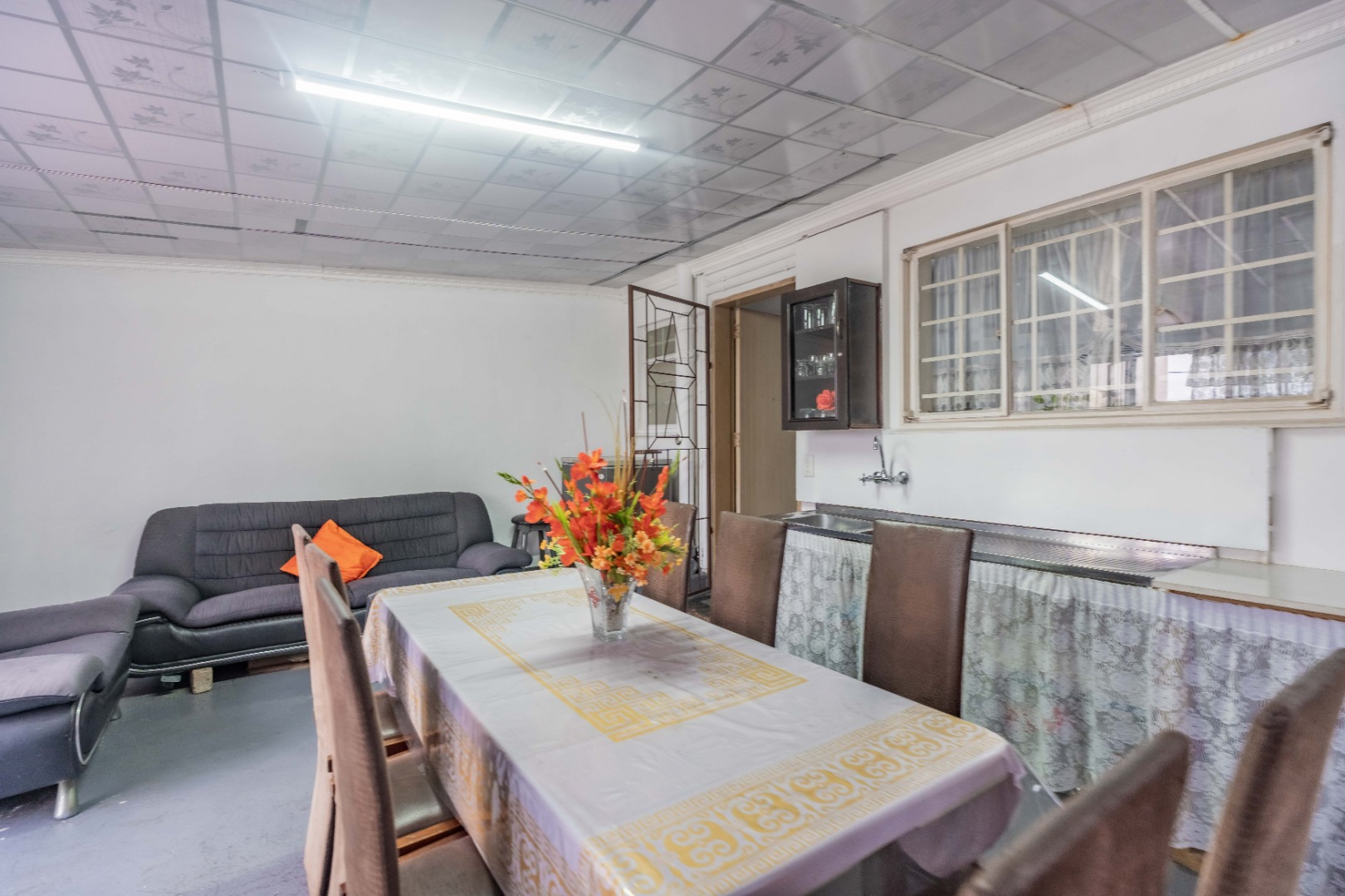 Kitchen flows to an enclosed patio/formal lounge, which opens onto the backyard, offering the perfect setting for braais and family gatherings.