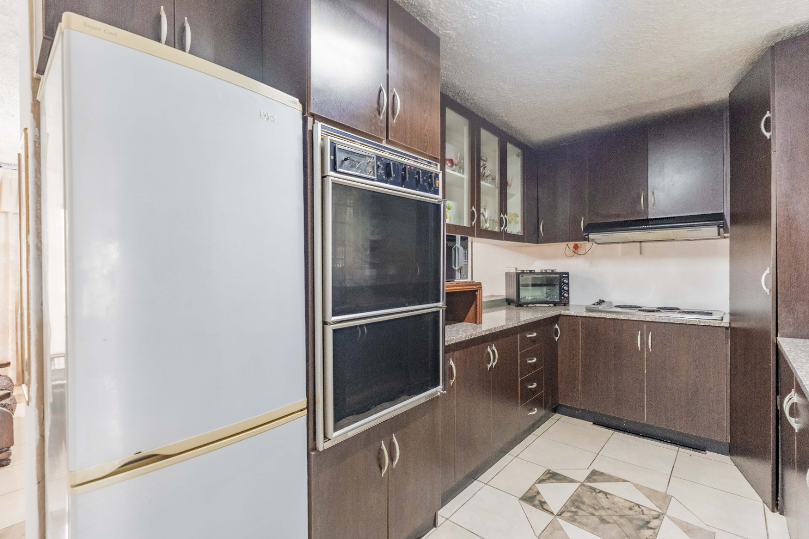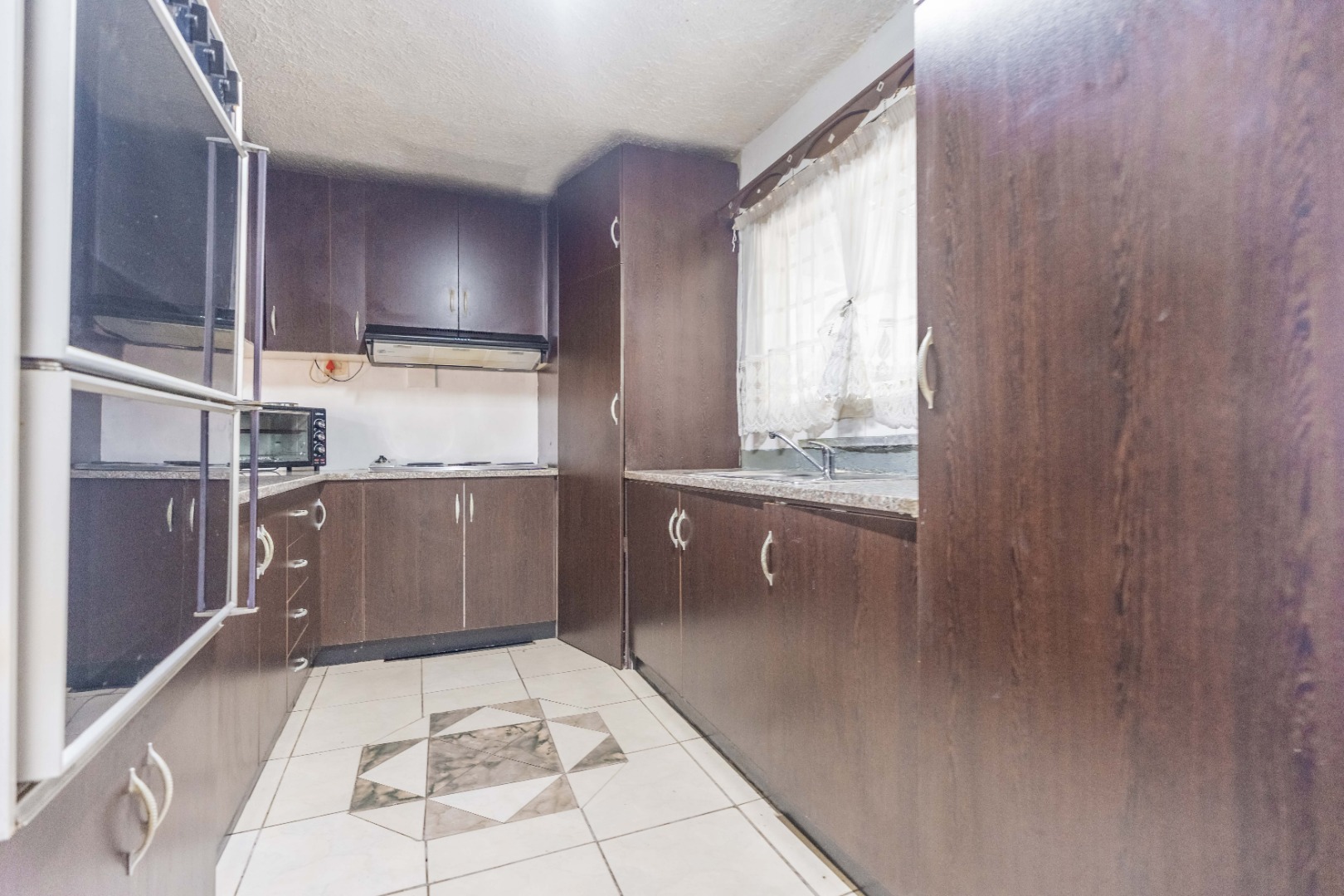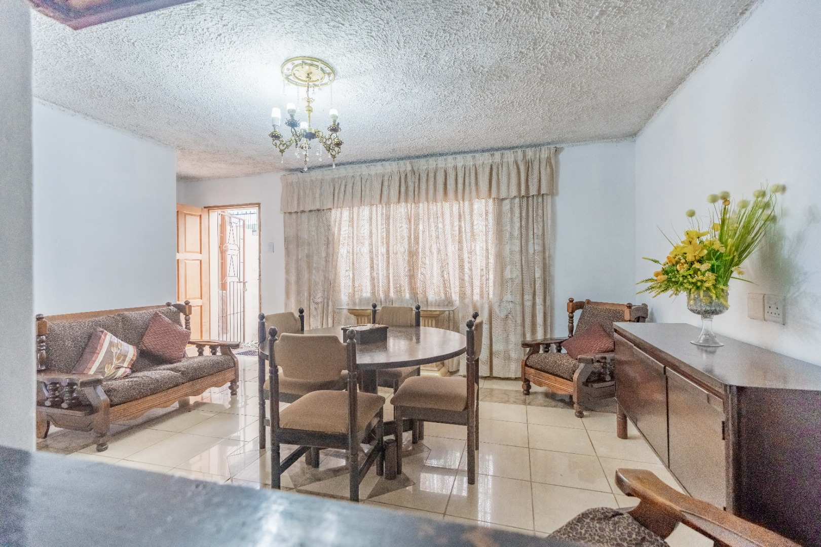 Kitchen flows to an enclosed patio/formal lounge, which opens onto the backyard, offering the perfect setting for braais and family gatherings.