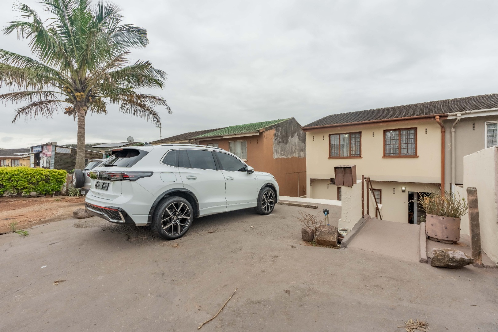 The property features two spacious parking bays and welcomes you into a large lounge area, perfect for relaxing or entertaining. The lounge flows seamlessly into a semi open-plan kitchen, which is fitted with built-in cupboards, a hob, extractor fan, and oven—ideal for everyday cooking and entertaining.
