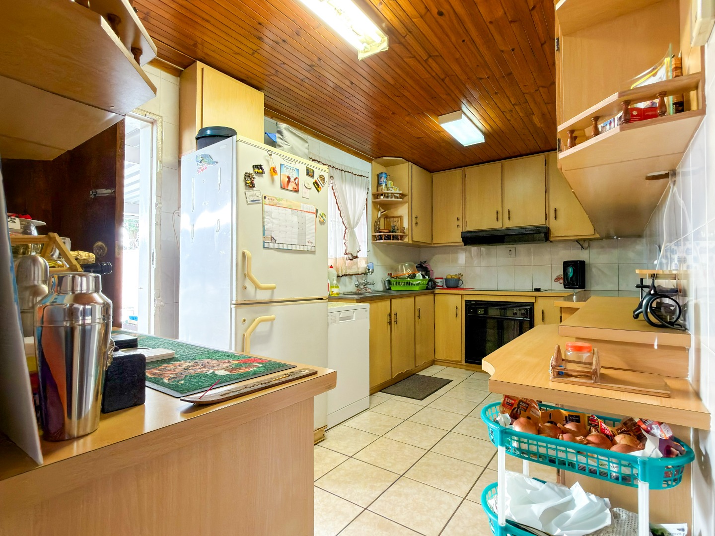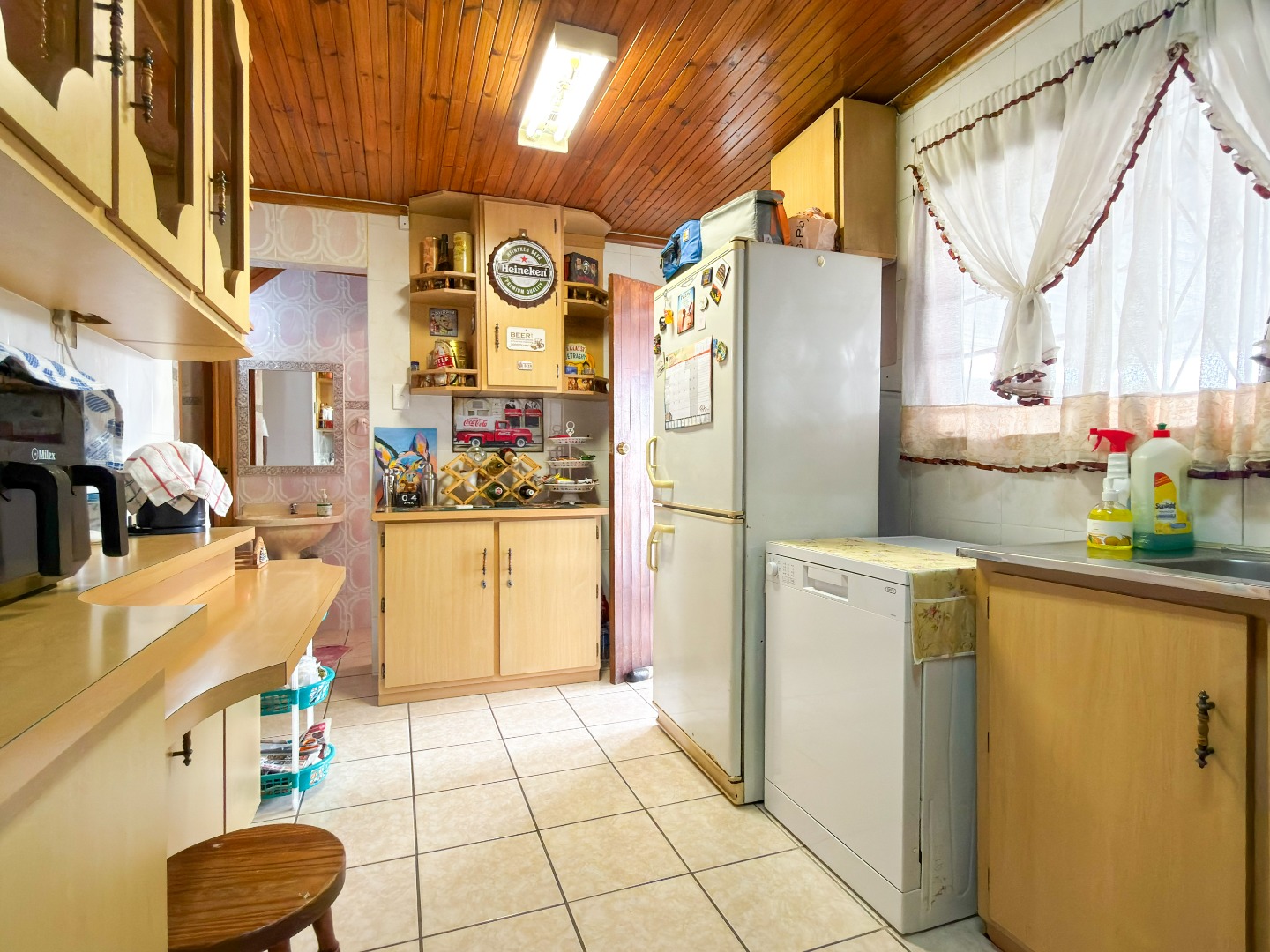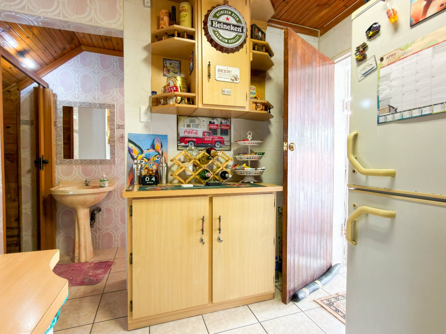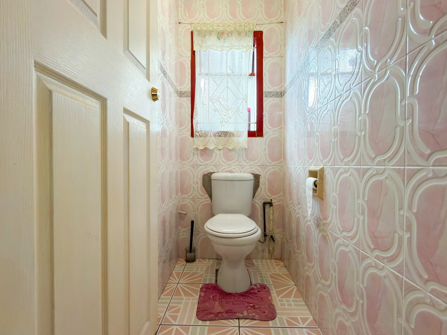 Step inside to an inviting lounge that flows seamlessly into a fully fitted kitchen, complete with built-in cupboards, an extractor fan, oven, and hob. The living area is fitted with air conditioning, ensuring year-round comfort. A conveniently located guest toilet on the ground floor further enhances the home’s practicality.