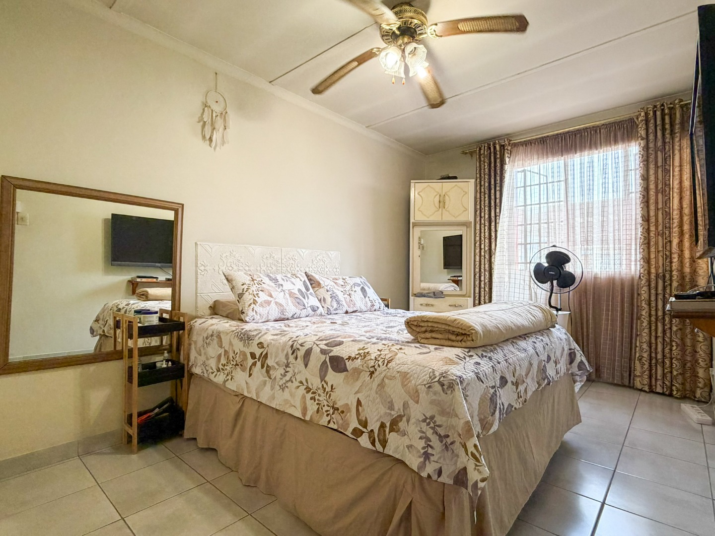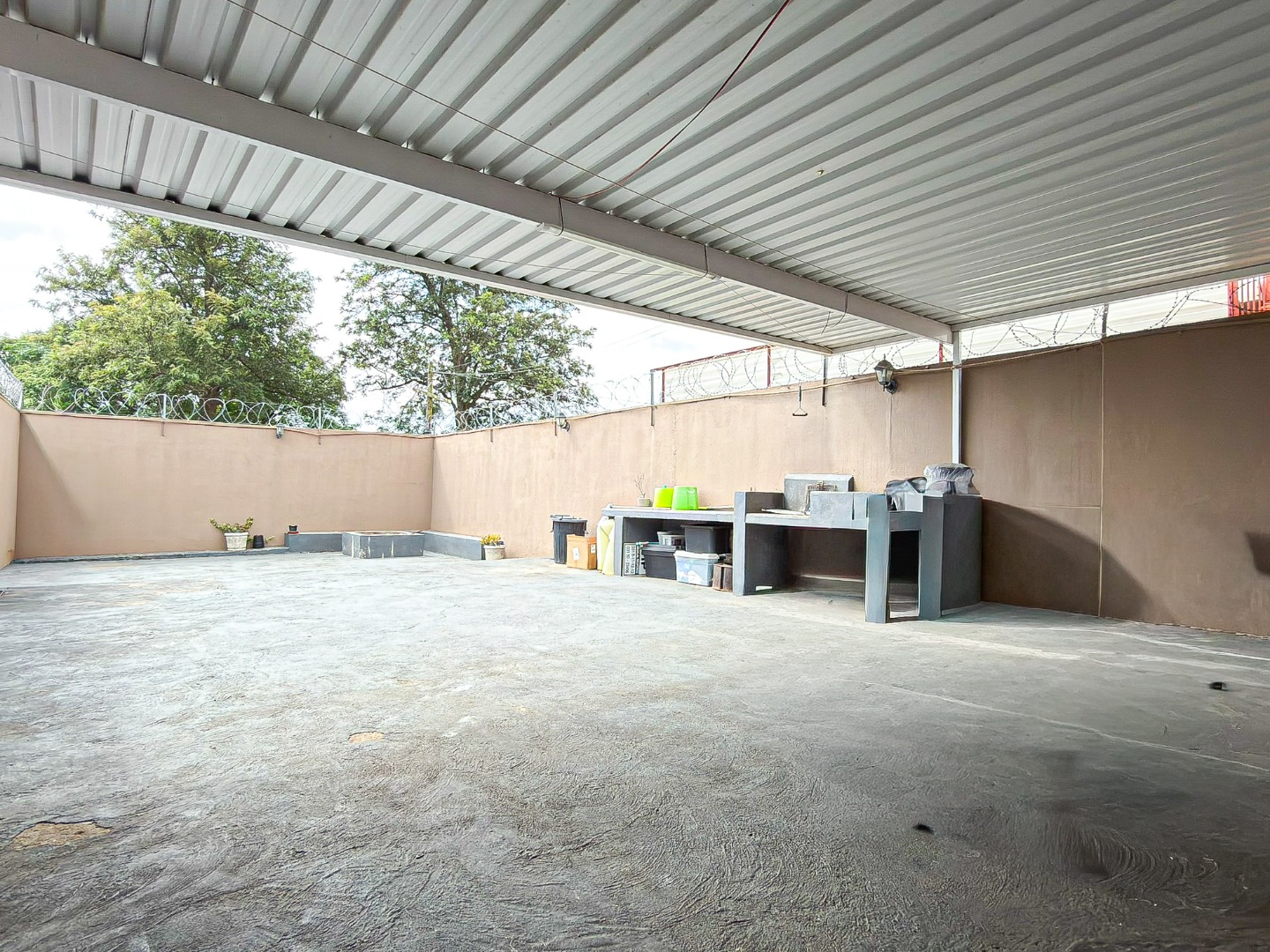 The exterior of the property is equally impressive, designed with both security and entertainment in mind. The home is fully fenced and gated, offering a private and secure environment. Motorised driveway gates provide easy access to parking for two vehicles. The spacious backyard is a standout feature, boasting a large, private area with high boundary walls—ideal for entertaining and family activities. The fully cemented yard ensures low maintenance while maintaining a neat and tidy appearance.
