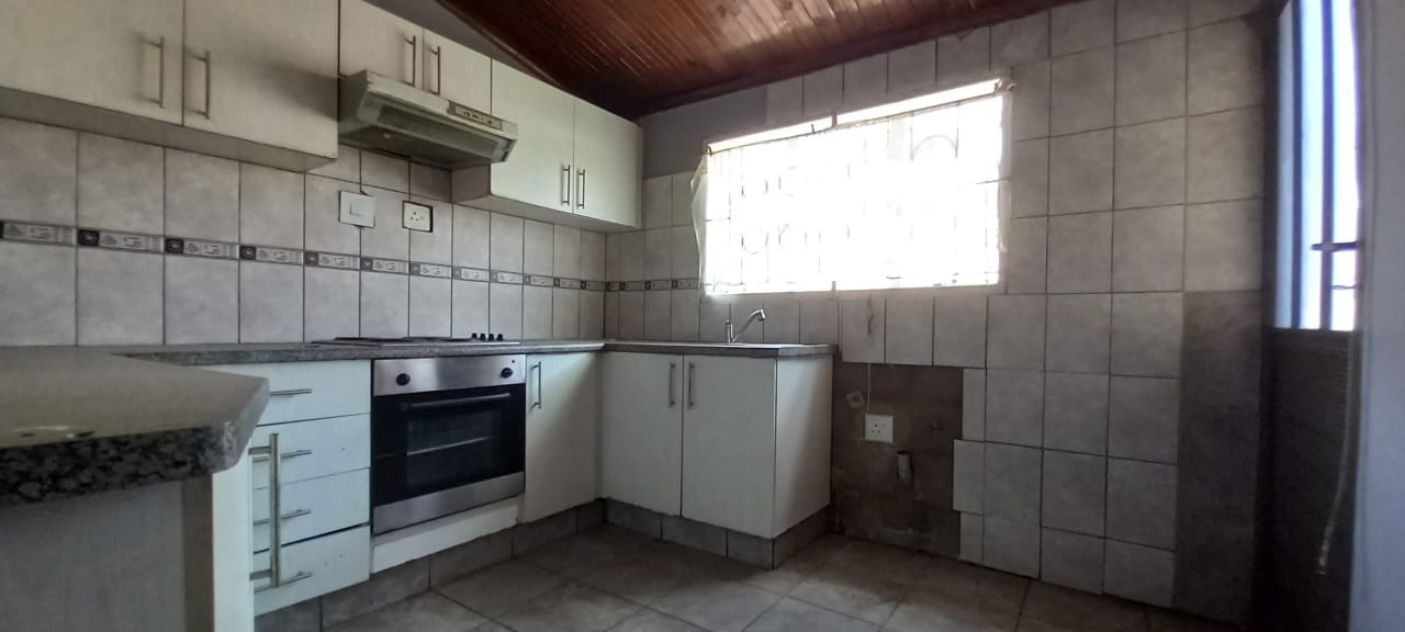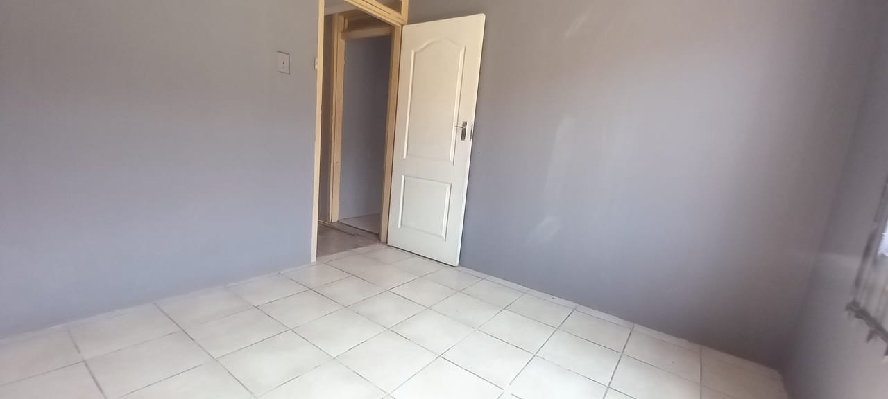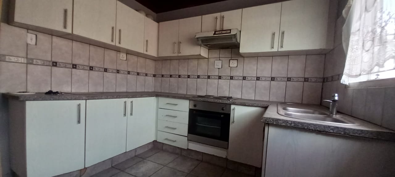 Externally, the property provides practical outdoor living with a paved driveway offering two dedicated parking spaces. A private front yard includes a covered outdoor seating area, perfect for enjoying the South African climate. While the garden areas present an opportunity for personalized landscaping, the existing paved sections contribute to a low-maintenance exterior.