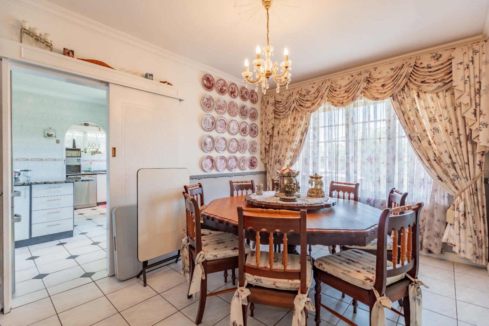 Step inside and be greeted by a large, welcoming lounge complete with a cozy fireplace, perfect for those cooler evenings. The dining room flows effortlessly into a well-appointed kitchen featuring a double electric oven, glass hob, breakfast nook, and a separate scullery — designed for both practicality and style.