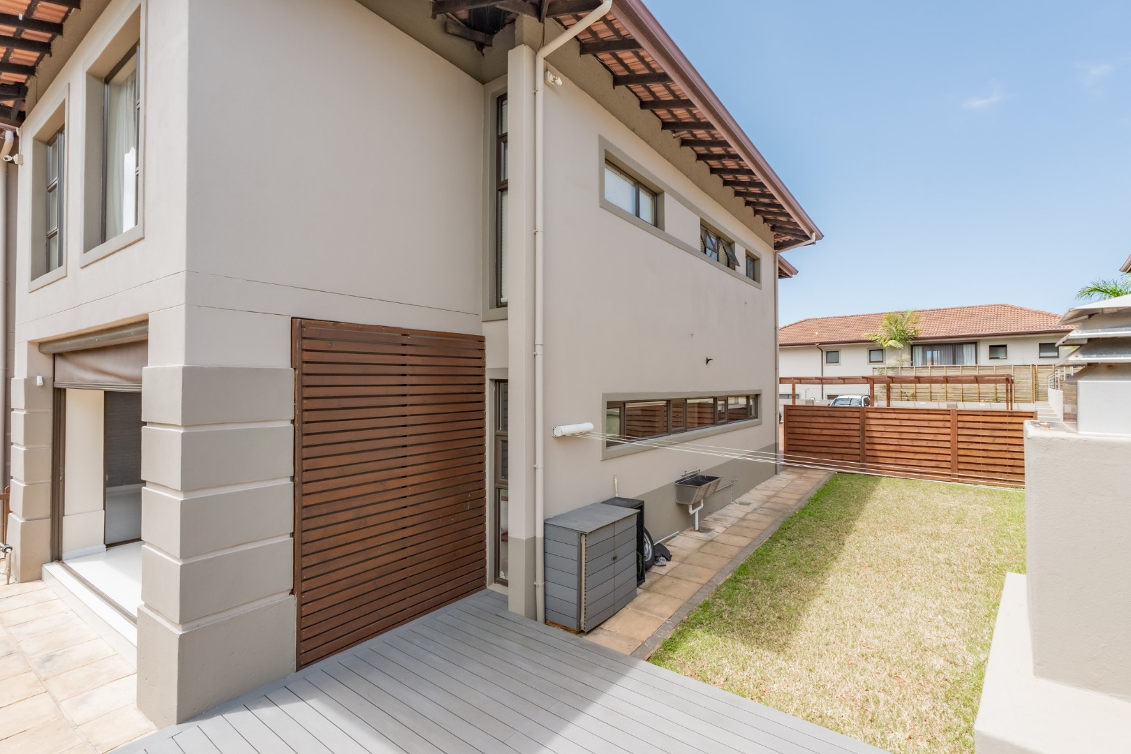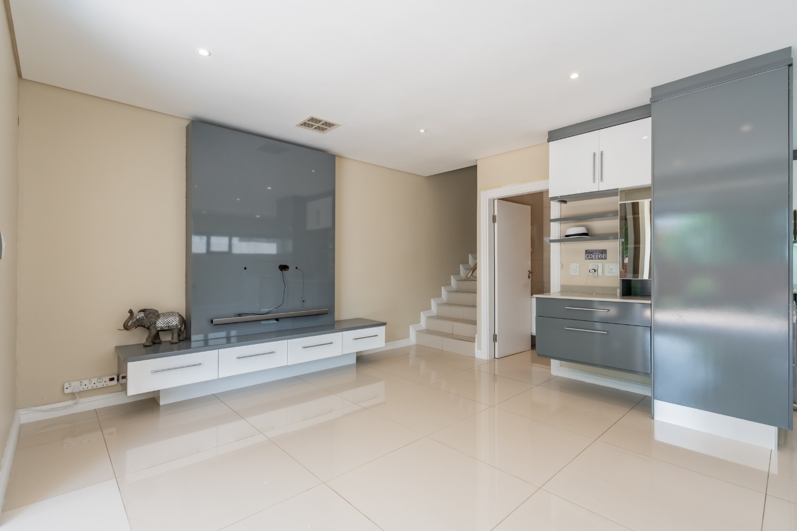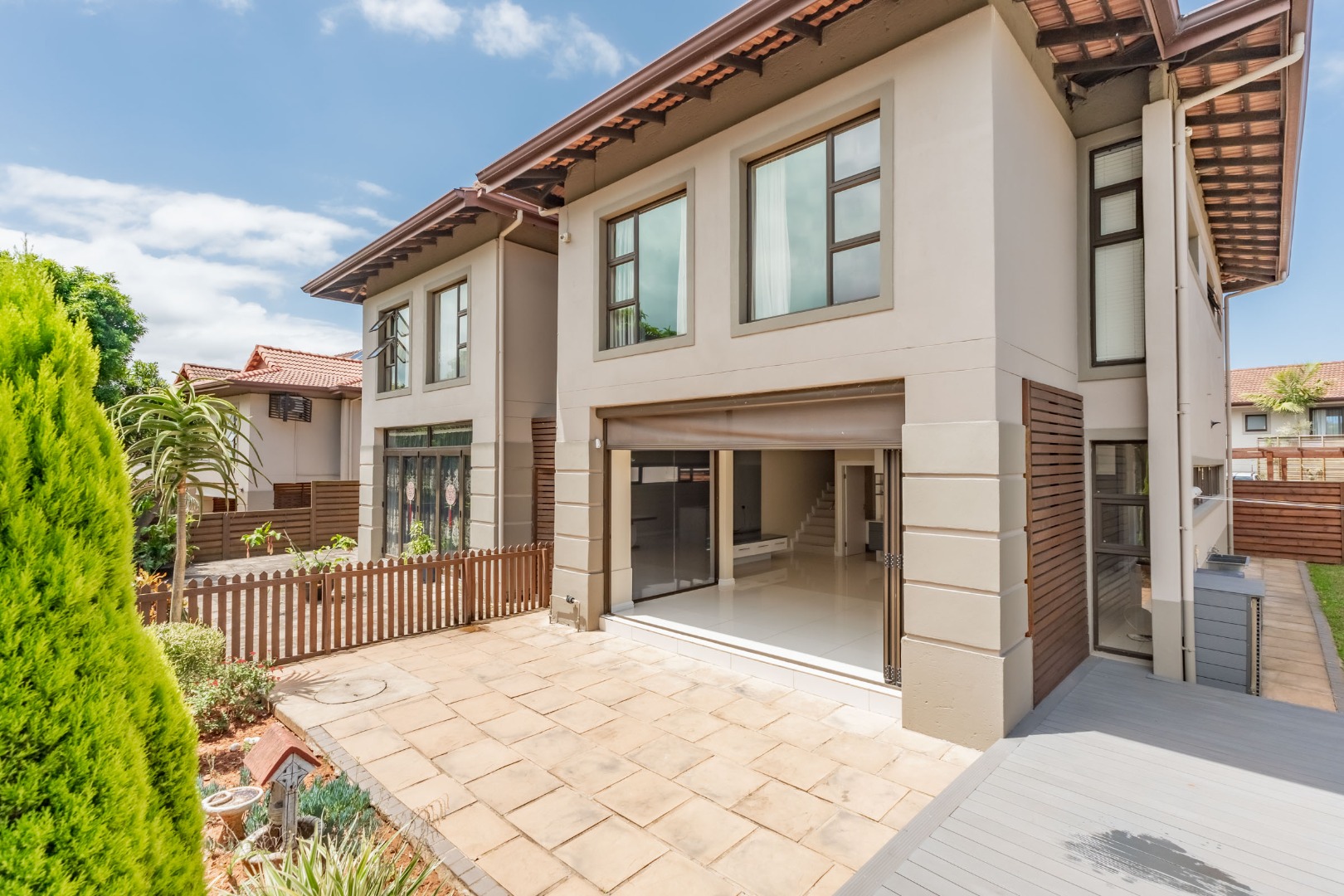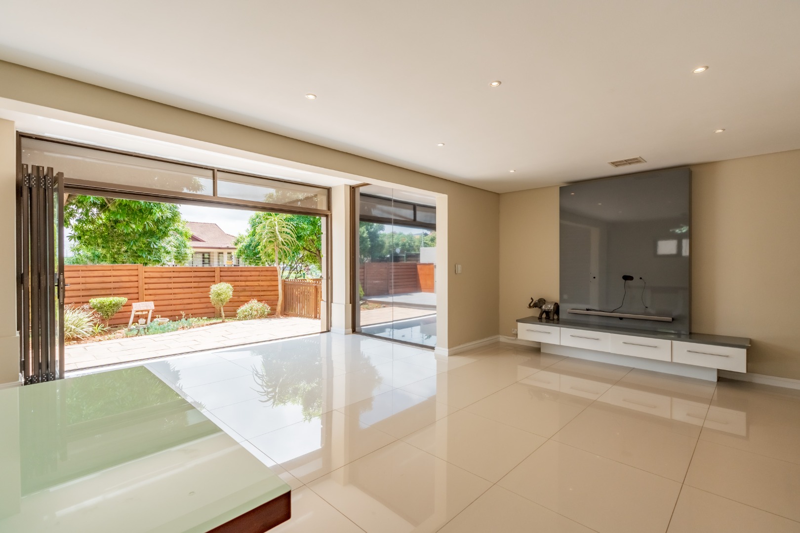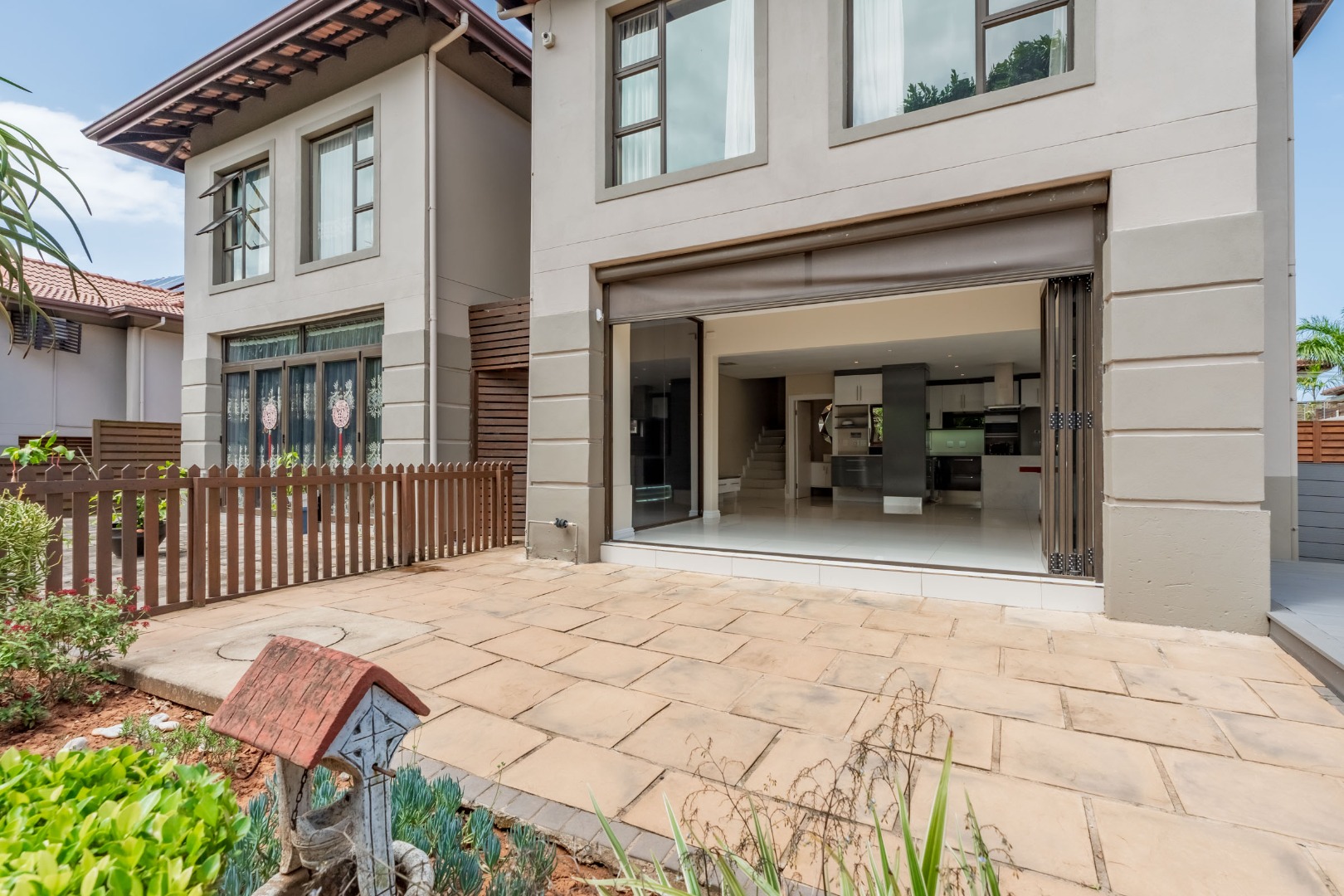 The downstairs floor plan is a seamless integration between the kitchen, lounge and dining room extending into an enclosed patio with stack doors opening up onto a large private garden with built in braai. The perfect space to entertain friends and family.
