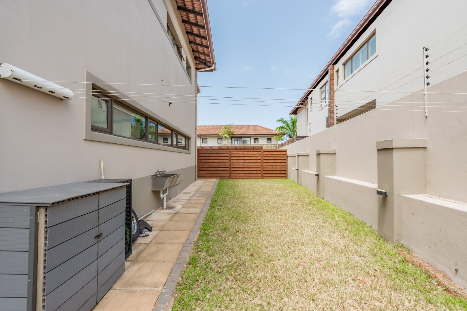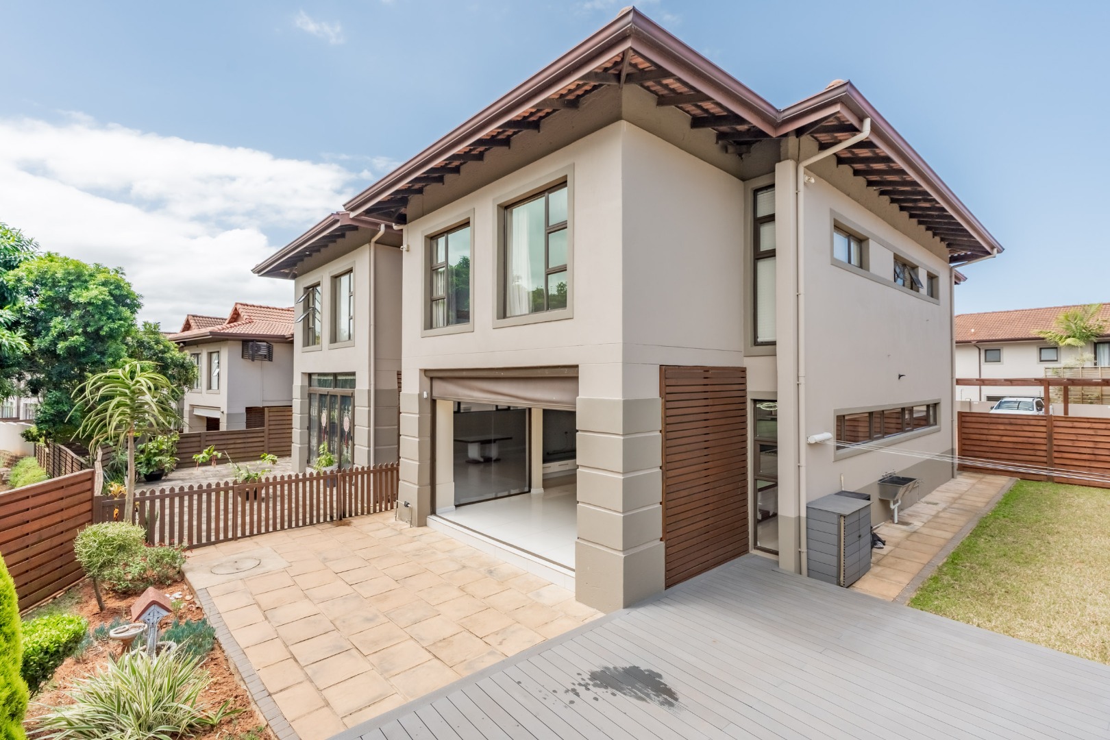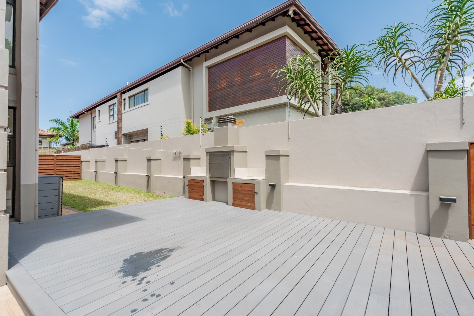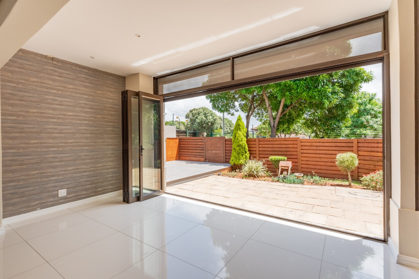 The downstairs floor plan is a seamless integration between the kitchen, lounge and dining room extending into an enclosed patio with stack doors opening up onto a large private garden with built in braai. The perfect space to entertain friends and family.