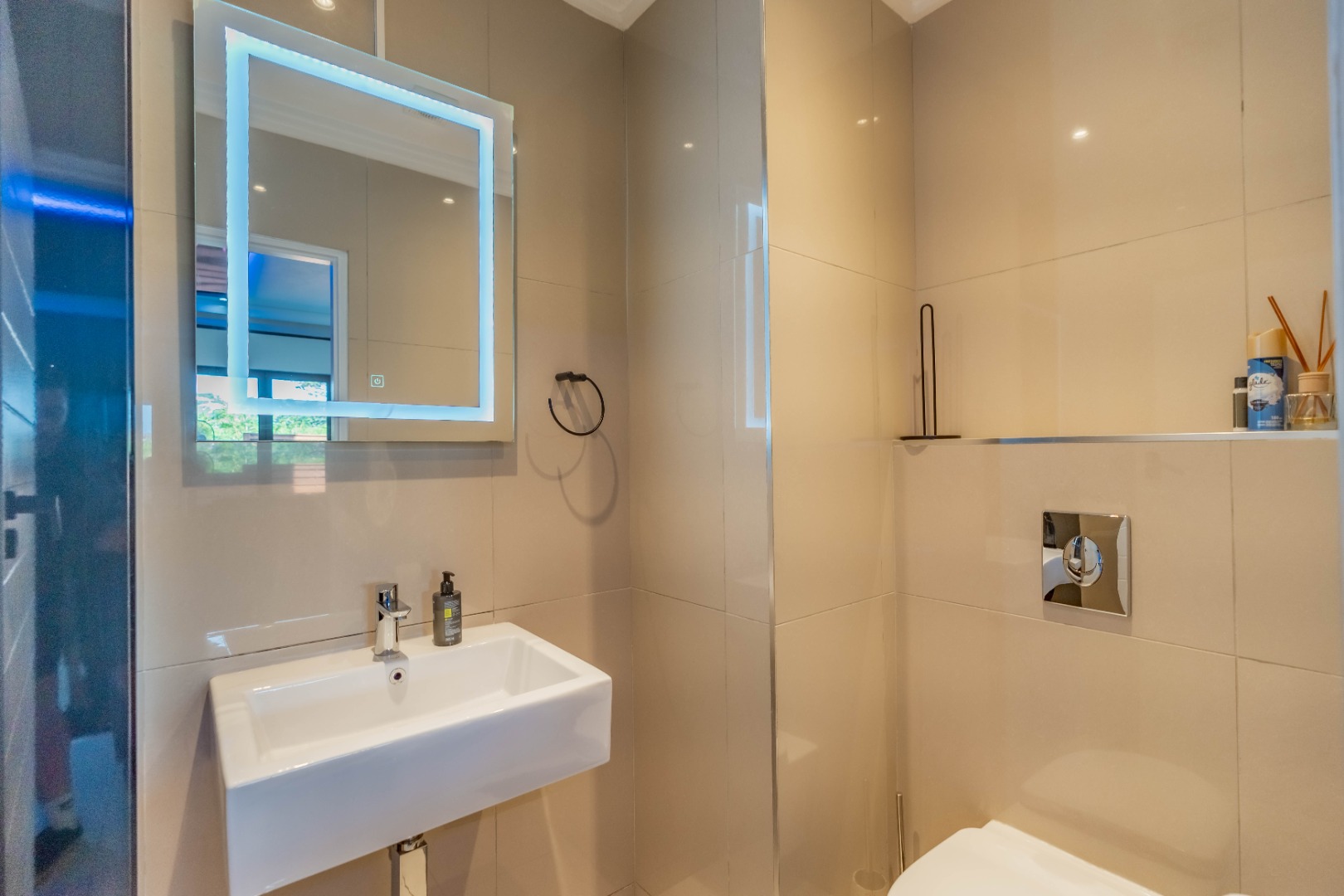 Upstairs, you’ll find a cosy TV lounge, three well-sized bedrooms with sleek built-in cupboards, and two bathrooms. The main bedroom includes its own en-suite for added privacy.