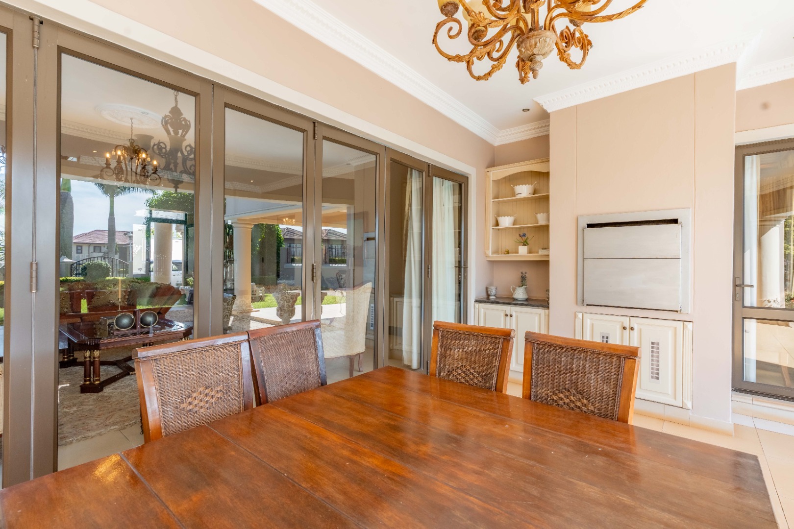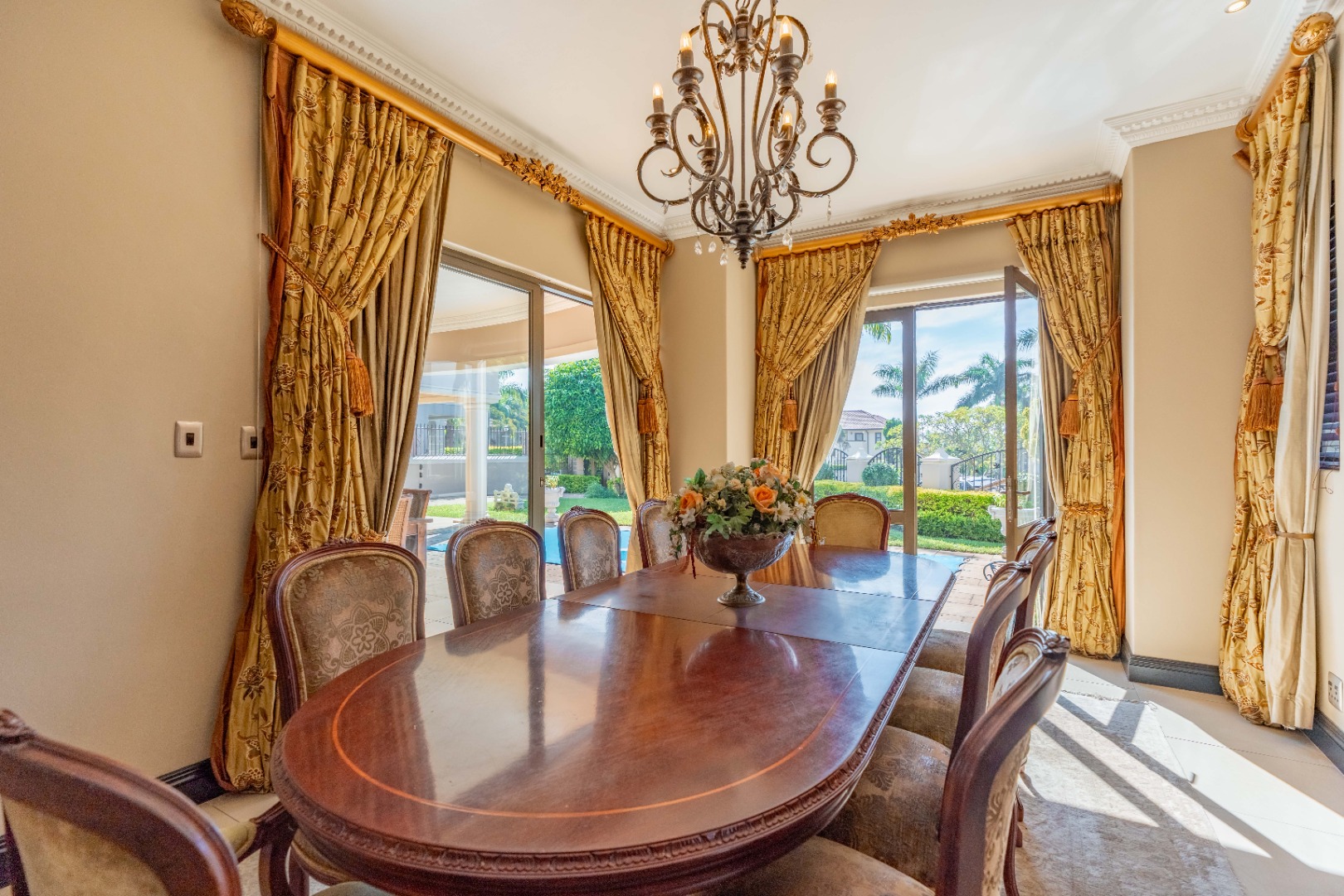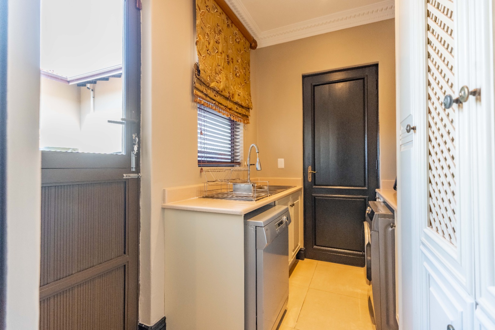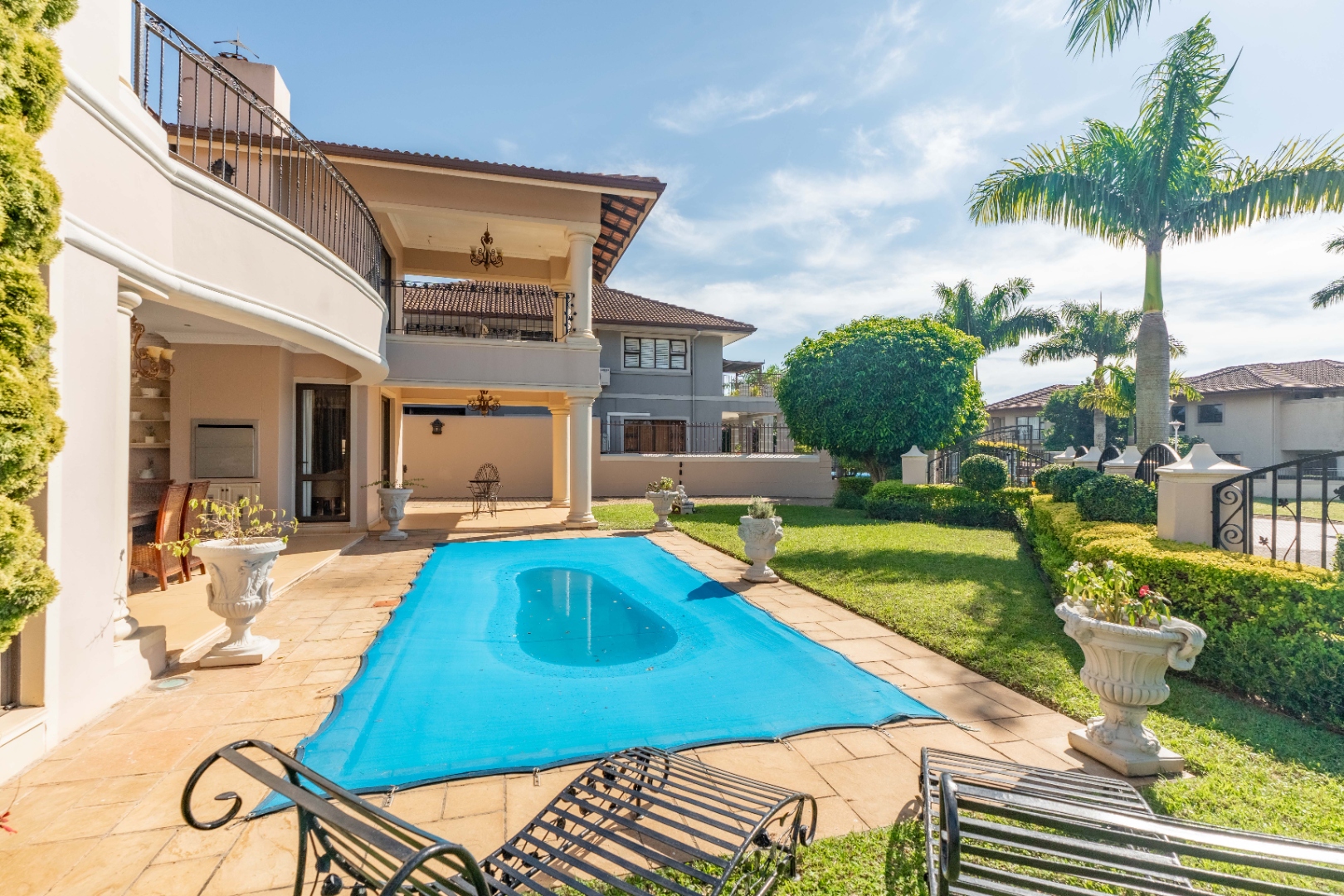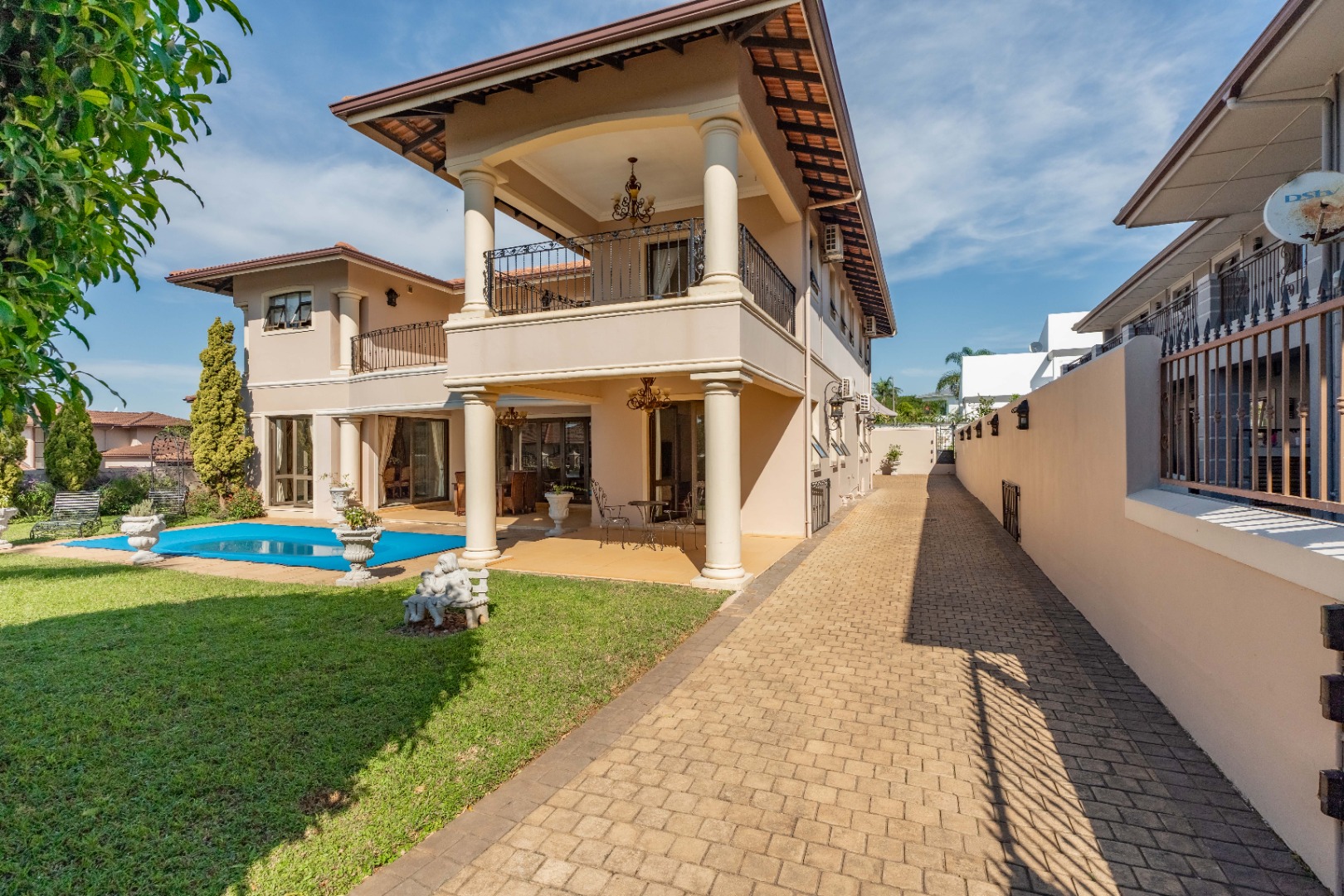 A double garage accommodates two vehicles, with additional space for up to six cars, ensuring convenience for residents and guests alike. Situated within a secure estate, this home is a rare fusion of Tuscan elegance and modern coastal living, offering a unique opportunity to own a piece of timeless beauty in one of Durban's most sought after locales.